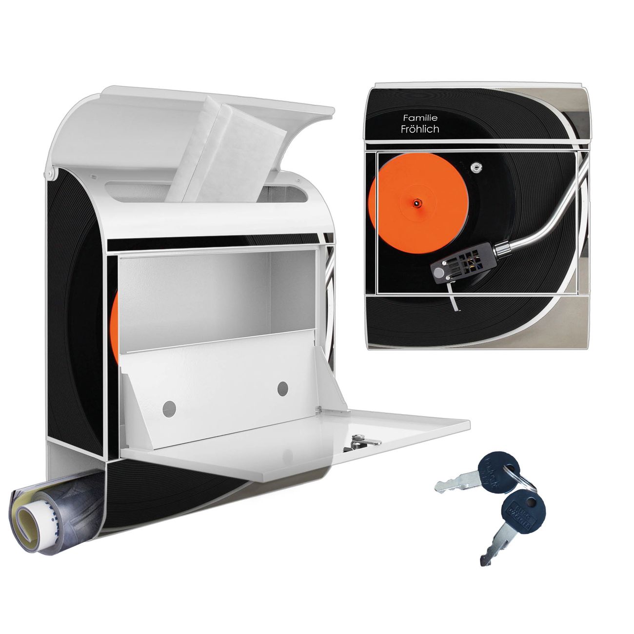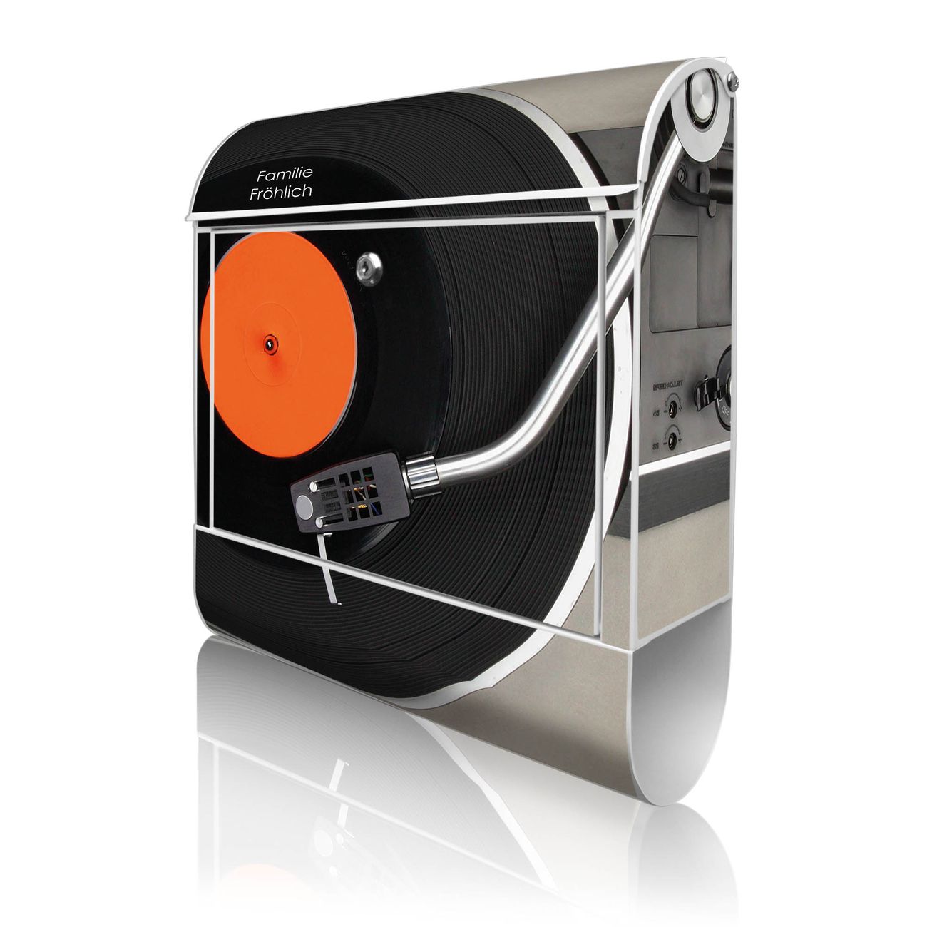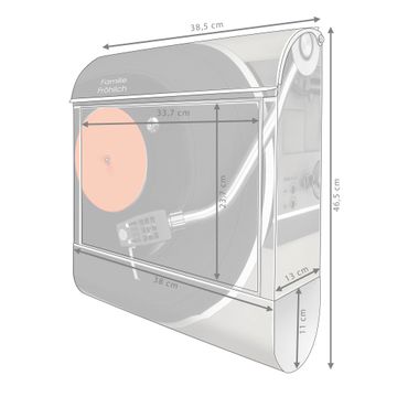 Großer Stahl Briefkasten Motiv Plattenspieler
