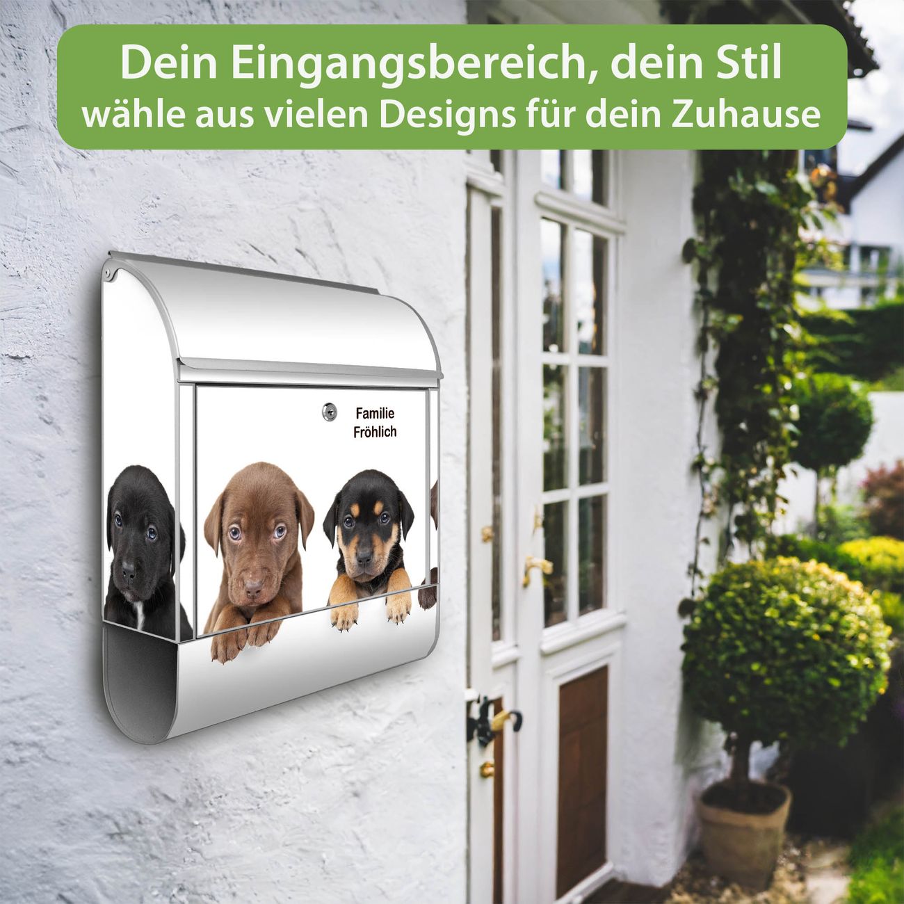 Großer Stahl Briefkasten Motiv Puppies