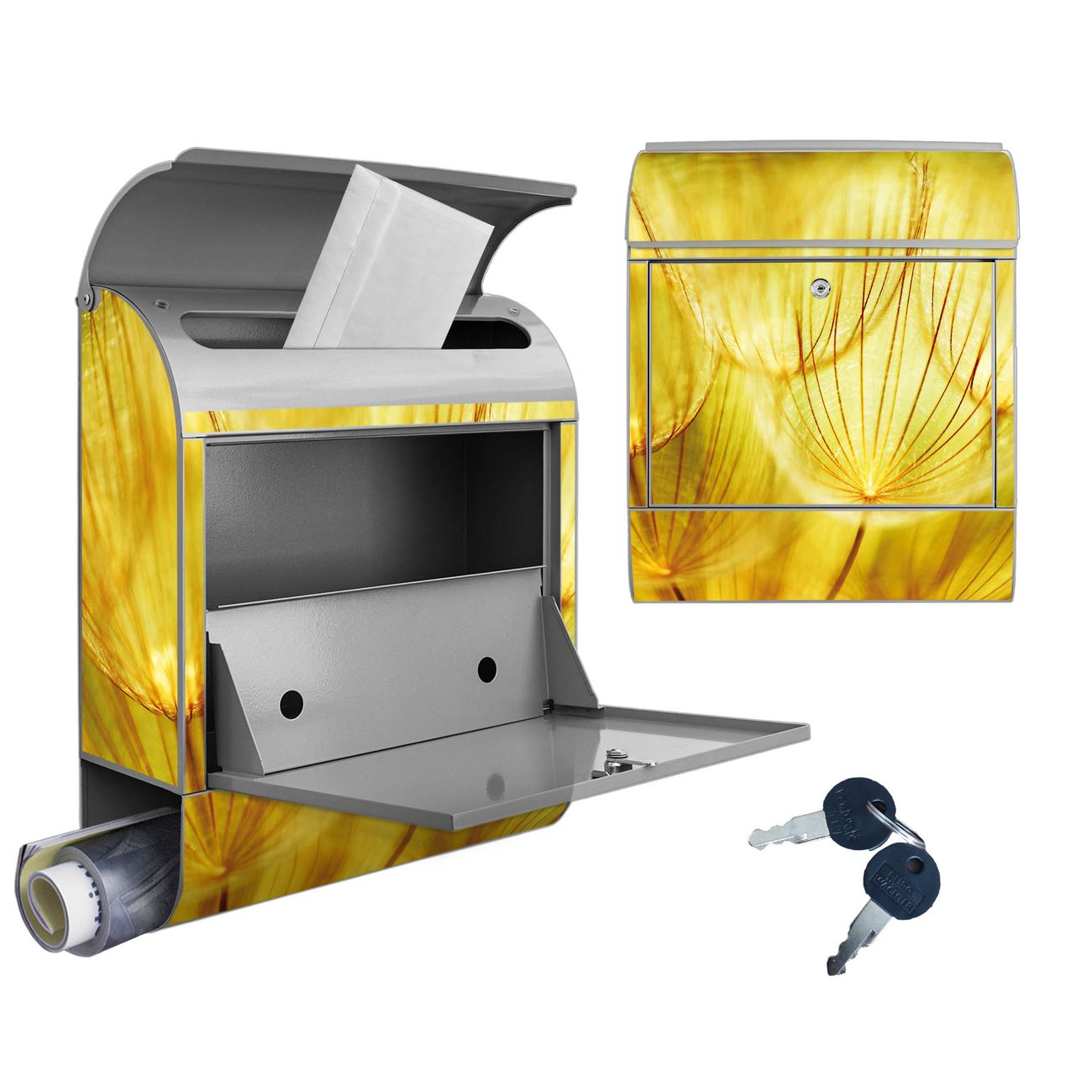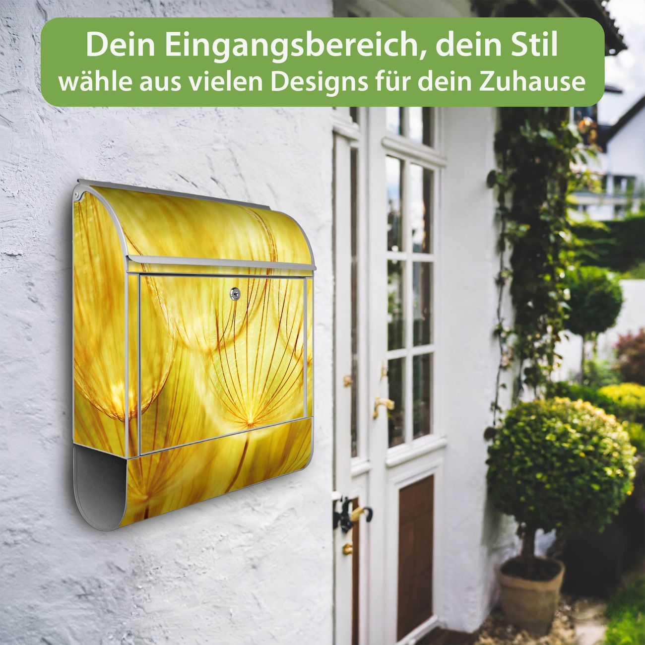 Großer Stahl Briefkasten Motiv Pusteblumen Gold