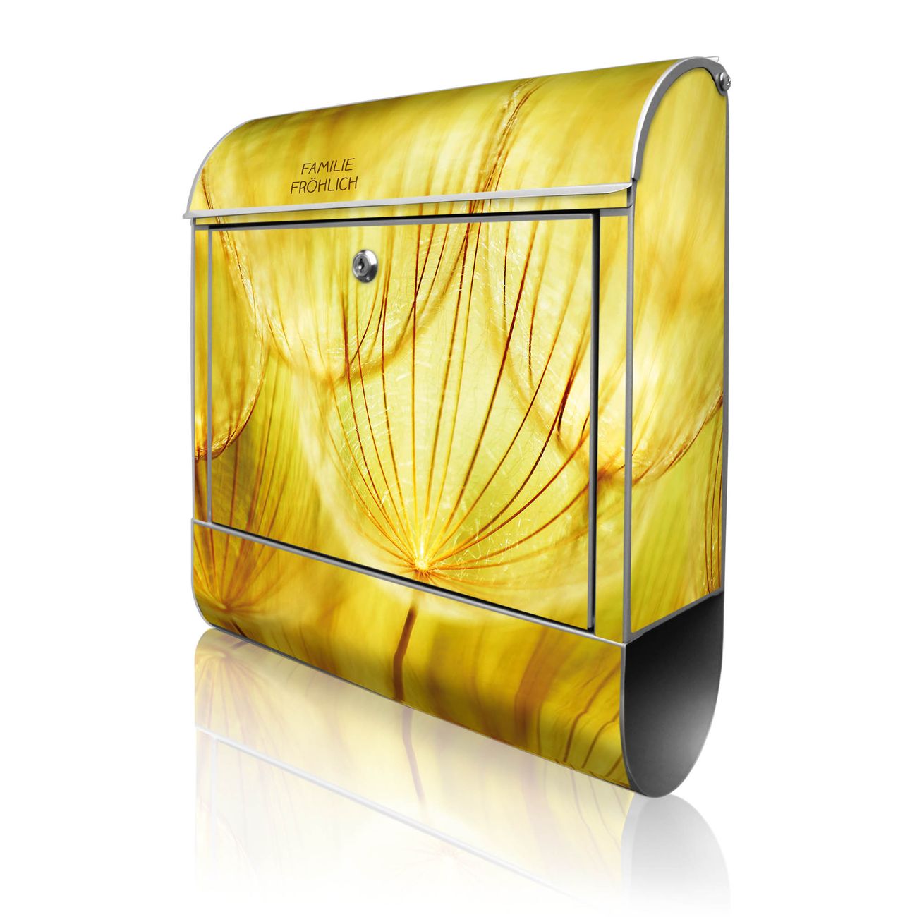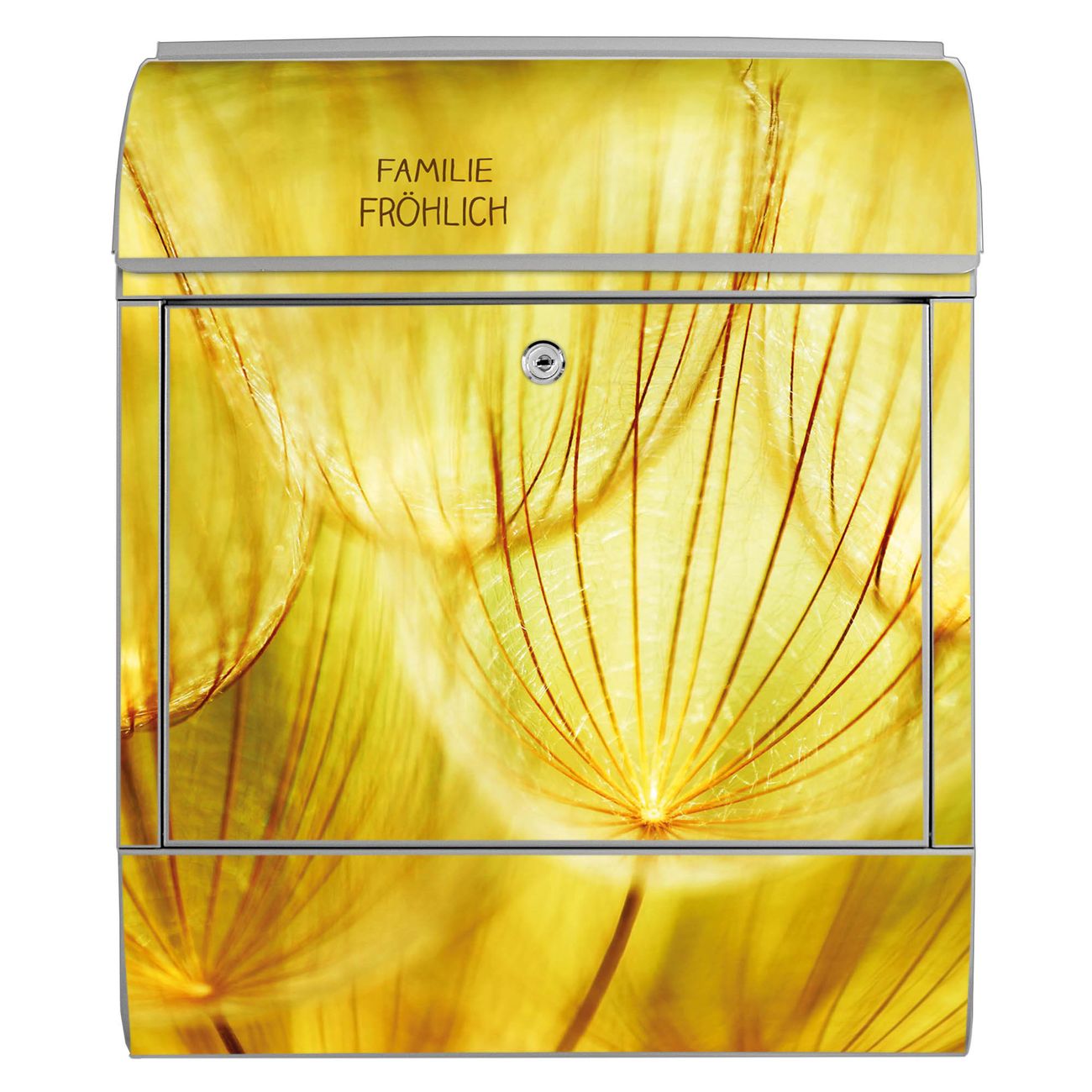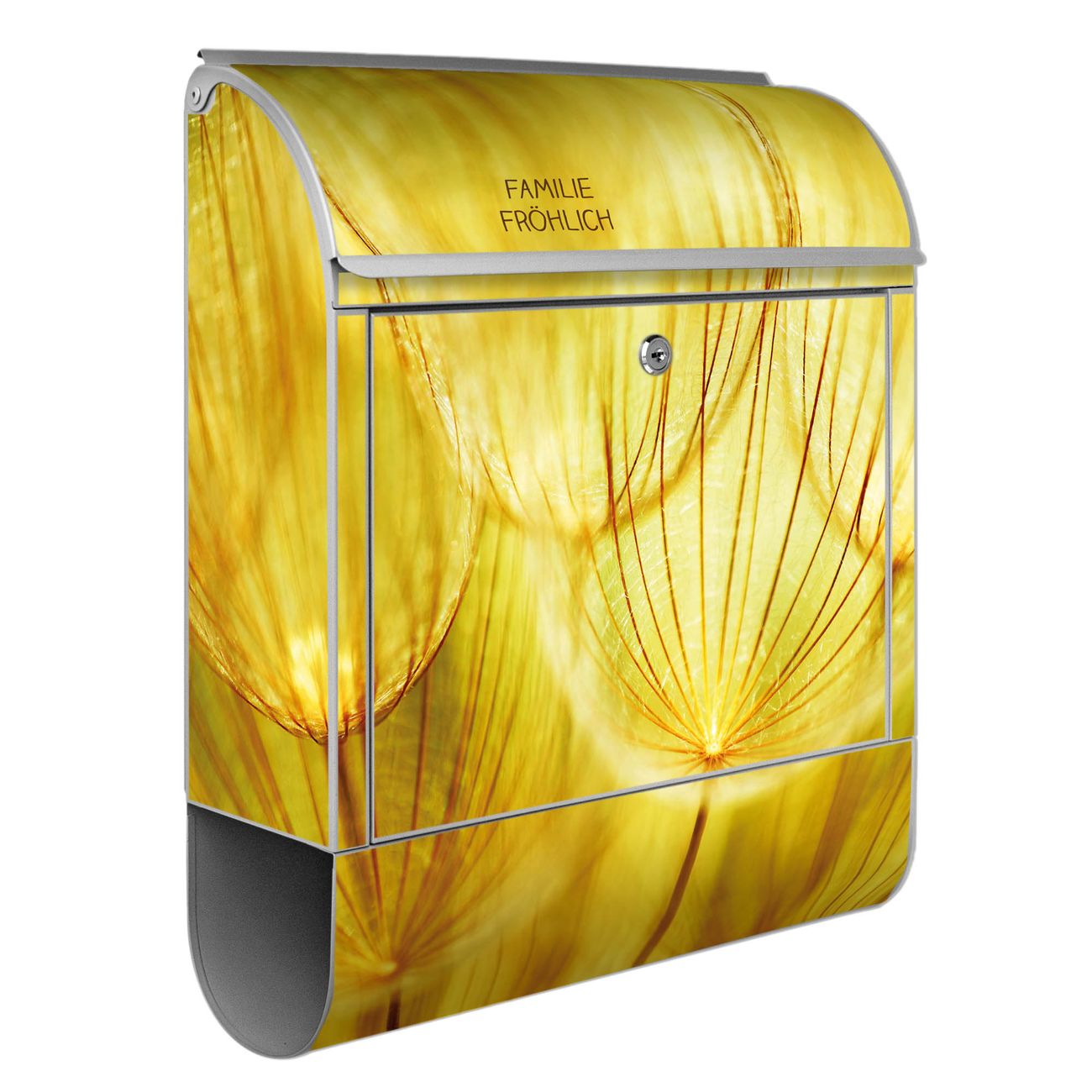 Großer Stahl Briefkasten Motiv Pusteblumen Gold