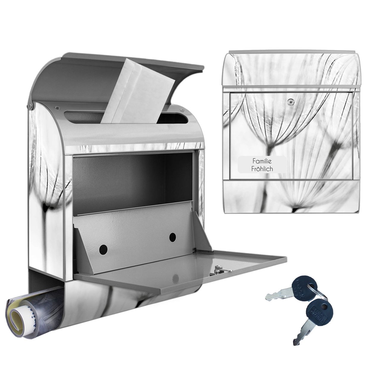 Großer Stahl Briefkasten Motiv Pusteblumen SW