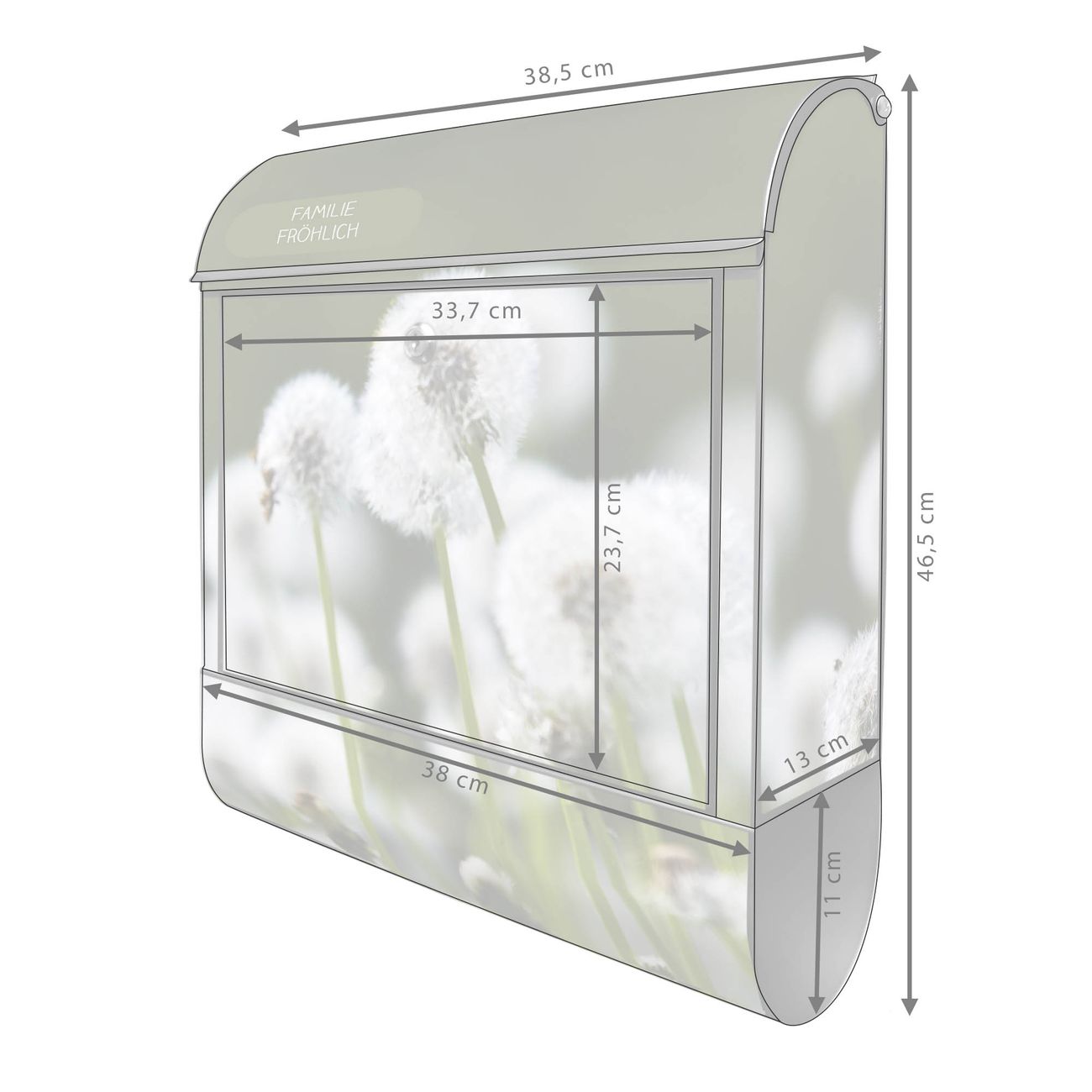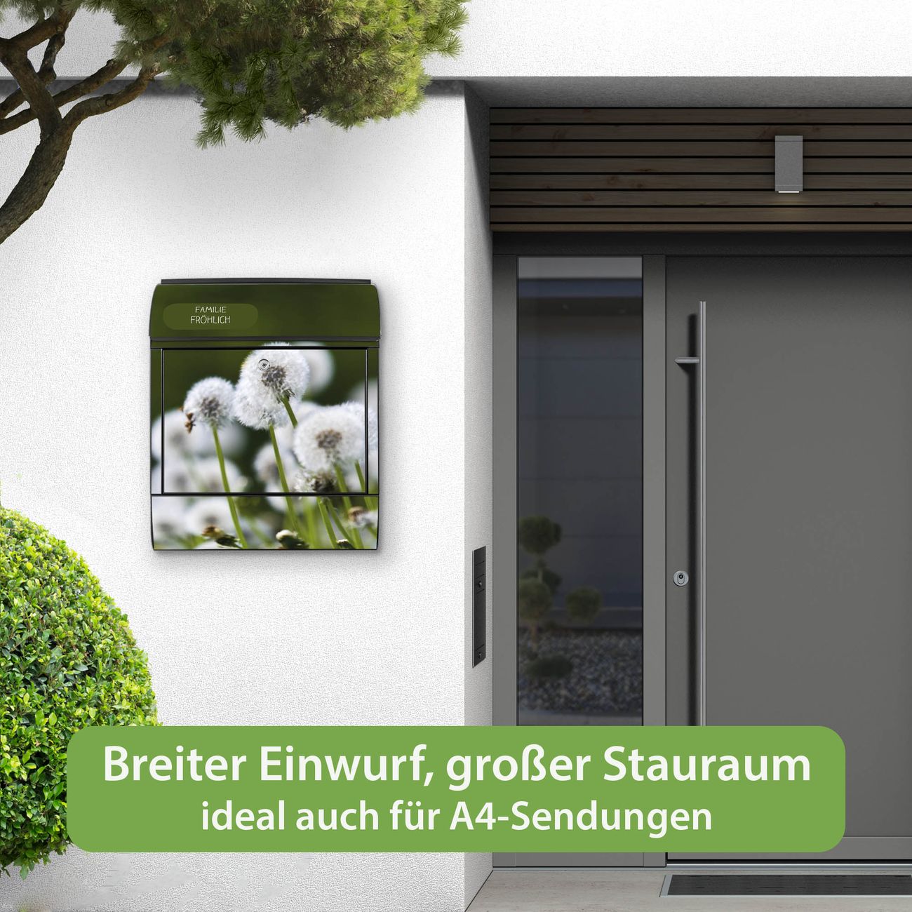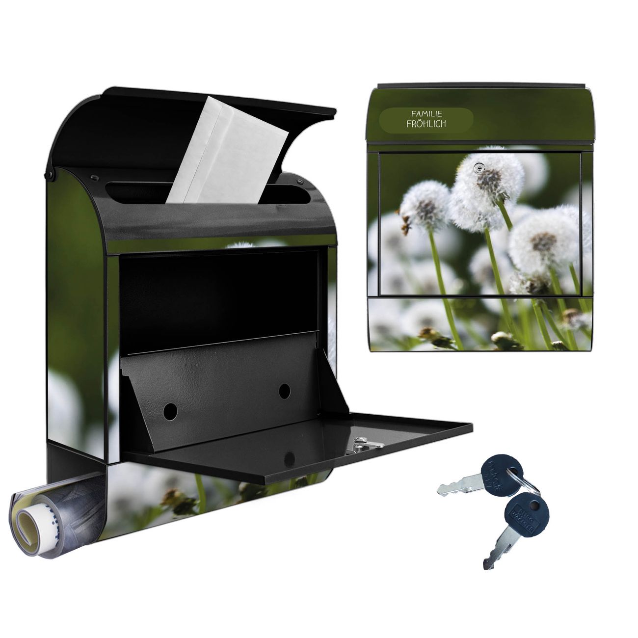 Großer Stahl Briefkasten Motiv Pusteblumenwiese