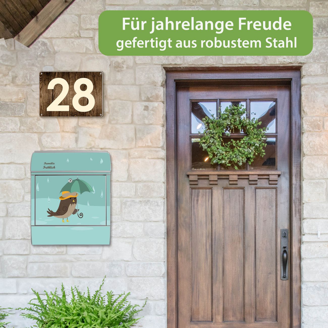 Großer Stahl Briefkasten Motiv Rainbird