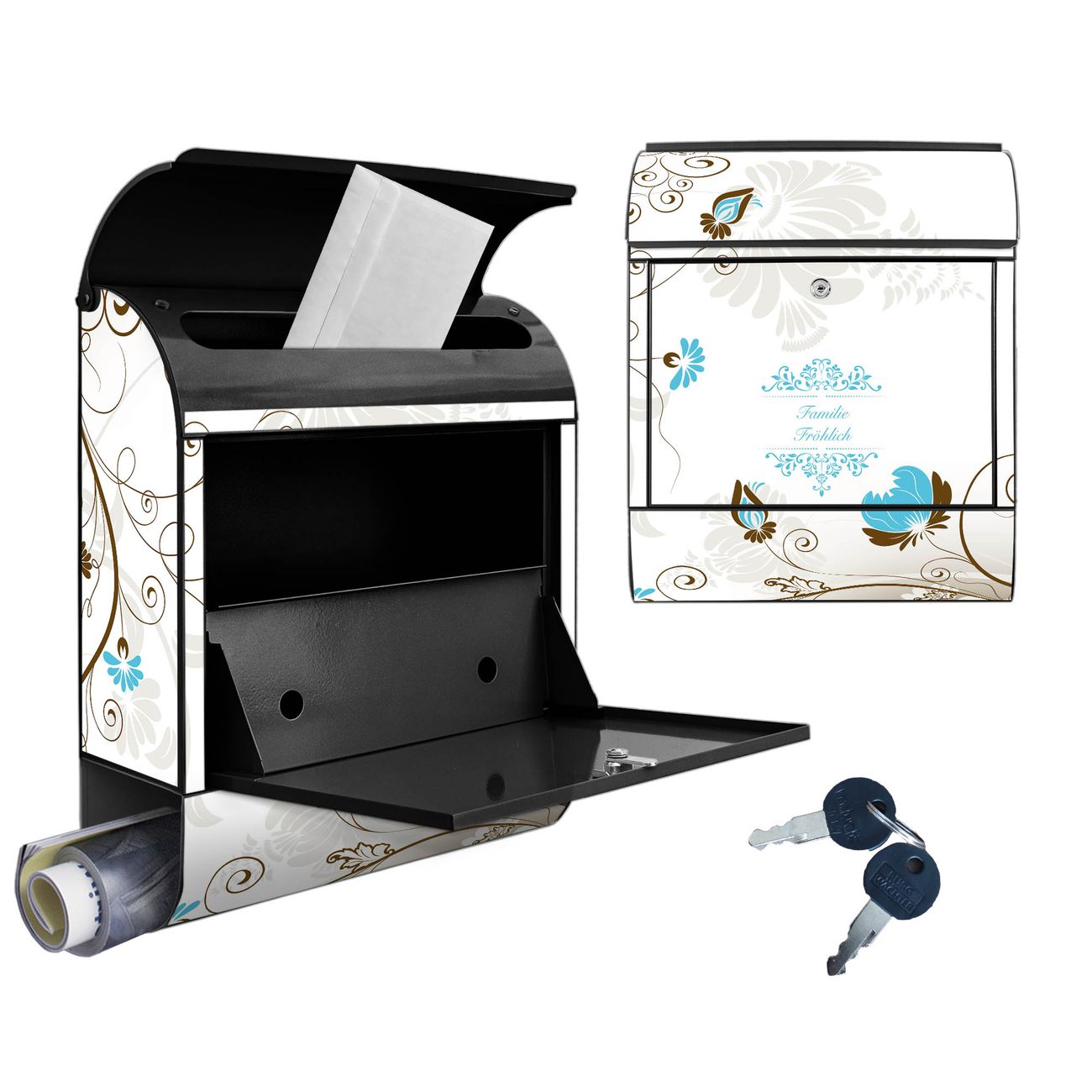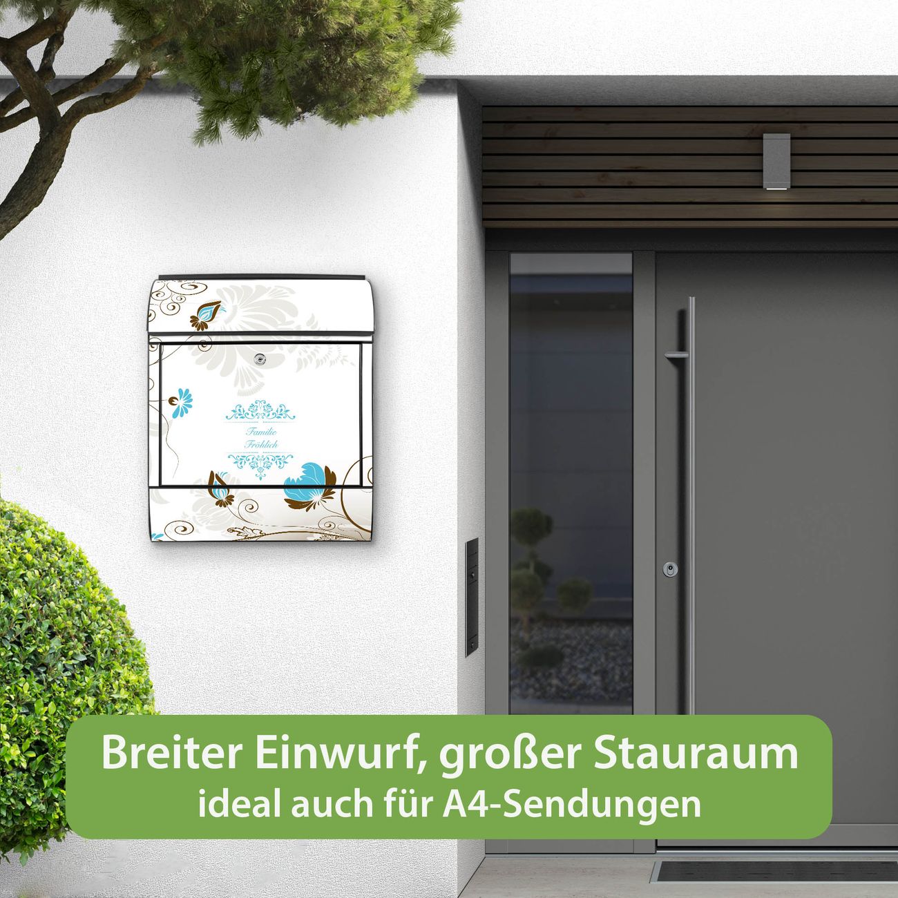 Großer Stahl Briefkasten Motiv Rankenrahmen