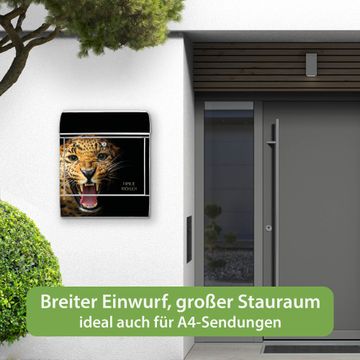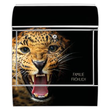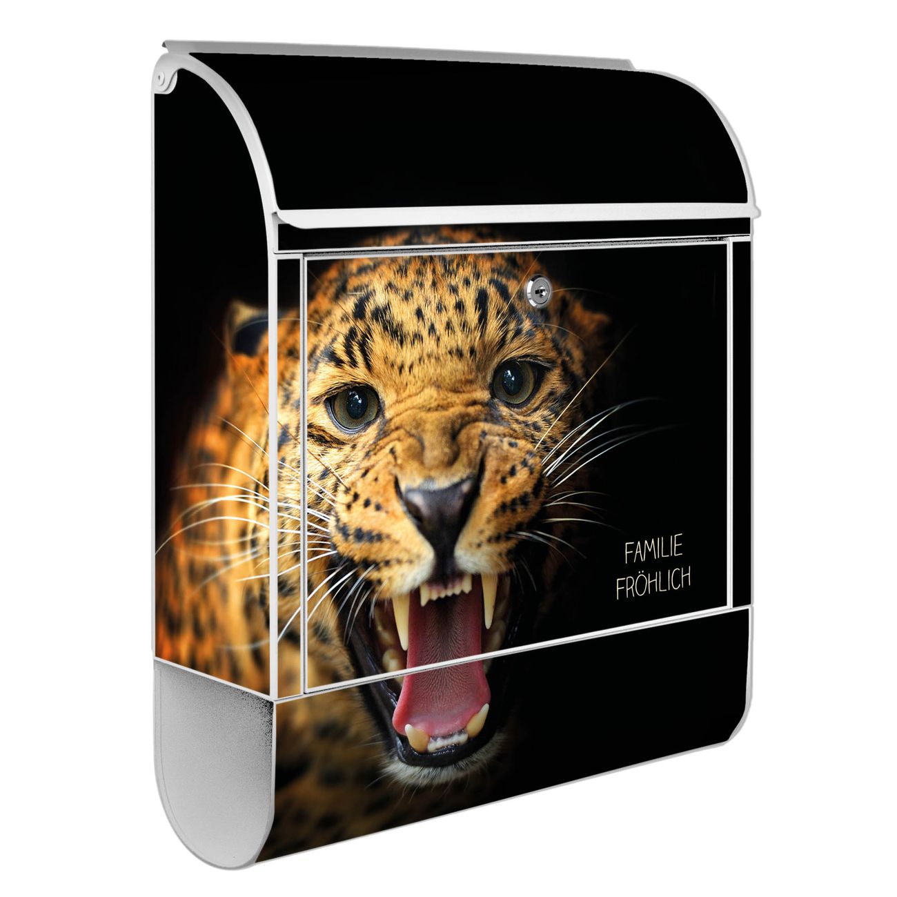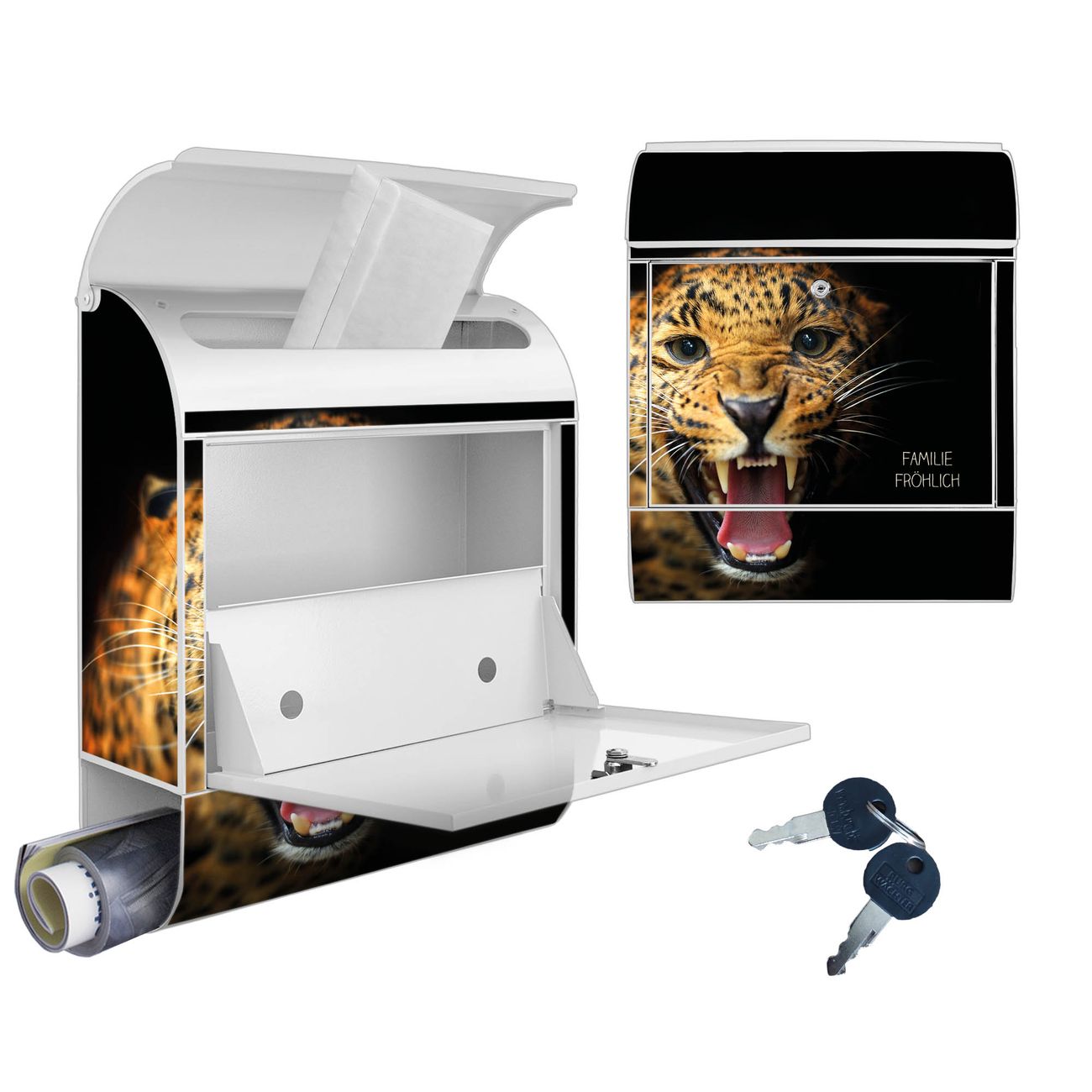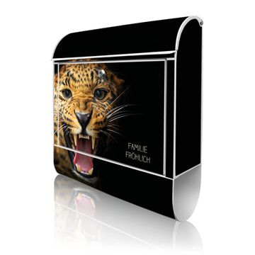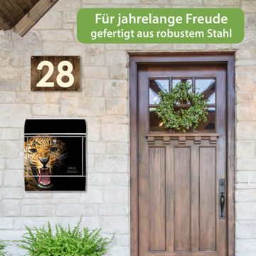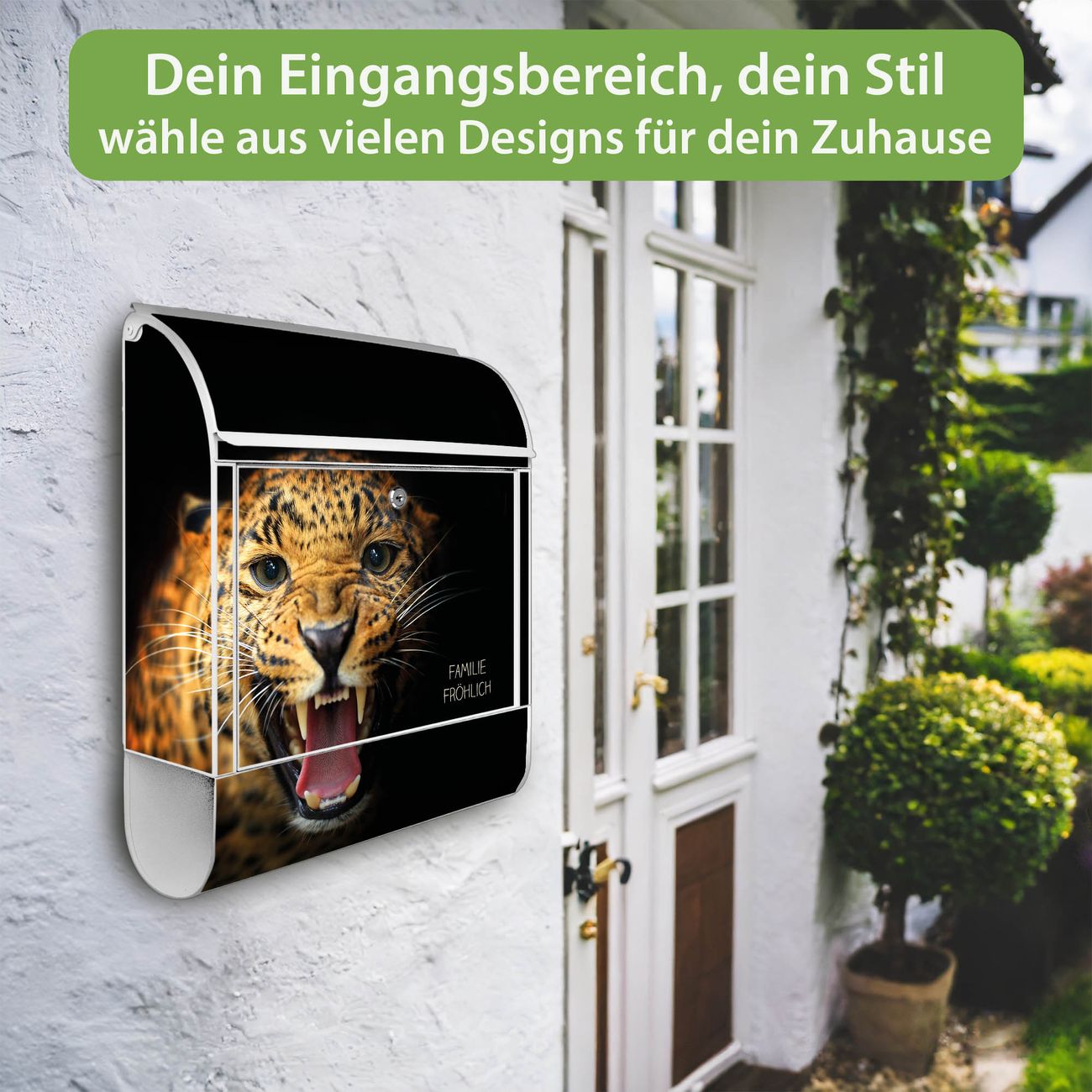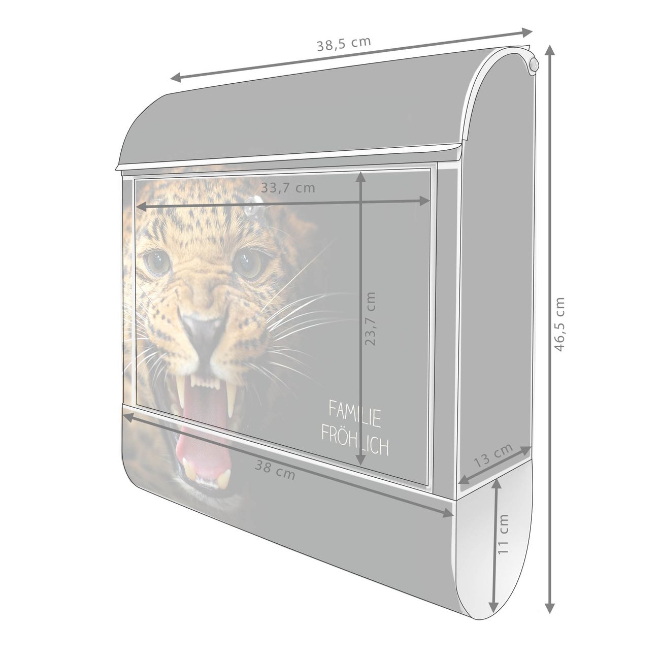 DESIGN: Der Postkasten mit Motiv Motiv Raubkatze hat ein sehr ansprechendes und ausgefallenes Design, damit entlocken Sie Ihren Nachbarn und dem Postboten ein Lächeln. Heben Sie Sich von der tristen grauen Masse ab, ohne auf Funktionalität zu verzichten. DETAILS: Der Postkasten besteht aus pulverbeschichtetem Stahl. Er ist 38x46x12,5cm groß. Das Motiv besteht aus einer wetter- und UV-resistenten Folie, die mit einem Schutzlaminat überzogen ist, sodass der Briefkasten zusätzlich vor Kratzern geschützt ist. Der Briefkasten wird mit Montagematerial, zusätzlich zwei Schlüssel sowie einer Bohrschablone geliefert. NUTZEN: Sie können diesen Briefkasten sowohl als Wandbriefkasten montieren oder einen passenden Ständer kaufen und als Standbriefkasten einbetonieren. Die Größe bietet genügend Platz für Sendungen aller Art, der Einwurf fasst auch größere A4 Sendungen. BANJADO: Ihr Briefkasten wird in Sachsen in einer kleinen Manufaktur von Hand veredelt. Die Motivfolie ist lösungsmittelfrei und schutzlaminiert für einen langen Halt. Wir legen großen Wert auf die Verbindung von Funktionalität und Design. Sie erhalten Handarbeit aus Sachsen.