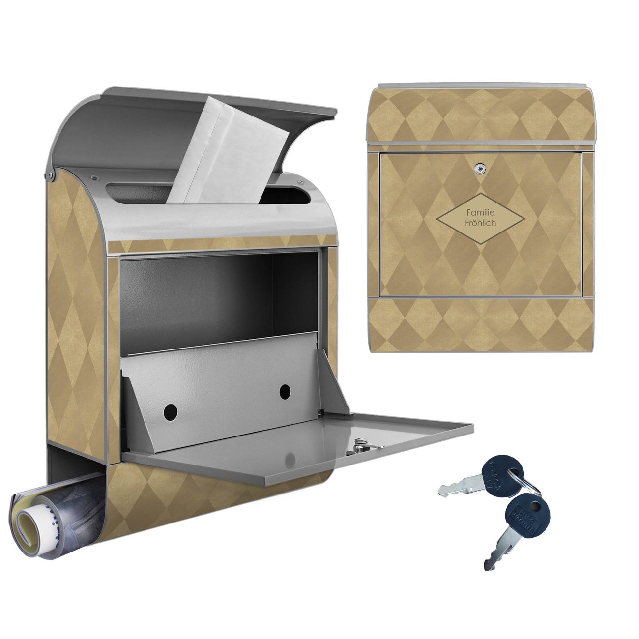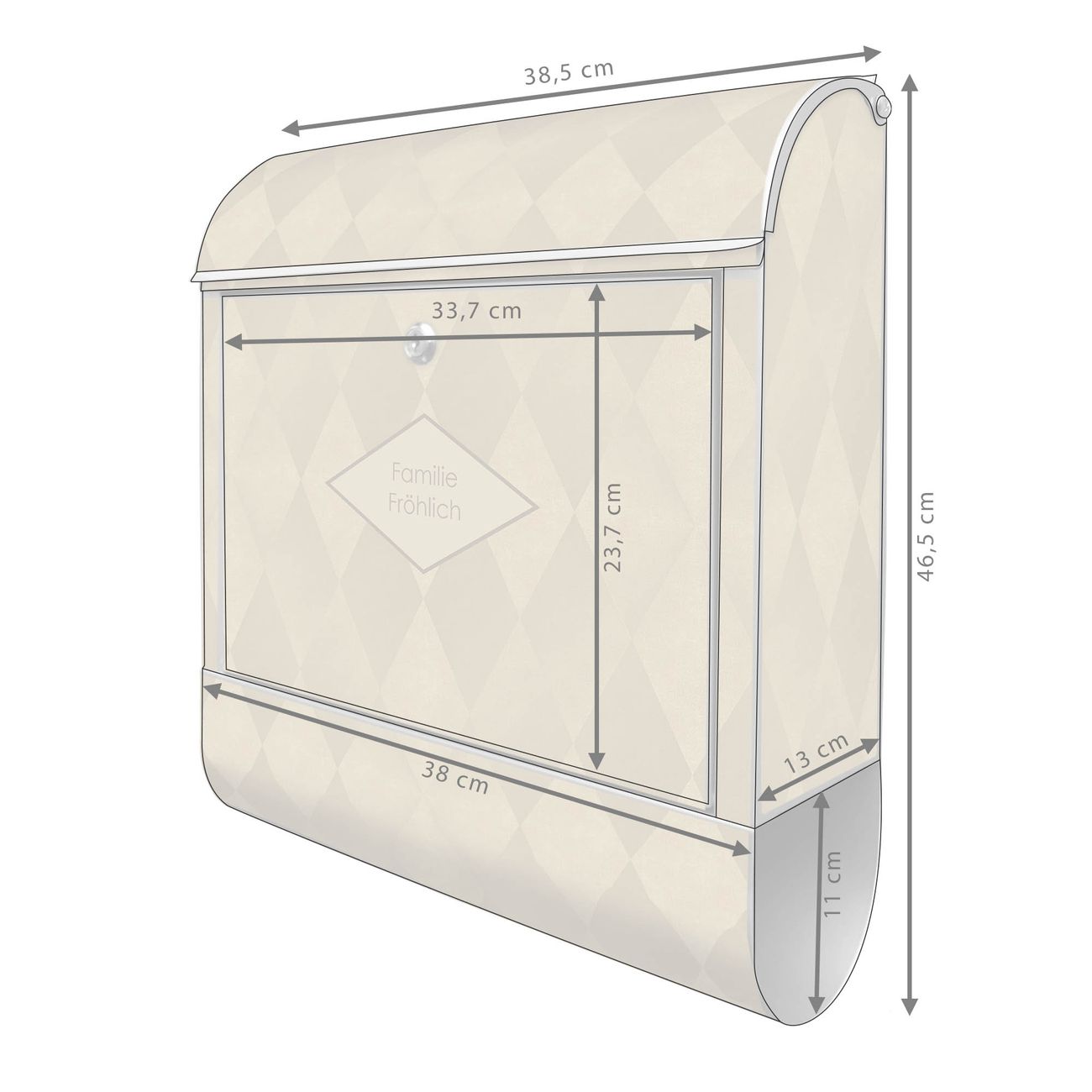 Großer Stahl Briefkasten Motiv Rauten Metall