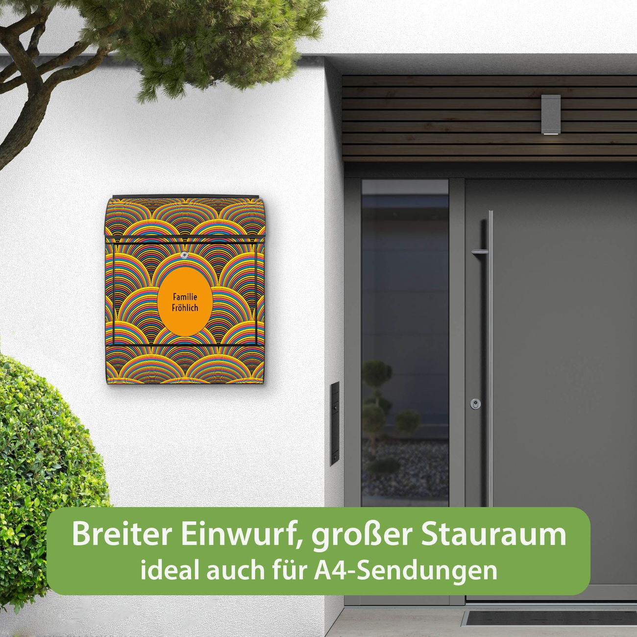 Großer Stahl Briefkasten Motiv Regenbögen