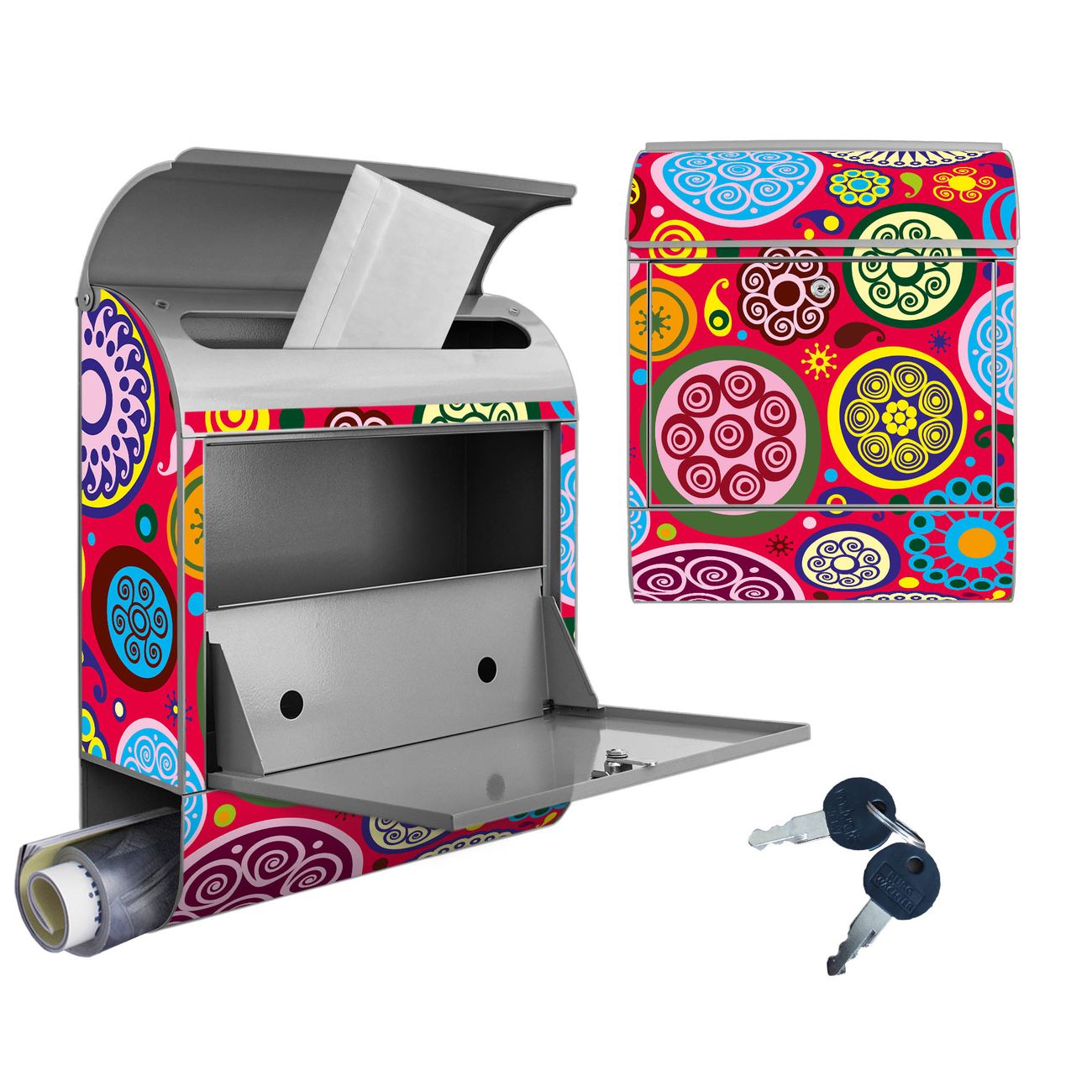 Großer Stahl Briefkasten Motiv Retro Kreise