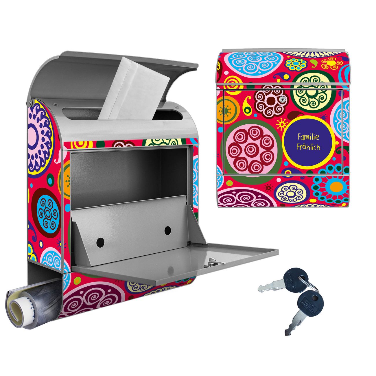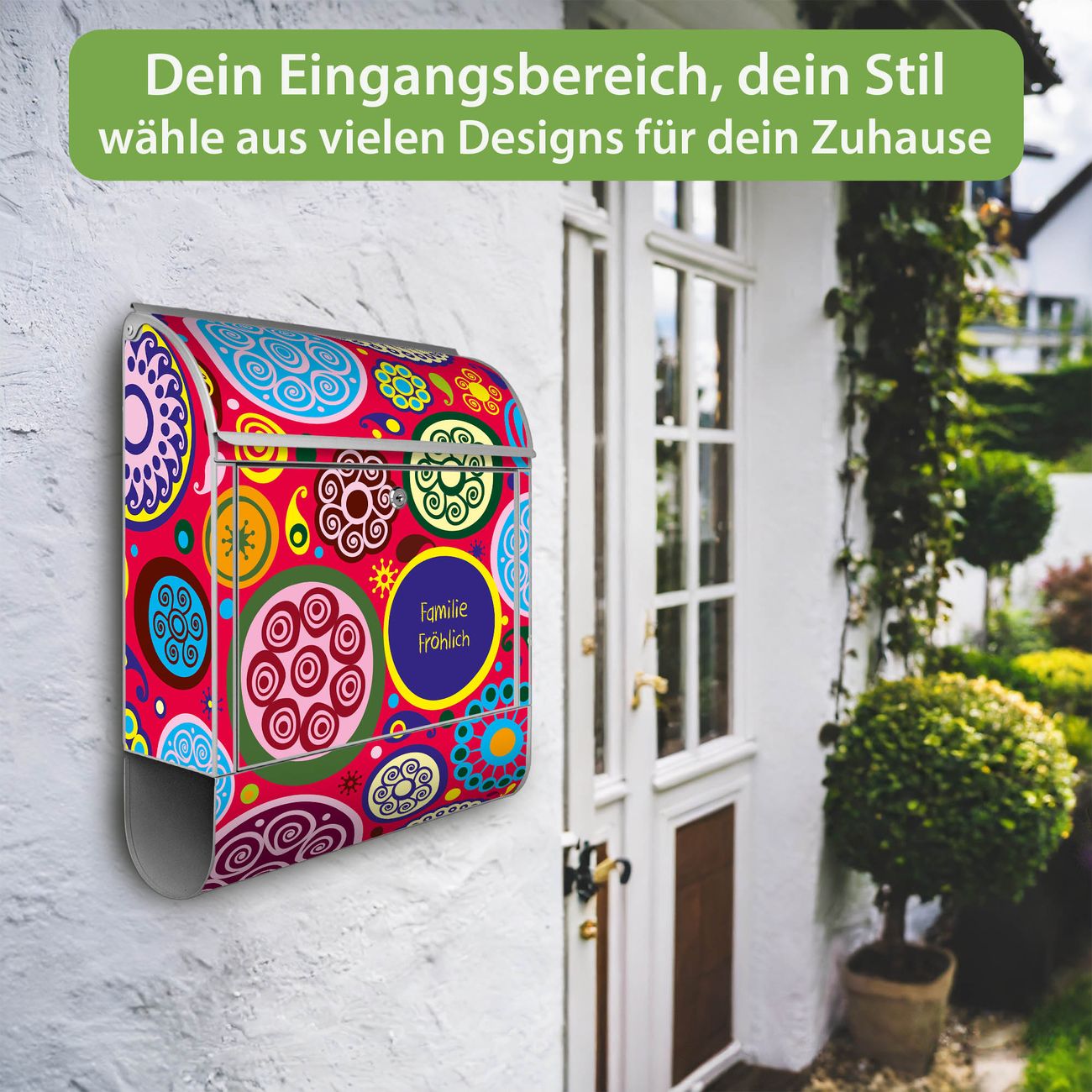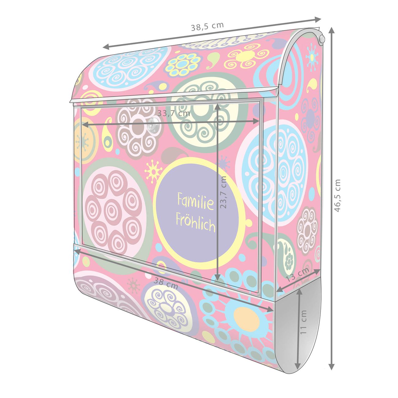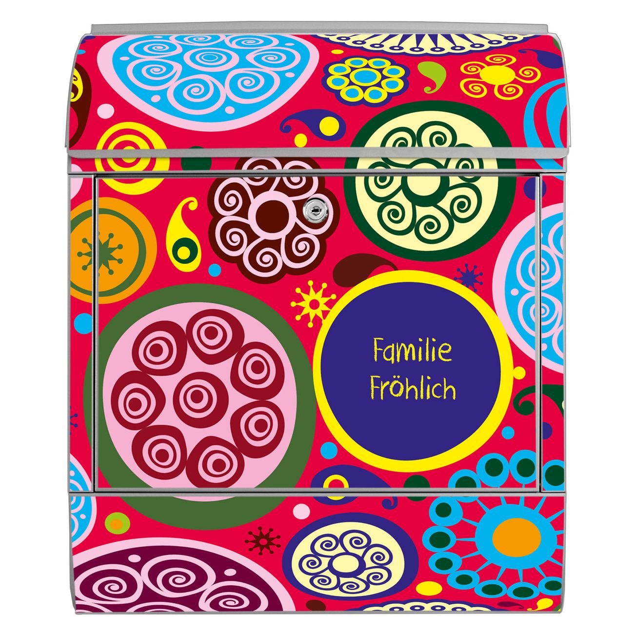Großer Stahl Briefkasten Motiv Retro Kreise