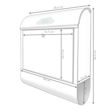 DESIGN: Der Postkasten mit Motiv Motiv Rettet die Wale hat ein sehr ansprechendes und ausgefallenes Design, damit entlocken Sie Ihren Nachbarn und dem Postboten ein Lächeln. Heben Sie Sich von der tristen grauen Masse ab, ohne auf Funktionalität zu verzichten. DETAILS: Der Postkasten besteht aus pulverbeschichtetem Stahl. Er ist 38x46x12,5cm groß. Das Motiv besteht aus einer wetter- und UV-resistenten Folie, die mit einem Schutzlaminat überzogen ist, sodass der Briefkasten zusätzlich vor Kratzern geschützt ist. Der Briefkasten wird mit Montagematerial, zusätzlich zwei Schlüssel sowie einer Bohrschablone geliefert. NUTZEN: Sie können diesen Briefkasten sowohl als Wandbriefkasten montieren oder einen passenden Ständer kaufen und als Standbriefkasten einbetonieren. Die Größe bietet genügend Platz für Sendungen aller Art, der Einwurf fasst auch größere A4 Sendungen. BANJADO: Ihr Briefkasten wird in Sachsen in einer kleinen Manufaktur von Hand veredelt. Die Motivfolie ist lösungsmittelfrei und schutzlaminiert für einen langen Halt. Wir legen großen Wert auf die Verbindung von Funktionalität und Design. Sie erhalten Handarbeit aus Sachsen.