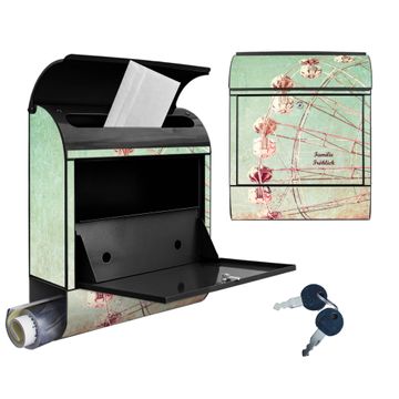 DESIGN: Der Postkasten mit Motiv Motiv Riesenrad 1 hat ein sehr ansprechendes und ausgefallenes Design, damit entlocken Sie Ihren Nachbarn und dem Postboten ein Lächeln. Heben Sie Sich von der tristen grauen Masse ab, ohne auf Funktionalität zu verzichten. DETAILS: Der Postkasten besteht aus pulverbeschichtetem Stahl. Er ist 38x46x12,5cm groß. Das Motiv besteht aus einer wetter- und UV-resistenten Folie, die mit einem Schutzlaminat überzogen ist, sodass der Briefkasten zusätzlich vor Kratzern geschützt ist. Der Briefkasten wird mit Montagematerial, zusätzlich zwei Schlüssel sowie einer Bohrschablone geliefert. NUTZEN: Sie können diesen Briefkasten sowohl als Wandbriefkasten montieren oder einen passenden Ständer kaufen und als Standbriefkasten einbetonieren. Die Größe bietet genügend Platz für Sendungen aller Art, der Einwurf fasst auch größere A4 Sendungen. BANJADO: Ihr Briefkasten wird in Sachsen in einer kleinen Manufaktur von Hand veredelt. Die Motivfolie ist lösungsmittelfrei und schutzlaminiert für einen langen Halt. Wir legen großen Wert auf die Verbindung von Funktionalität und Design. Sie erhalten Handarbeit aus Sachsen.
