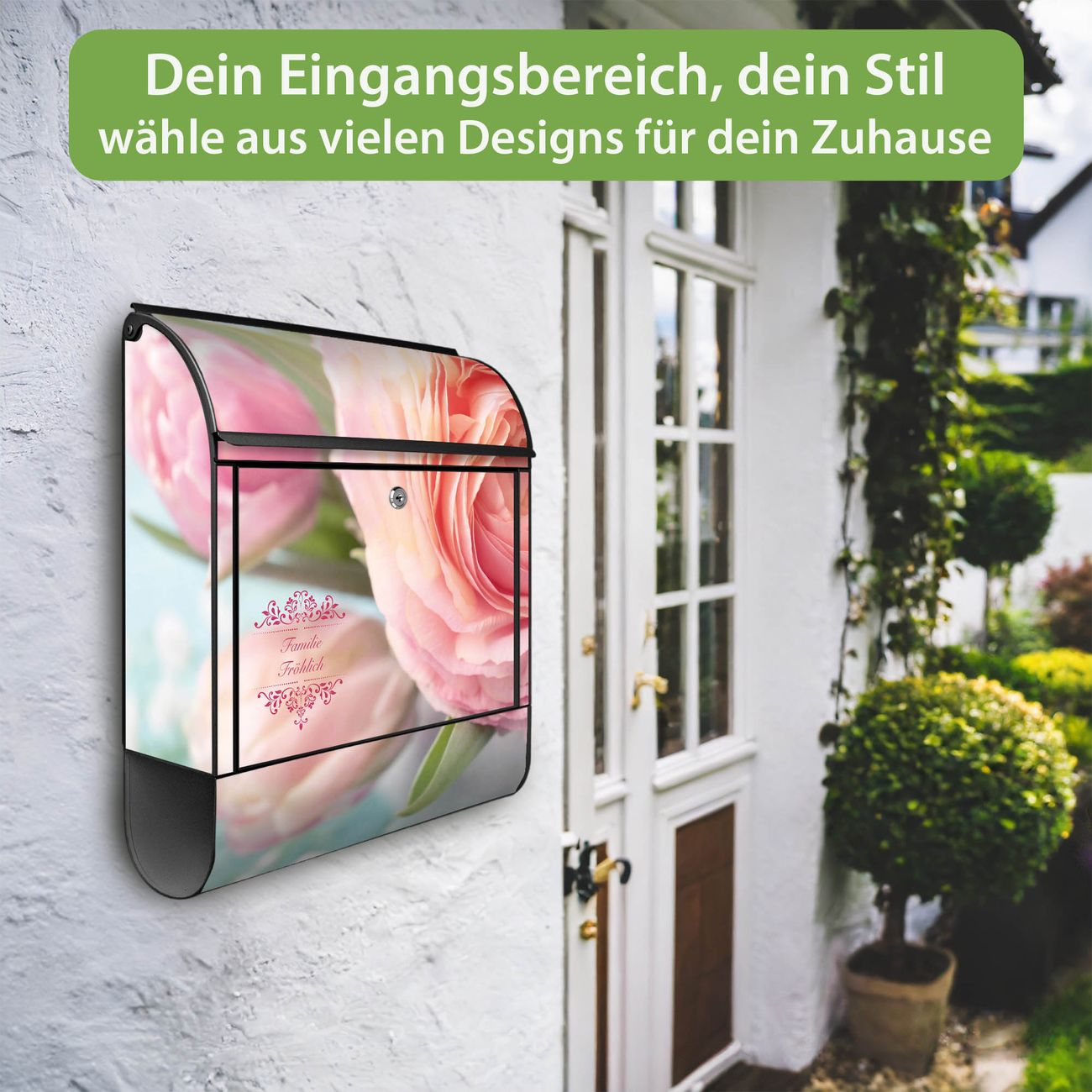 Großer Stahl Briefkasten Motiv Rosa Tulpe