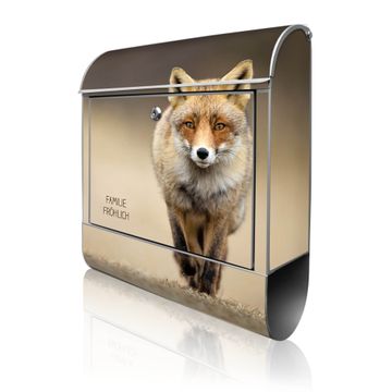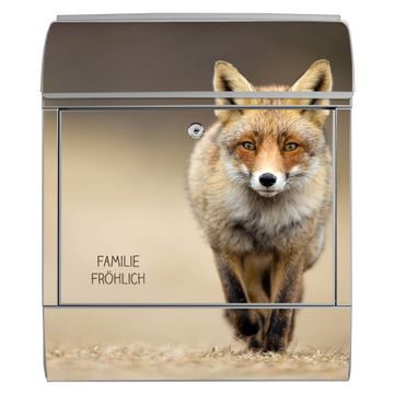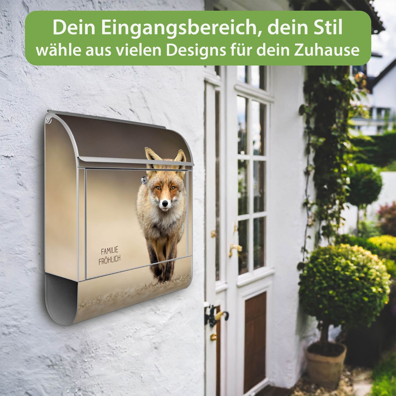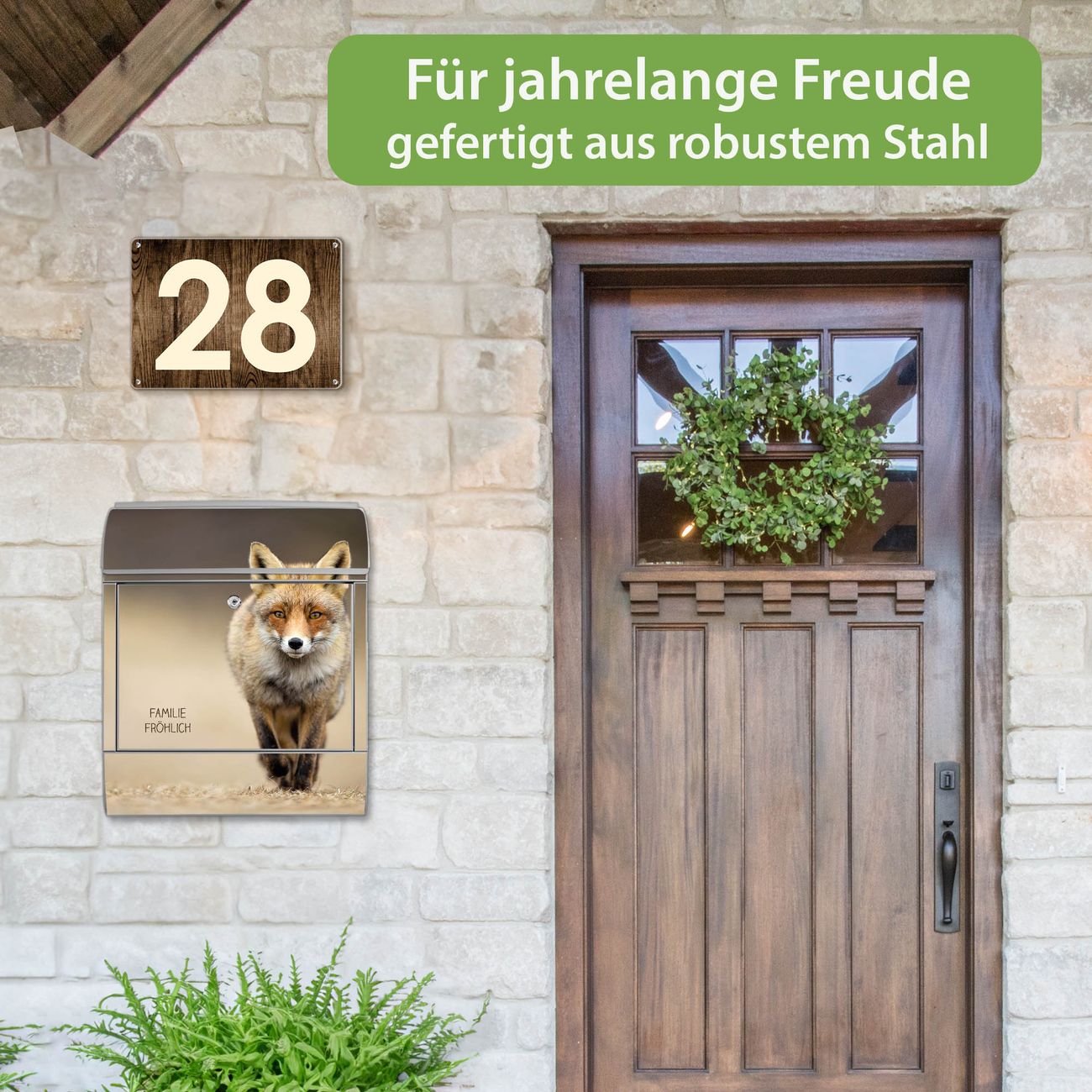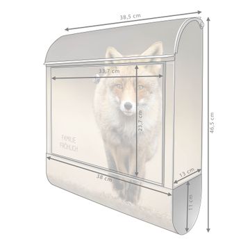 DESIGN: Der Postkasten mit Motiv Motiv Rosalie hat ein sehr ansprechendes und ausgefallenes Design, damit entlocken Sie Ihren Nachbarn und dem Postboten ein Lächeln. Heben Sie Sich von der tristen grauen Masse ab, ohne auf Funktionalität zu verzichten. DETAILS: Der Postkasten besteht aus pulverbeschichtetem Stahl. Er ist 38x46x12,5cm groß. Das Motiv besteht aus einer wetter- und UV-resistenten Folie, die mit einem Schutzlaminat überzogen ist, sodass der Briefkasten zusätzlich vor Kratzern geschützt ist. Der Briefkasten wird mit Montagematerial, zusätzlich zwei Schlüssel sowie einer Bohrschablone geliefert. NUTZEN: Sie können diesen Briefkasten sowohl als Wandbriefkasten montieren oder einen passenden Ständer kaufen und als Standbriefkasten einbetonieren. Die Größe bietet genügend Platz für Sendungen aller Art, der Einwurf fasst auch größere A4 Sendungen. BANJADO: Ihr Briefkasten wird in Sachsen in einer kleinen Manufaktur von Hand veredelt. Die Motivfolie ist lösungsmittelfrei und schutzlaminiert für einen langen Halt. Wir legen großen Wert auf die Verbindung von Funktionalität und Design. Sie erhalten Handarbeit aus Sachsen.
