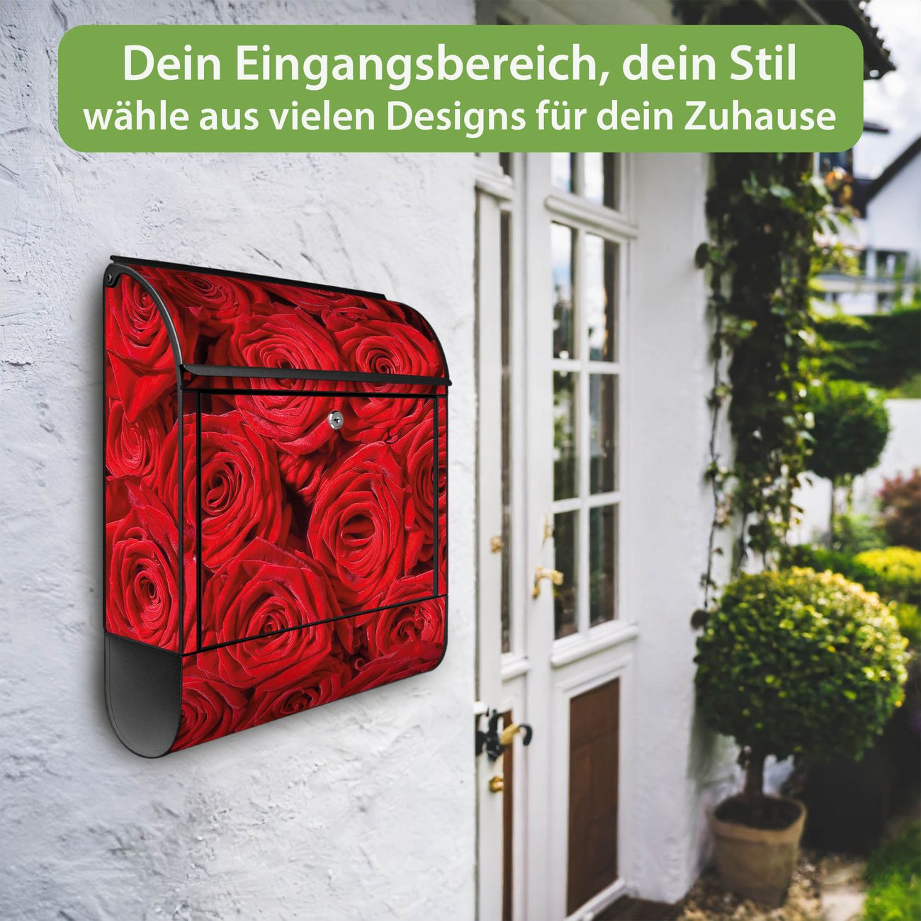 Großer Stahl Briefkasten Motiv Rosenbett