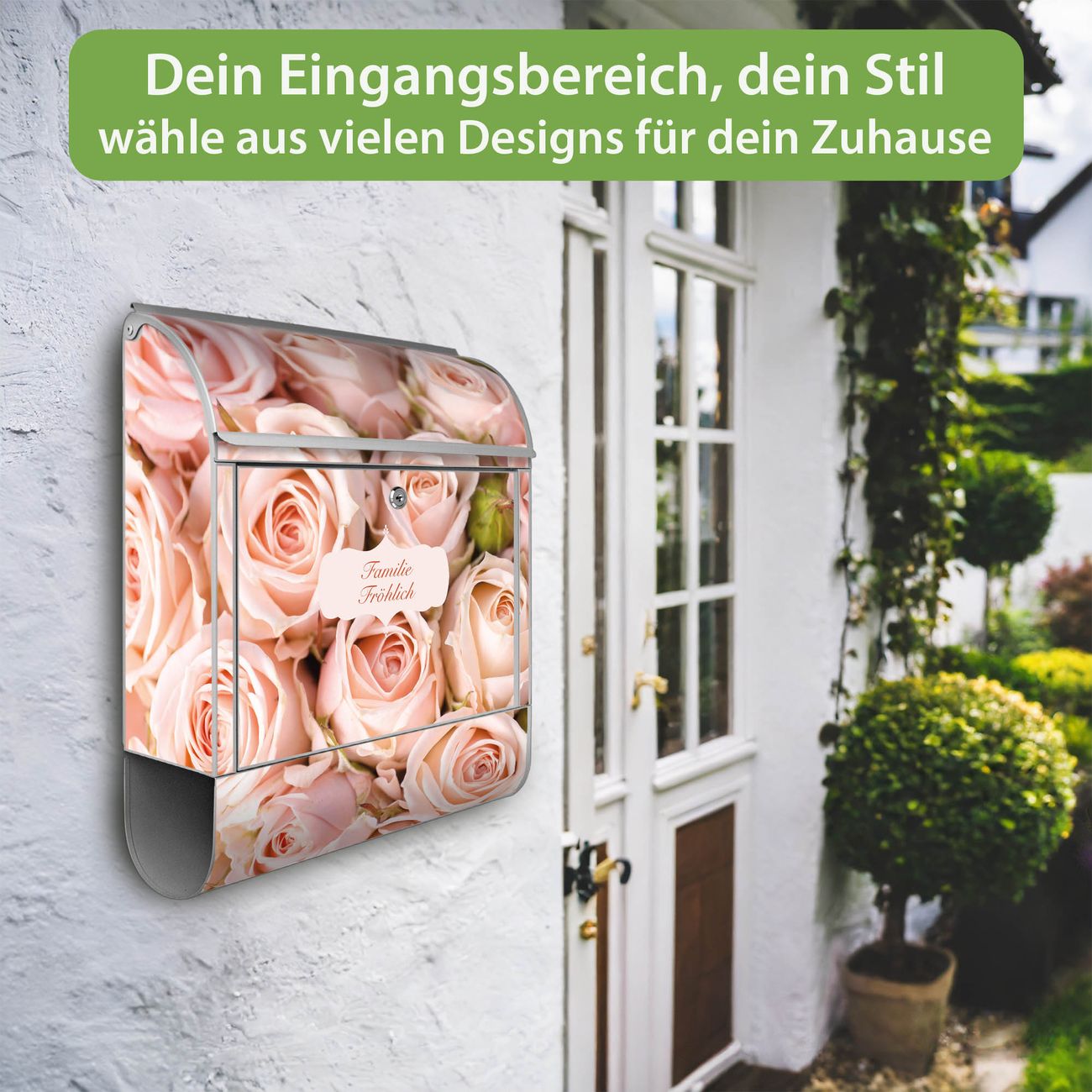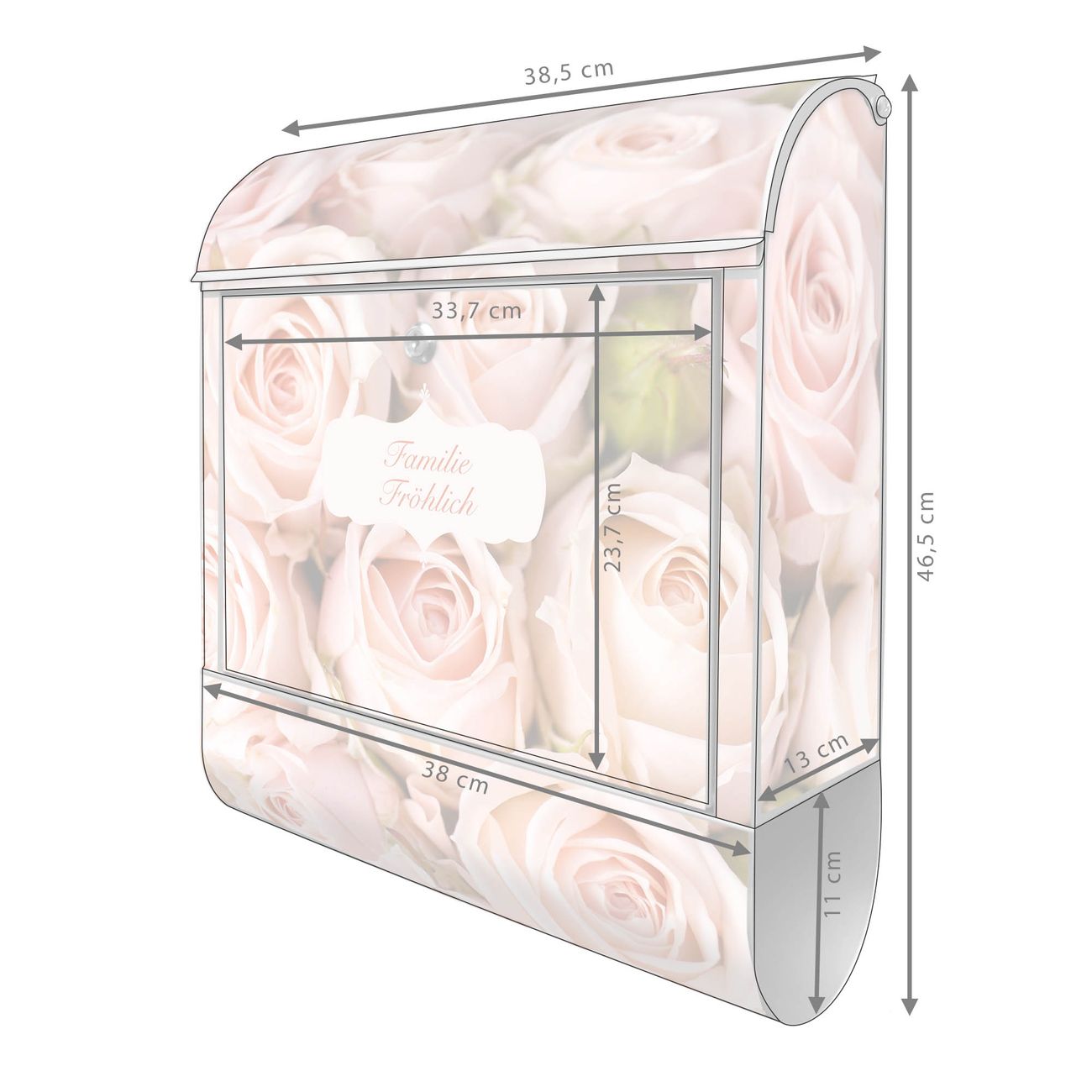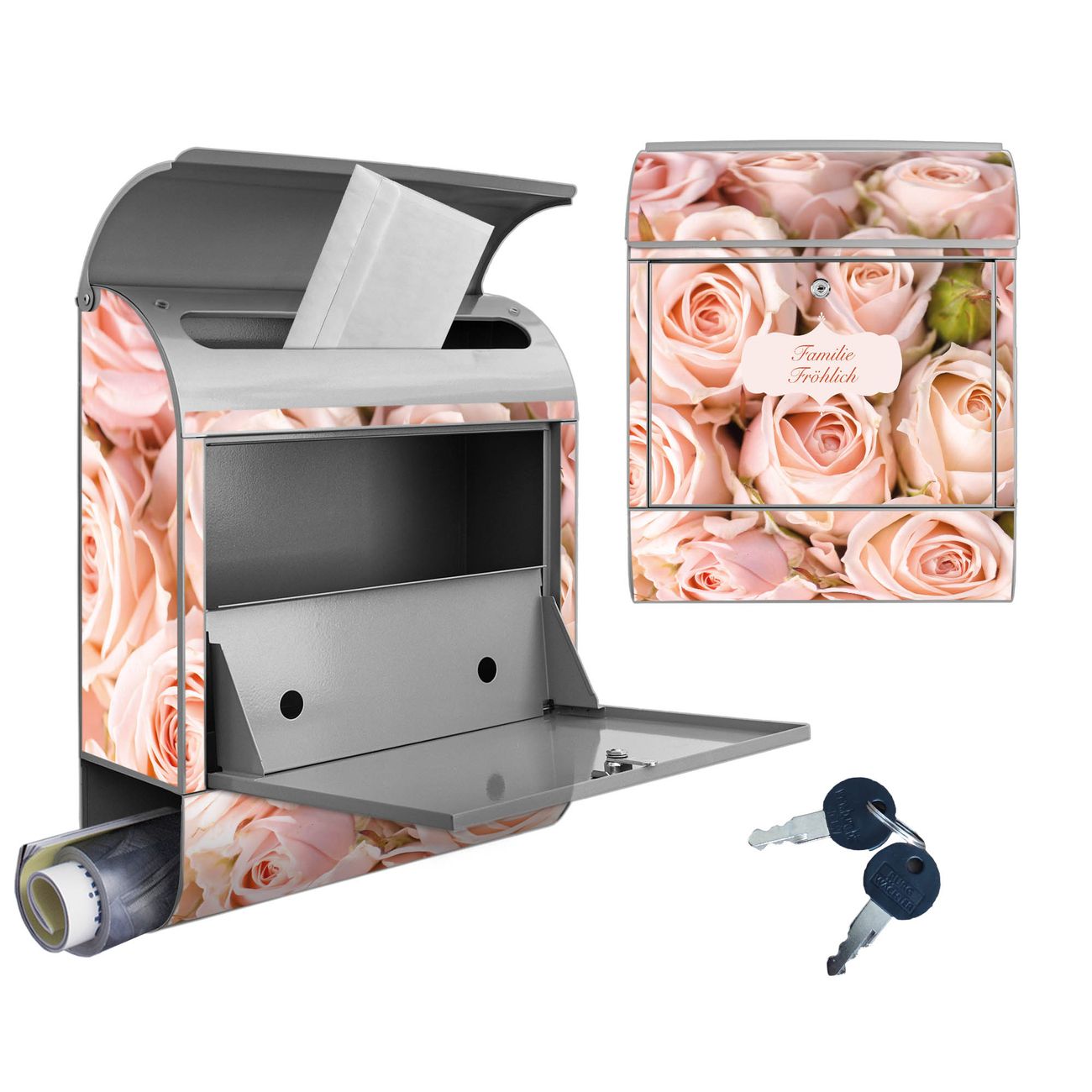 Großer Stahl Briefkasten Motiv Rosenbouquet
