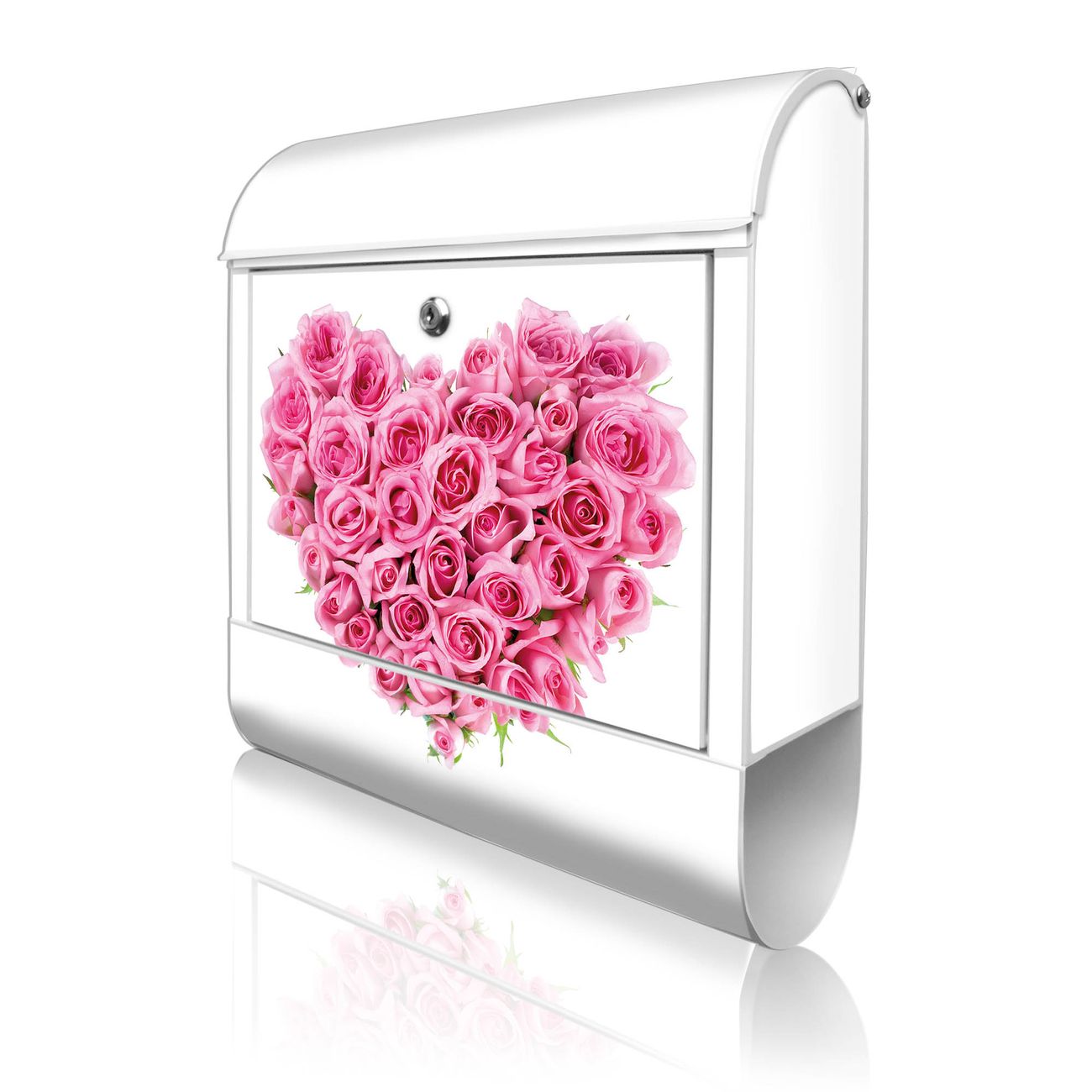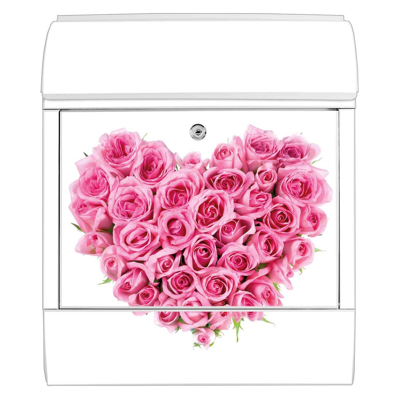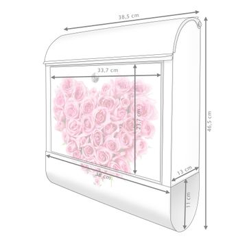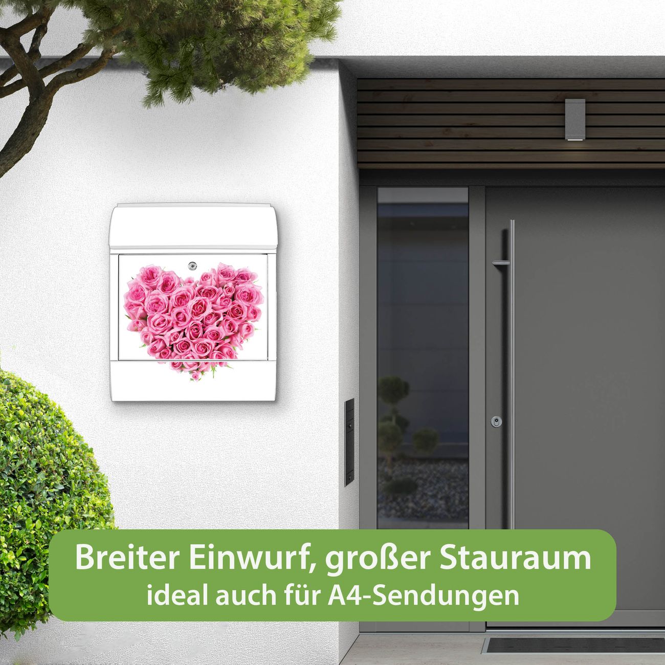 DESIGN: Der Postkasten mit Motiv Motiv Rosenherz hat ein sehr ansprechendes und ausgefallenes Design, damit entlocken Sie Ihren Nachbarn und dem Postboten ein Lächeln. Heben Sie Sich von der tristen grauen Masse ab, ohne auf Funktionalität zu verzichten. DETAILS: Der Postkasten besteht aus pulverbeschichtetem Stahl. Er ist 38x46x12,5cm groß. Das Motiv besteht aus einer wetter- und UV-resistenten Folie, die mit einem Schutzlaminat überzogen ist, sodass der Briefkasten zusätzlich vor Kratzern geschützt ist. Der Briefkasten wird mit Montagematerial, zusätzlich zwei Schlüssel sowie einer Bohrschablone geliefert. NUTZEN: Sie können diesen Briefkasten sowohl als Wandbriefkasten montieren oder einen passenden Ständer kaufen und als Standbriefkasten einbetonieren. Die Größe bietet genügend Platz für Sendungen aller Art, der Einwurf fasst auch größere A4 Sendungen. BANJADO: Ihr Briefkasten wird in Sachsen in einer kleinen Manufaktur von Hand veredelt. Die Motivfolie ist lösungsmittelfrei und schutzlaminiert für einen langen Halt. Wir legen großen Wert auf die Verbindung von Funktionalität und Design. Sie erhalten Handarbeit aus Sachsen.