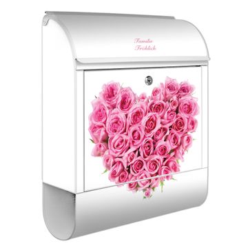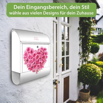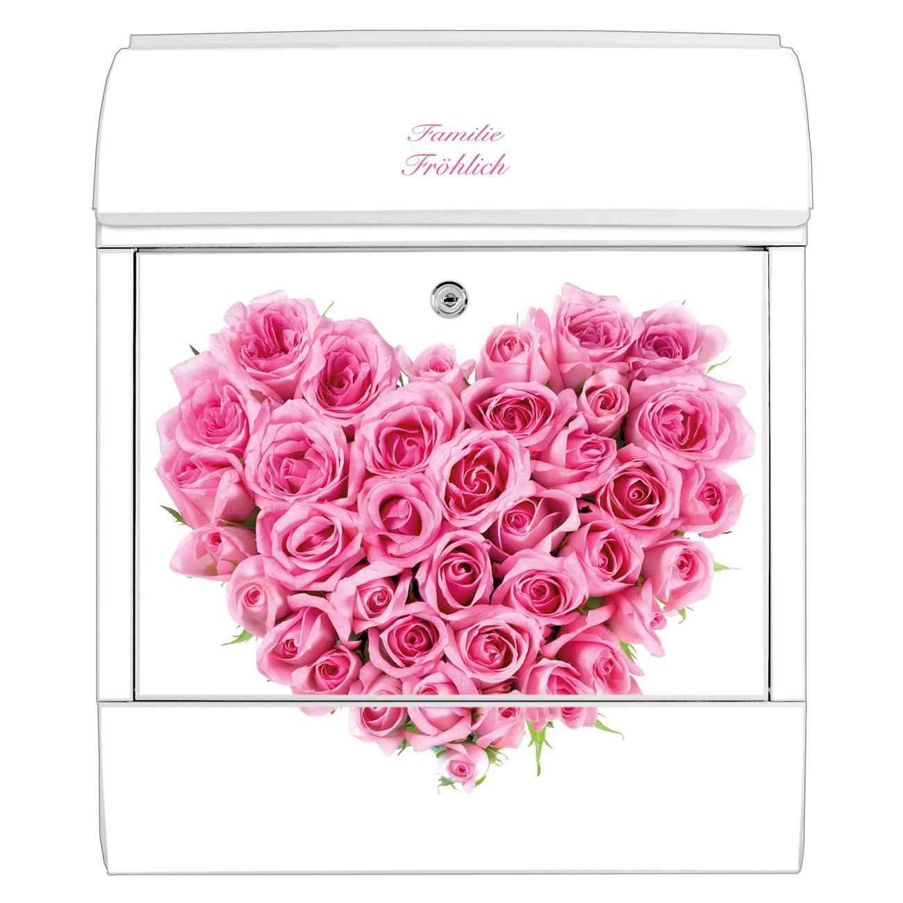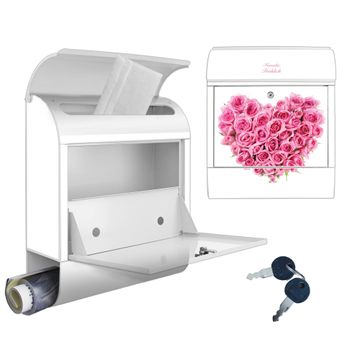 DESIGN: Der Postkasten mit Motiv Motiv Rosenherz hat ein sehr ansprechendes und ausgefallenes Design, damit entlocken Sie Ihren Nachbarn und dem Postboten ein Lächeln. Heben Sie Sich von der tristen grauen Masse ab, ohne auf Funktionalität zu verzichten. DETAILS: Der Postkasten besteht aus pulverbeschichtetem Stahl. Er ist 38x46x12,5cm groß. Das Motiv besteht aus einer wetter- und UV-resistenten Folie, die mit einem Schutzlaminat überzogen ist, sodass der Briefkasten zusätzlich vor Kratzern geschützt ist. Der Briefkasten wird mit Montagematerial, zusätzlich zwei Schlüssel sowie einer Bohrschablone geliefert. NUTZEN: Sie können diesen Briefkasten sowohl als Wandbriefkasten montieren oder einen passenden Ständer kaufen und als Standbriefkasten einbetonieren. Die Größe bietet genügend Platz für Sendungen aller Art, der Einwurf fasst auch größere A4 Sendungen. BANJADO: Ihr Briefkasten wird in Sachsen in einer kleinen Manufaktur von Hand veredelt. Die Motivfolie ist lösungsmittelfrei und schutzlaminiert für einen langen Halt. Wir legen großen Wert auf die Verbindung von Funktionalität und Design. Sie erhalten Handarbeit aus Sachsen.
