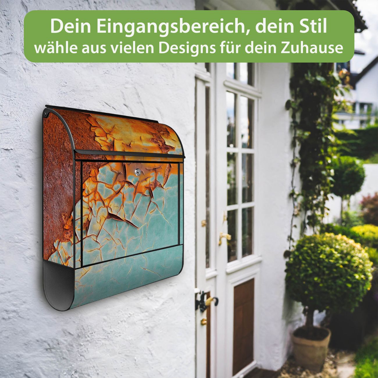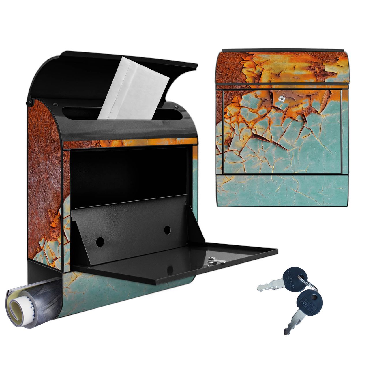 Großer Stahl Briefkasten Motiv Rost und Blau