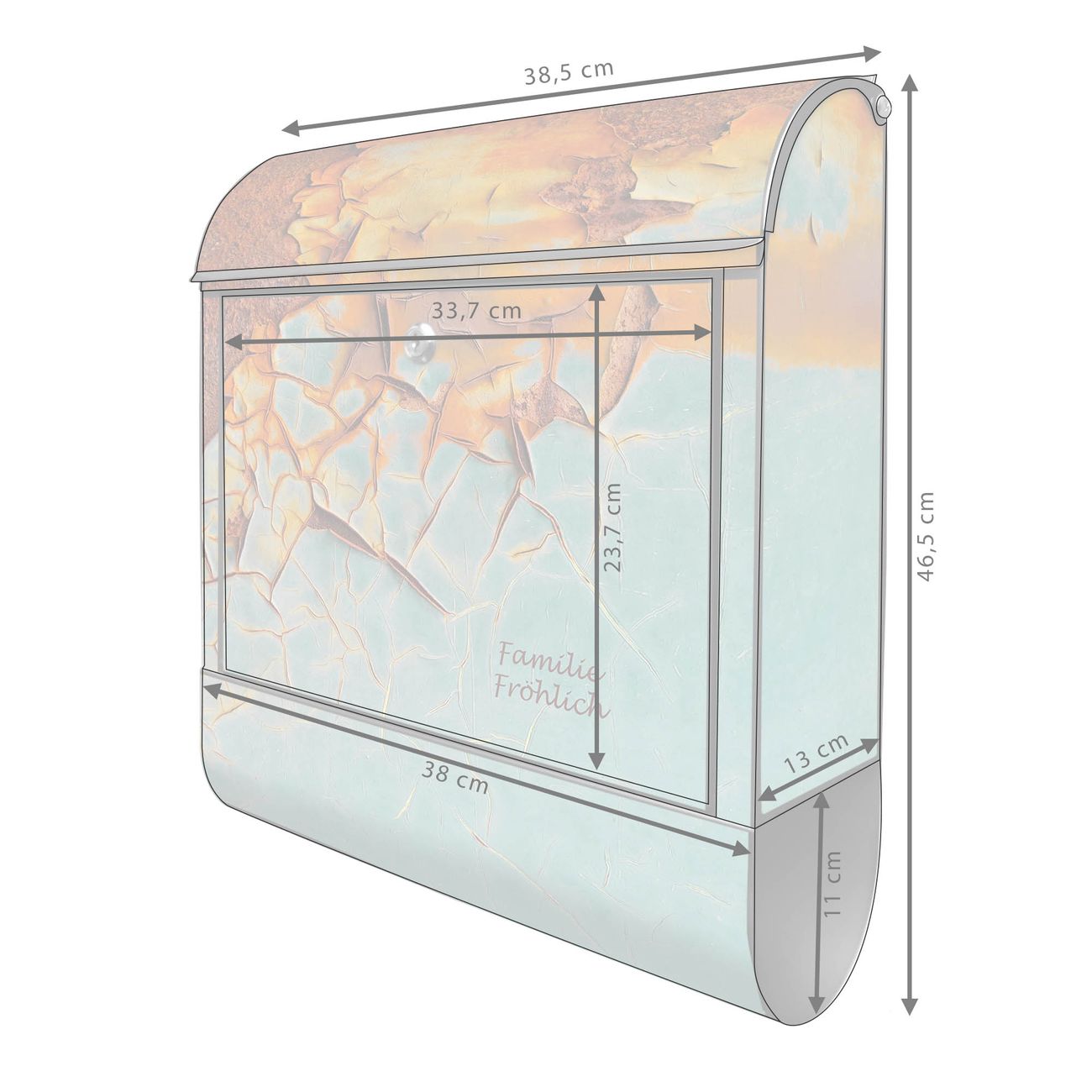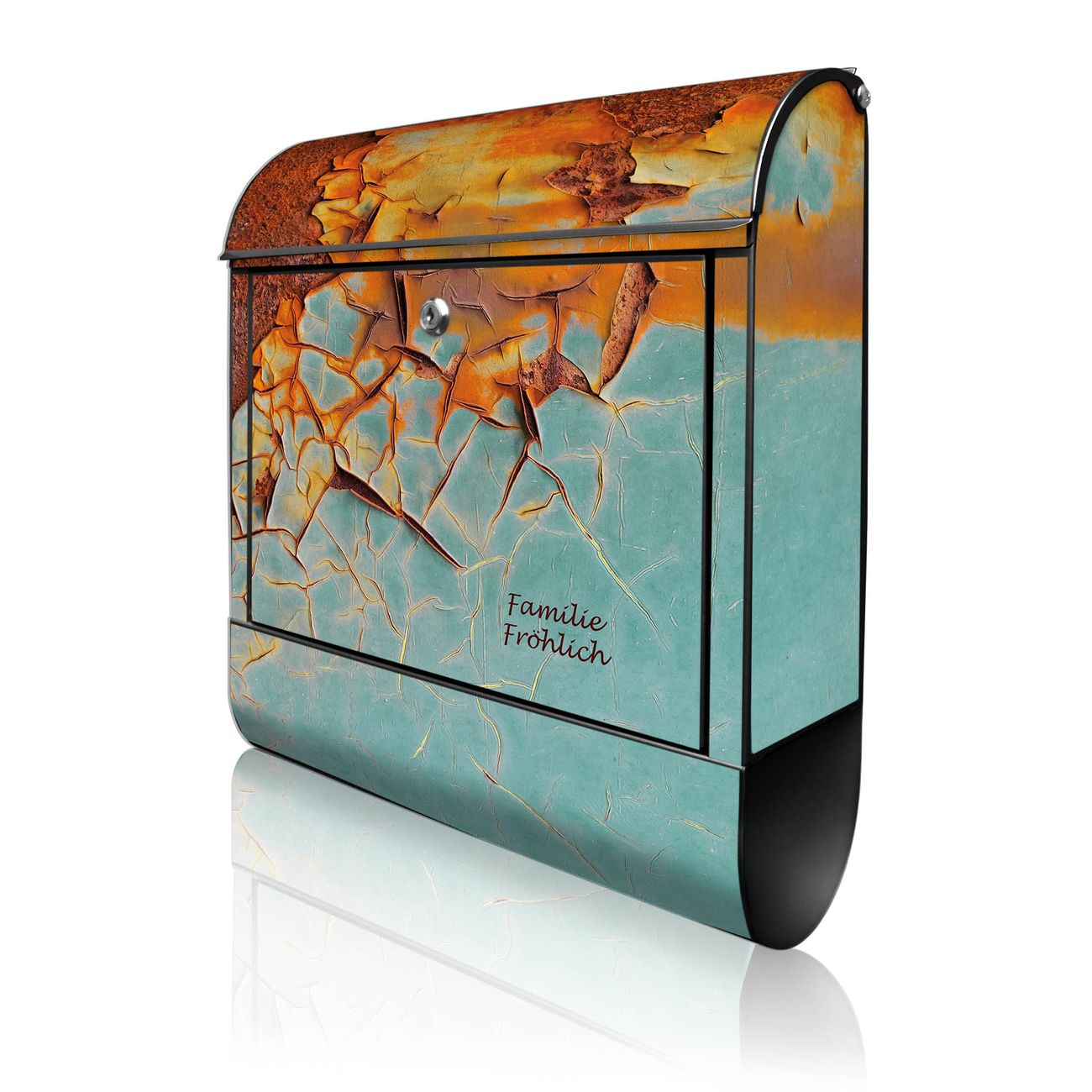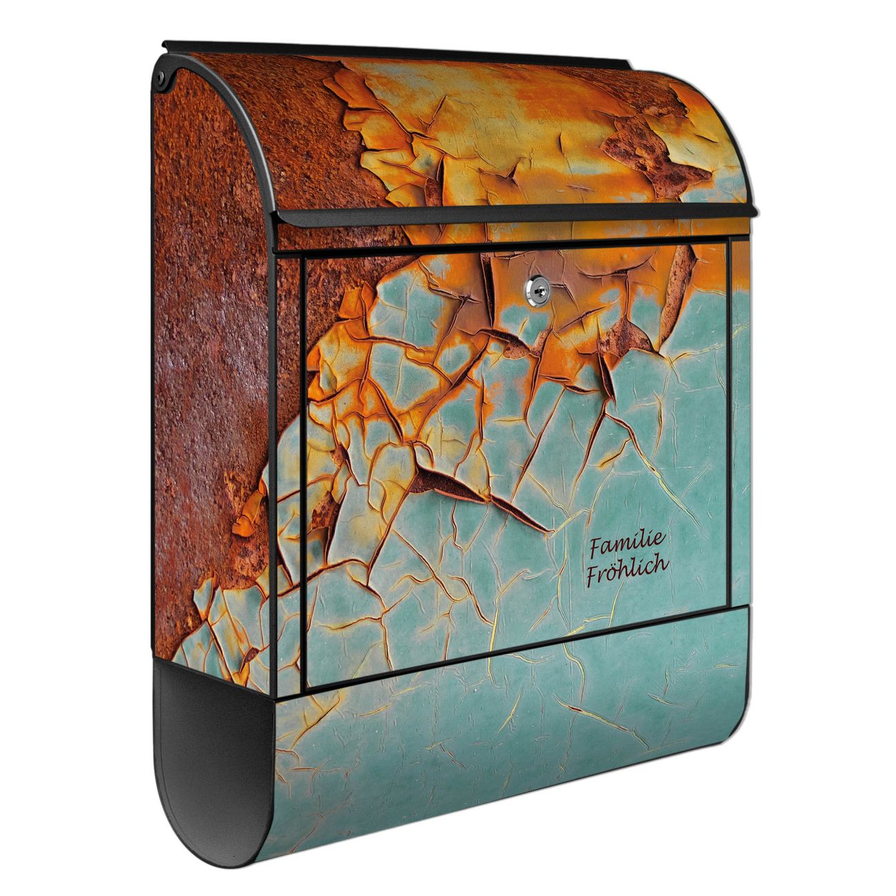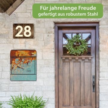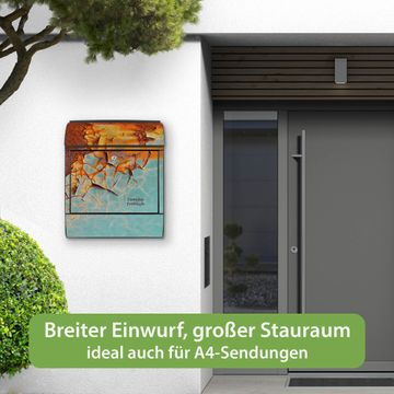 Großer Stahl Briefkasten Motiv Rost und Blau