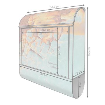 DESIGN: Der Postkasten mit Motiv Motiv Rost und Blau hat ein sehr ansprechendes und ausgefallenes Design, damit entlocken Sie Ihren Nachbarn und dem Postboten ein Lächeln. Heben Sie Sich von der tristen grauen Masse ab, ohne auf Funktionalität zu verzichten. DETAILS: Der Postkasten besteht aus pulverbeschichtetem Stahl. Er ist 38x46x12,5cm groß. Das Motiv besteht aus einer wetter- und UV-resistenten Folie, die mit einem Schutzlaminat überzogen ist, sodass der Briefkasten zusätzlich vor Kratzern geschützt ist. Der Briefkasten wird mit Montagematerial, zusätzlich zwei Schlüssel sowie einer Bohrschablone geliefert. NUTZEN: Sie können diesen Briefkasten sowohl als Wandbriefkasten montieren oder einen passenden Ständer kaufen und als Standbriefkasten einbetonieren. Die Größe bietet genügend Platz für Sendungen aller Art, der Einwurf fasst auch größere A4 Sendungen. BANJADO: Ihr Briefkasten wird in Sachsen in einer kleinen Manufaktur von Hand veredelt. Die Motivfolie ist lösungsmittelfrei und schutzlaminiert für einen langen Halt. Wir legen großen Wert auf die Verbindung von Funktionalität und Design. Sie erhalten Handarbeit aus Sachsen.