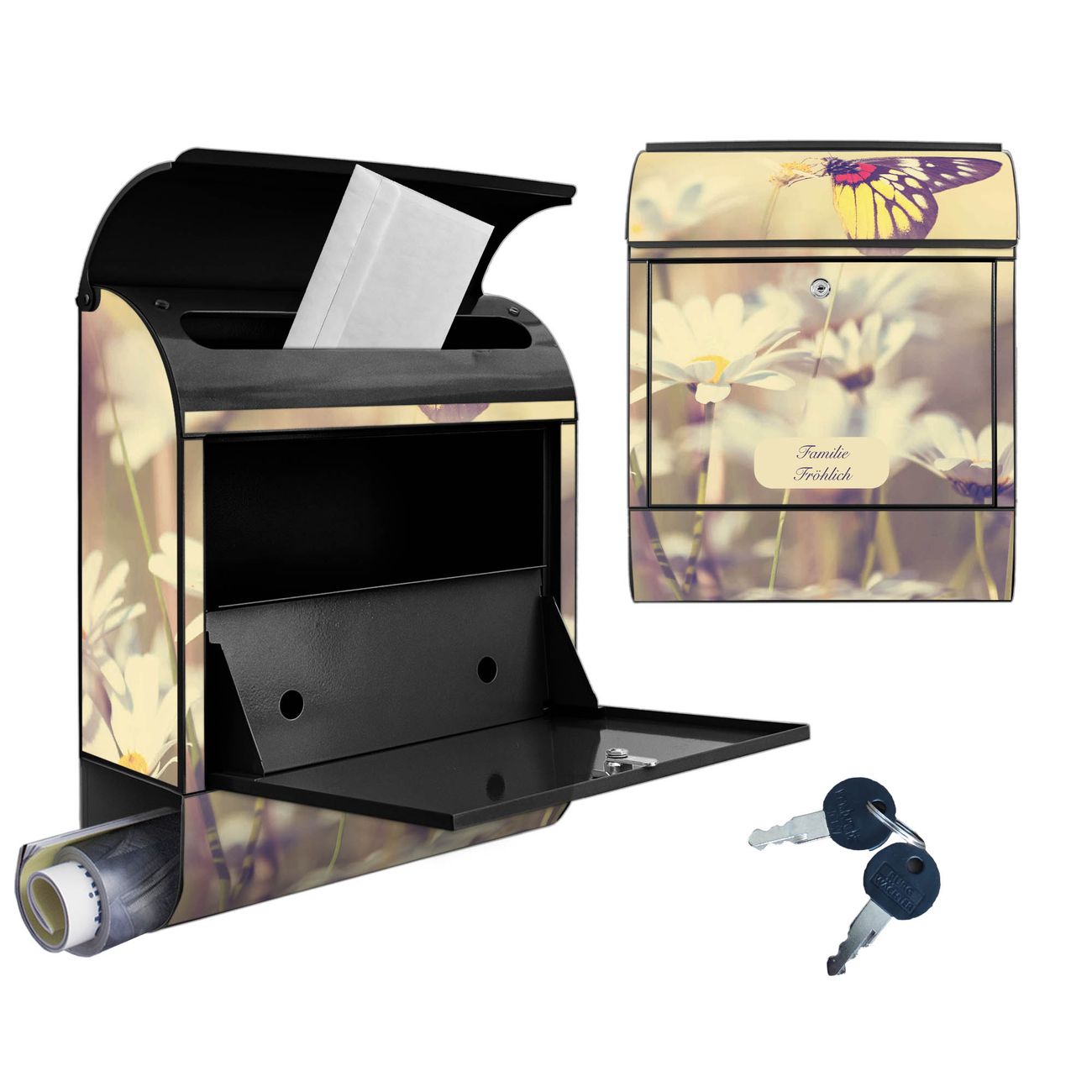 Großer Stahl Briefkasten Motiv Rotgelber Falter