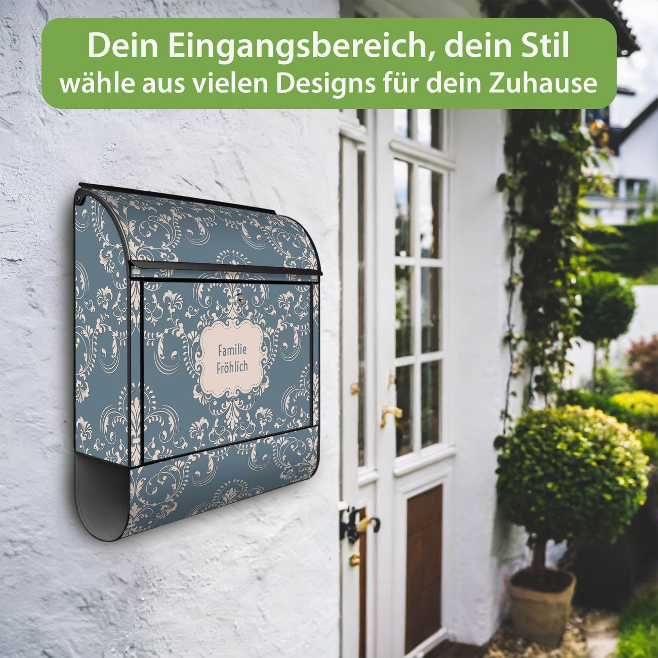 Großer Stahl Briefkasten Motiv Royal Creme Blau