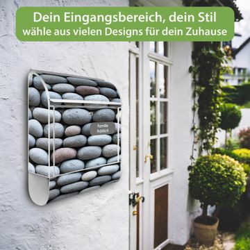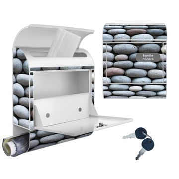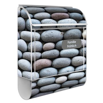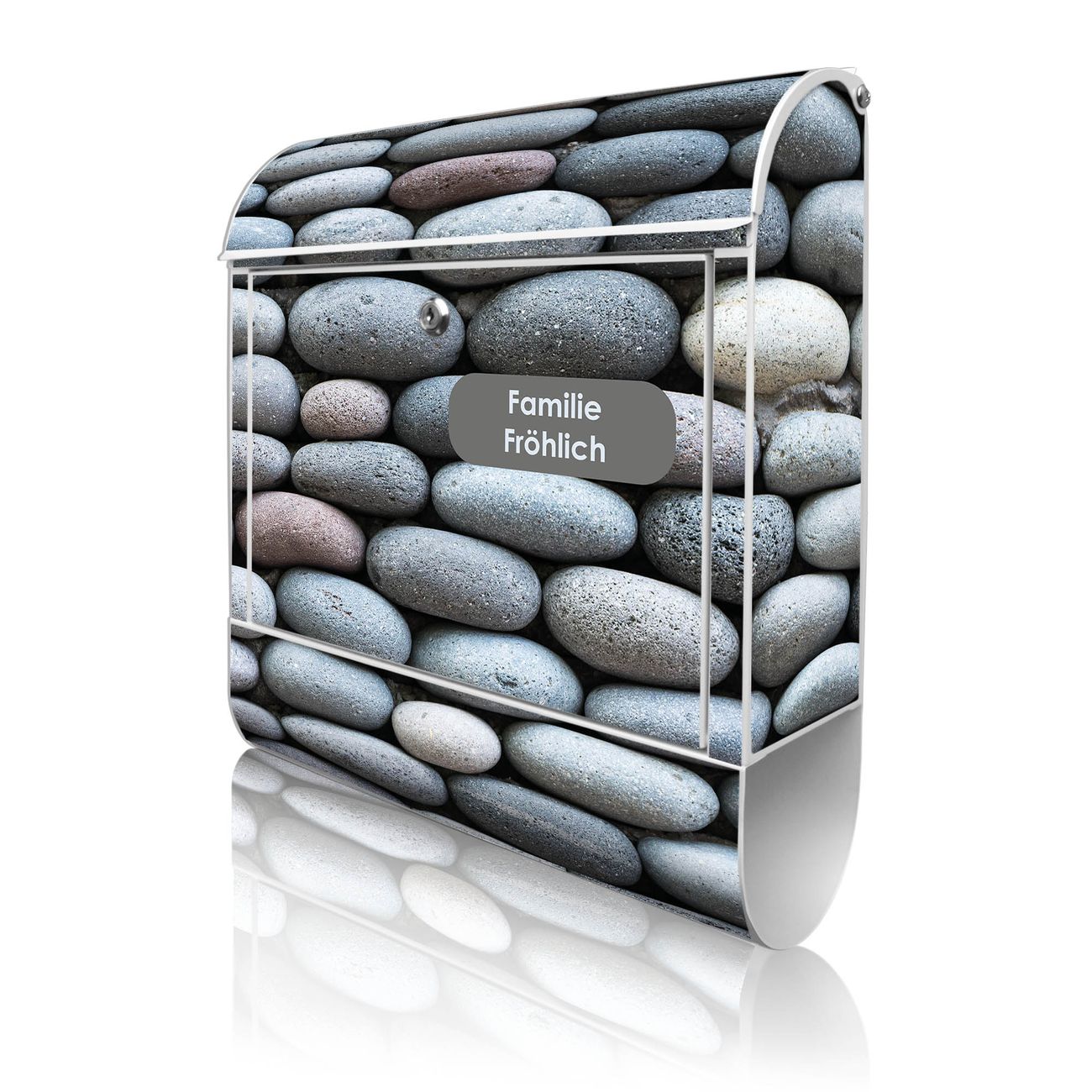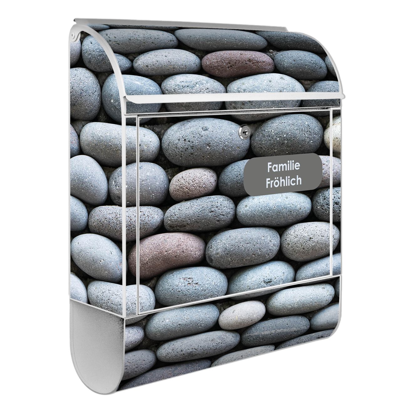 DESIGN: Der Postkasten mit Motiv Motiv Runde Steine hat ein sehr ansprechendes und ausgefallenes Design, damit entlocken Sie Ihren Nachbarn und dem Postboten ein Lächeln. Heben Sie Sich von der tristen grauen Masse ab, ohne auf Funktionalität zu verzichten. DETAILS: Der Postkasten besteht aus pulverbeschichtetem Stahl. Er ist 38x46x12,5cm groß. Das Motiv besteht aus einer wetter- und UV-resistenten Folie, die mit einem Schutzlaminat überzogen ist, sodass der Briefkasten zusätzlich vor Kratzern geschützt ist. Der Briefkasten wird mit Montagematerial, zusätzlich zwei Schlüssel sowie einer Bohrschablone geliefert. NUTZEN: Sie können diesen Briefkasten sowohl als Wandbriefkasten montieren oder einen passenden Ständer kaufen und als Standbriefkasten einbetonieren. Die Größe bietet genügend Platz für Sendungen aller Art, der Einwurf fasst auch größere A4 Sendungen. BANJADO: Ihr Briefkasten wird in Sachsen in einer kleinen Manufaktur von Hand veredelt. Die Motivfolie ist lösungsmittelfrei und schutzlaminiert für einen langen Halt. Wir legen großen Wert auf die Verbindung von Funktionalität und Design. Sie erhalten Handarbeit aus Sachsen.
