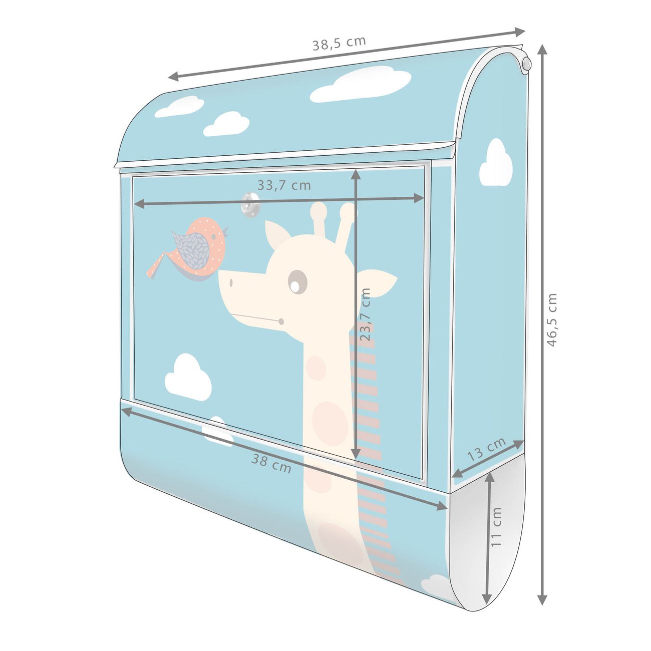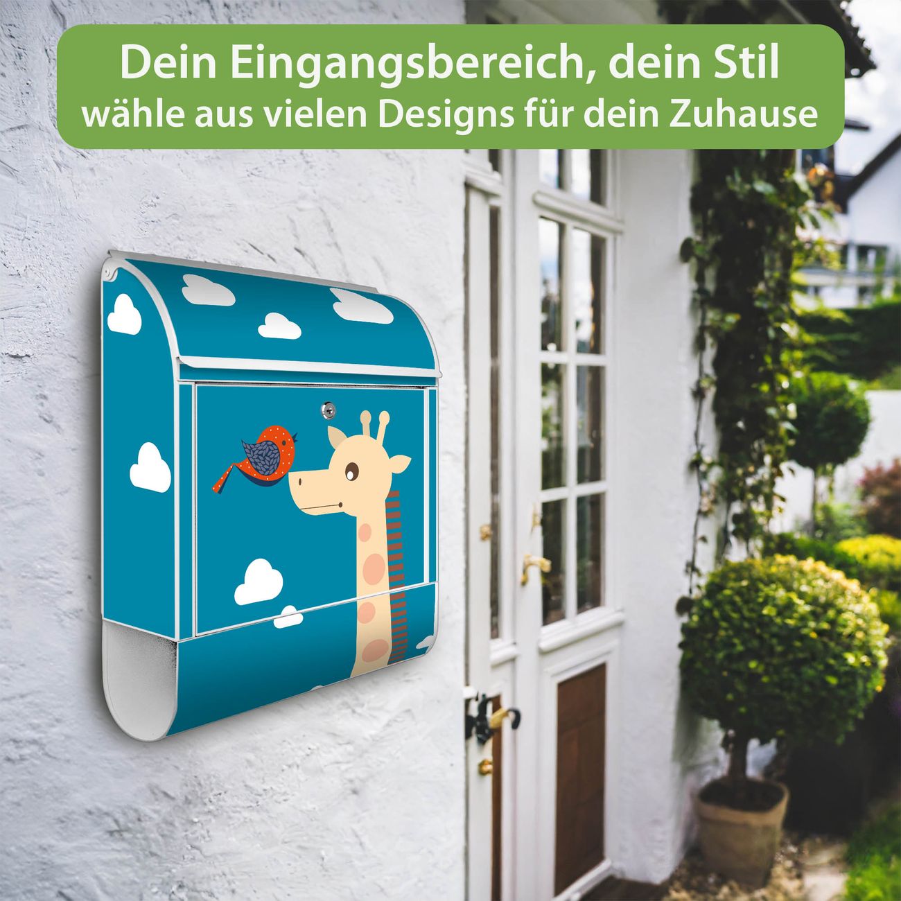DESIGN: Der Postkasten mit Motiv Motiv Sally und Georg hat ein sehr ansprechendes und ausgefallenes Design, damit entlocken Sie Ihren Nachbarn und dem Postboten ein Lächeln. Heben Sie Sich von der tristen grauen Masse ab, ohne auf Funktionalität zu verzichten. DETAILS: Der Postkasten besteht aus pulverbeschichtetem Stahl. Er ist 38x46x12,5cm groß. Das Motiv besteht aus einer wetter- und UV-resistenten Folie, die mit einem Schutzlaminat überzogen ist, sodass der Briefkasten zusätzlich vor Kratzern geschützt ist. Der Briefkasten wird mit Montagematerial, zusätzlich zwei Schlüssel sowie einer Bohrschablone geliefert. NUTZEN: Sie können diesen Briefkasten sowohl als Wandbriefkasten montieren oder einen passenden Ständer kaufen und als Standbriefkasten einbetonieren. Die Größe bietet genügend Platz für Sendungen aller Art, der Einwurf fasst auch größere A4 Sendungen. BANJADO: Ihr Briefkasten wird in Sachsen in einer kleinen Manufaktur von Hand veredelt. Die Motivfolie ist lösungsmittelfrei und schutzlaminiert für einen langen Halt. Wir legen großen Wert auf die Verbindung von Funktionalität und Design. Sie erhalten Handarbeit aus Sachsen.