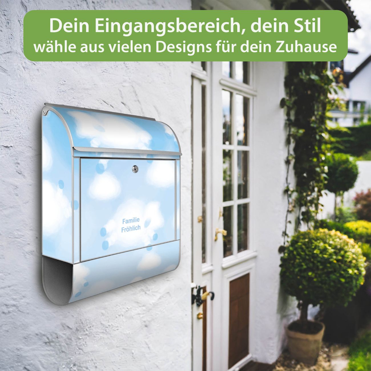 Großer Stahl Briefkasten Motiv Schäfchenwolken