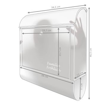 DESIGN: Der Postkasten mit Motiv Motiv Schattenspiel hat ein sehr ansprechendes und ausgefallenes Design, damit entlocken Sie Ihren Nachbarn und dem Postboten ein Lächeln. Heben Sie Sich von der tristen grauen Masse ab, ohne auf Funktionalität zu verzichten. DETAILS: Der Postkasten besteht aus pulverbeschichtetem Stahl. Er ist 38x46x12,5cm groß. Das Motiv besteht aus einer wetter- und UV-resistenten Folie, die mit einem Schutzlaminat überzogen ist, sodass der Briefkasten zusätzlich vor Kratzern geschützt ist. Der Briefkasten wird mit Montagematerial, zusätzlich zwei Schlüssel sowie einer Bohrschablone geliefert. NUTZEN: Sie können diesen Briefkasten sowohl als Wandbriefkasten montieren oder einen passenden Ständer kaufen und als Standbriefkasten einbetonieren. Die Größe bietet genügend Platz für Sendungen aller Art, der Einwurf fasst auch größere A4 Sendungen. BANJADO: Ihr Briefkasten wird in Sachsen in einer kleinen Manufaktur von Hand veredelt. Die Motivfolie ist lösungsmittelfrei und schutzlaminiert für einen langen Halt. Wir legen großen Wert auf die Verbindung von Funktionalität und Design. Sie erhalten Handarbeit aus Sachsen.