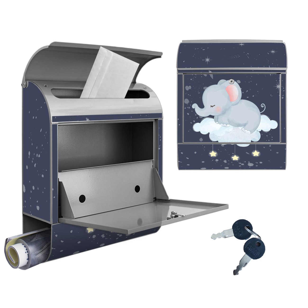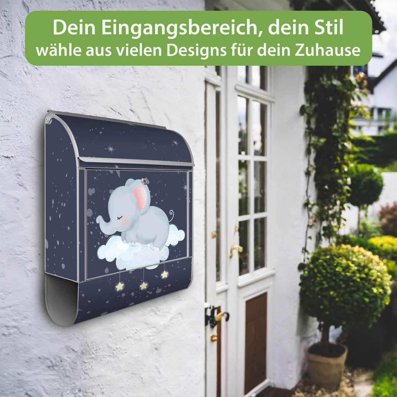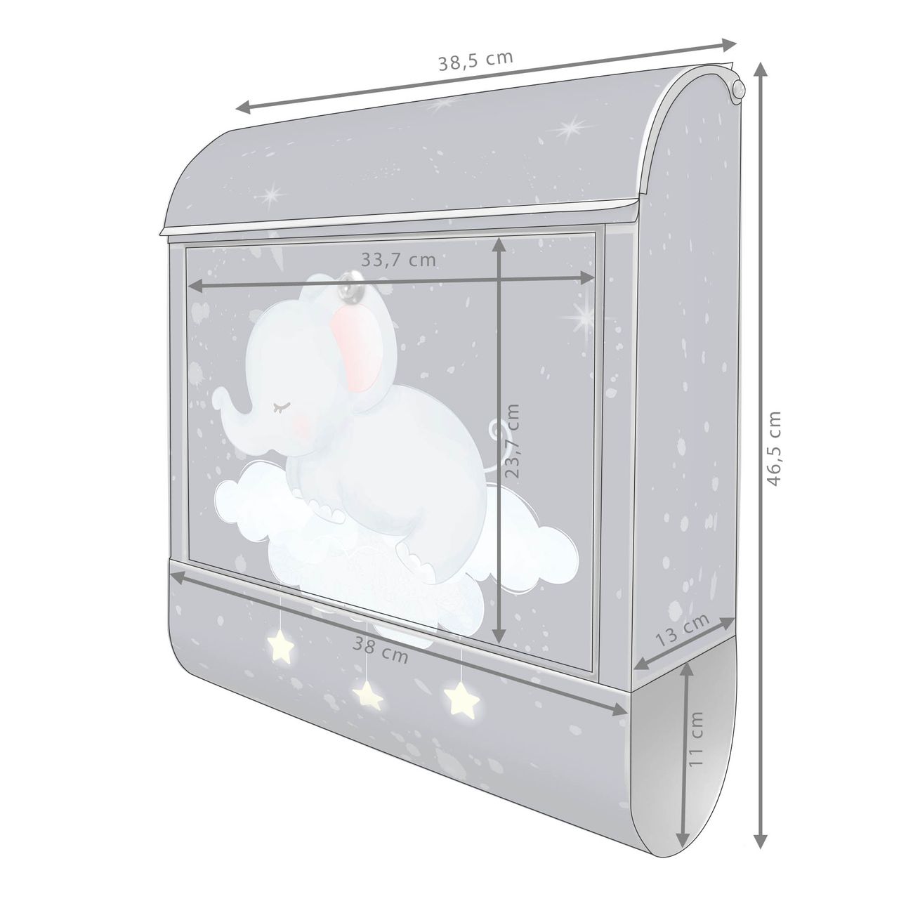 Großer Stahl Briefkasten Motiv schlafender Elefant