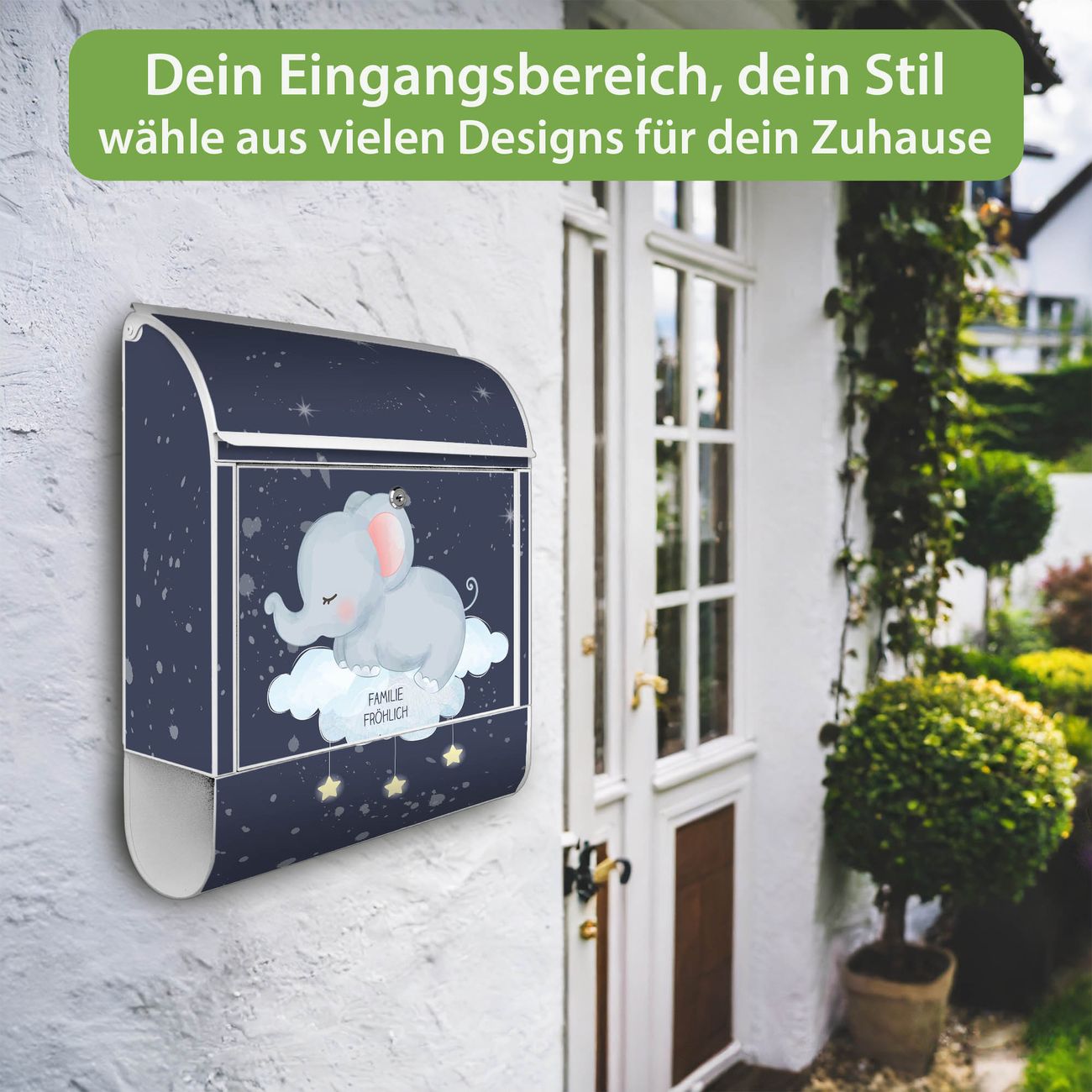 Großer Stahl Briefkasten Motiv schlafender Elefant