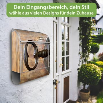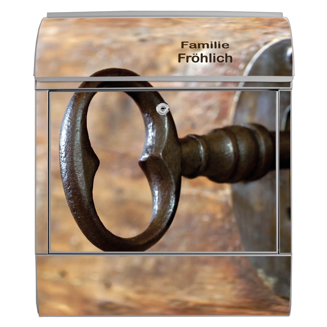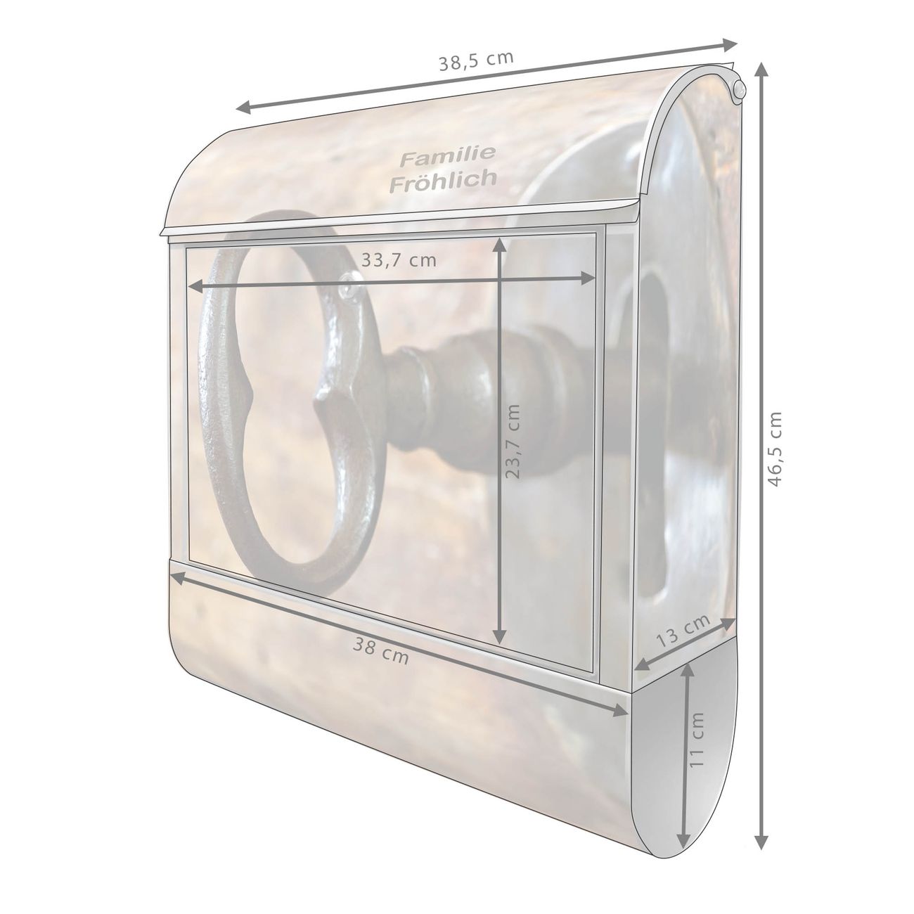 DESIGN: Der Postkasten mit Motiv Motiv Schlüssel hat ein sehr ansprechendes und ausgefallenes Design, damit entlocken Sie Ihren Nachbarn und dem Postboten ein Lächeln. Heben Sie Sich von der tristen grauen Masse ab, ohne auf Funktionalität zu verzichten. DETAILS: Der Postkasten besteht aus pulverbeschichtetem Stahl. Er ist 38x46x12,5cm groß. Das Motiv besteht aus einer wetter- und UV-resistenten Folie, die mit einem Schutzlaminat überzogen ist, sodass der Briefkasten zusätzlich vor Kratzern geschützt ist. Der Briefkasten wird mit Montagematerial, zusätzlich zwei Schlüssel sowie einer Bohrschablone geliefert. NUTZEN: Sie können diesen Briefkasten sowohl als Wandbriefkasten montieren oder einen passenden Ständer kaufen und als Standbriefkasten einbetonieren. Die Größe bietet genügend Platz für Sendungen aller Art, der Einwurf fasst auch größere A4 Sendungen. BANJADO: Ihr Briefkasten wird in Sachsen in einer kleinen Manufaktur von Hand veredelt. Die Motivfolie ist lösungsmittelfrei und schutzlaminiert für einen langen Halt. Wir legen großen Wert auf die Verbindung von Funktionalität und Design. Sie erhalten Handarbeit aus Sachsen.