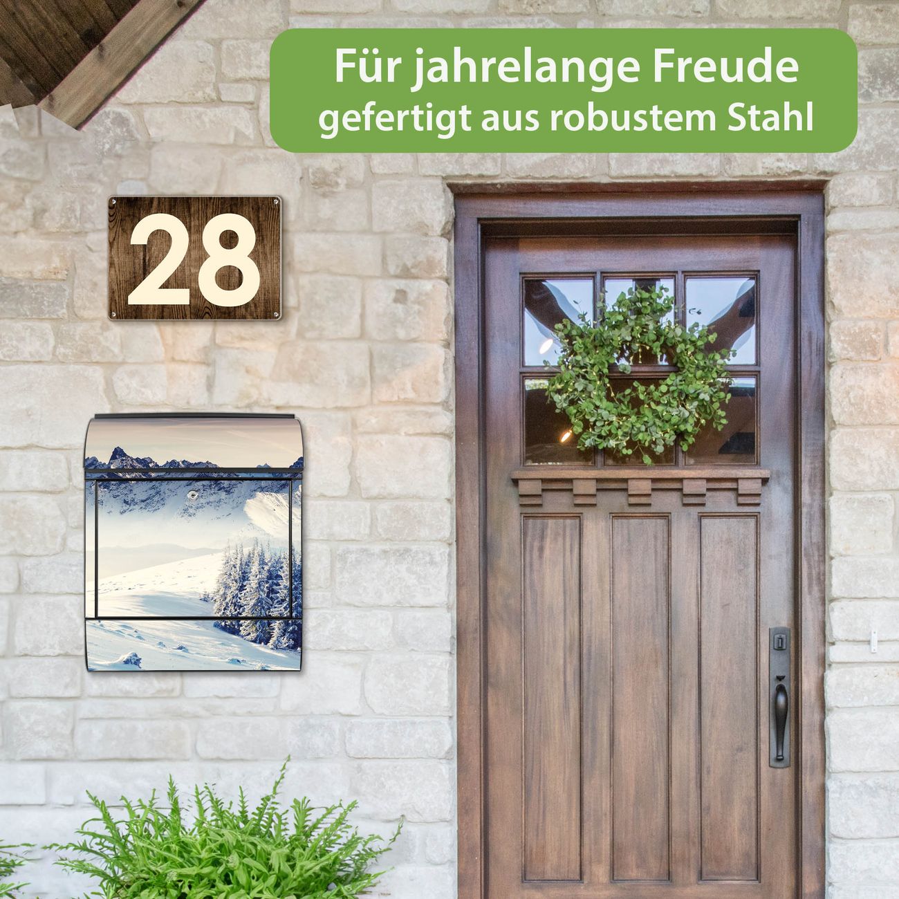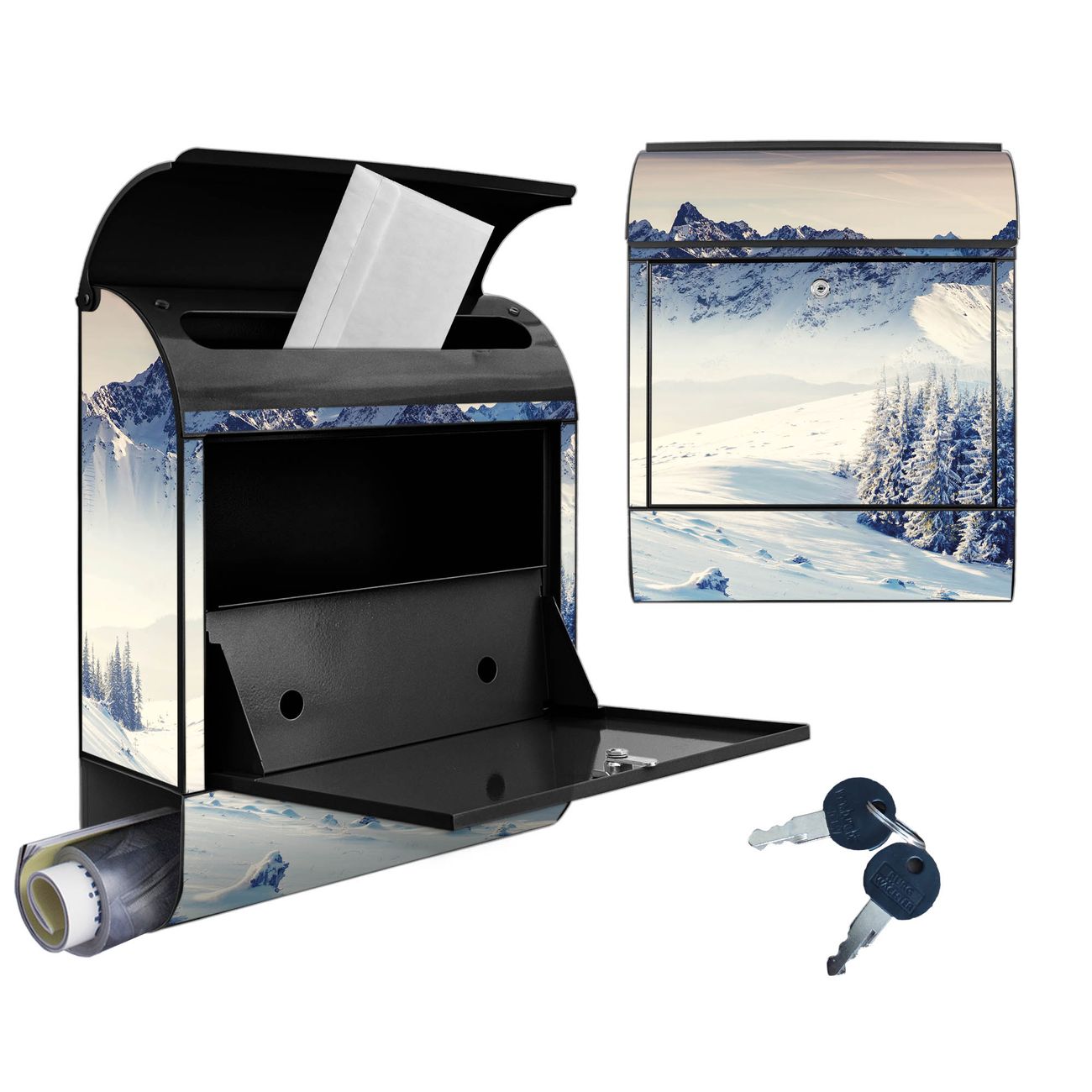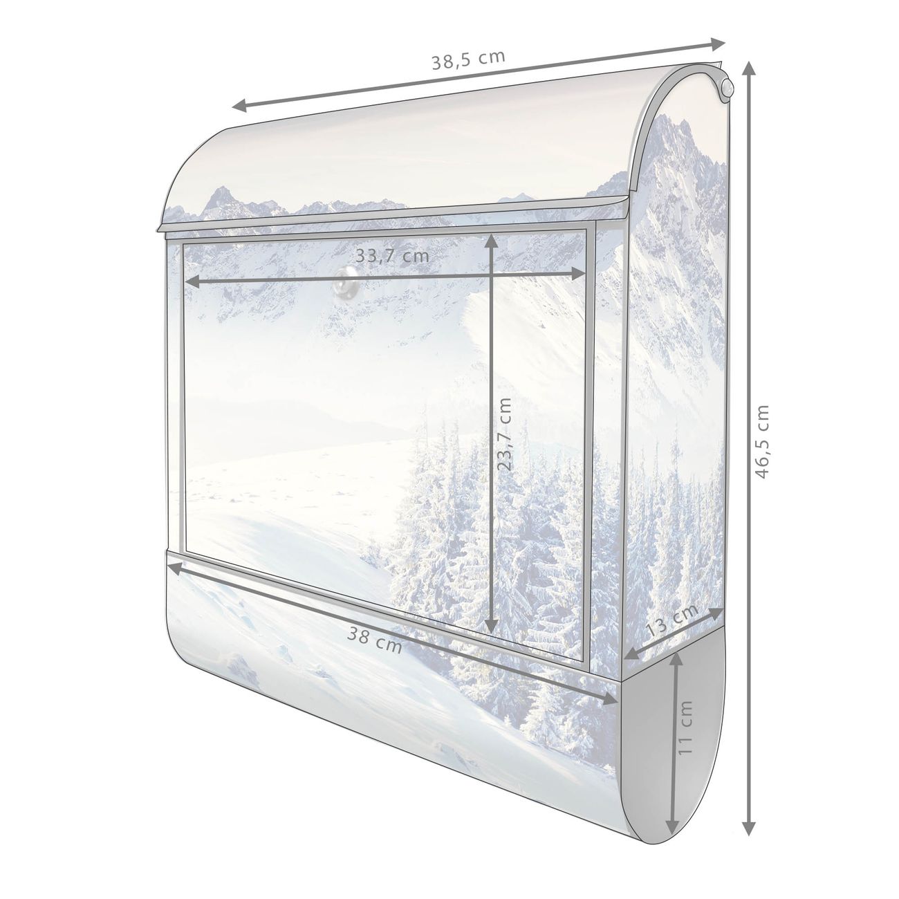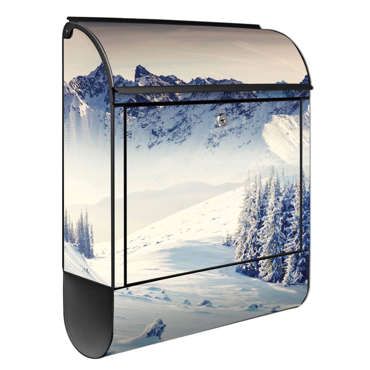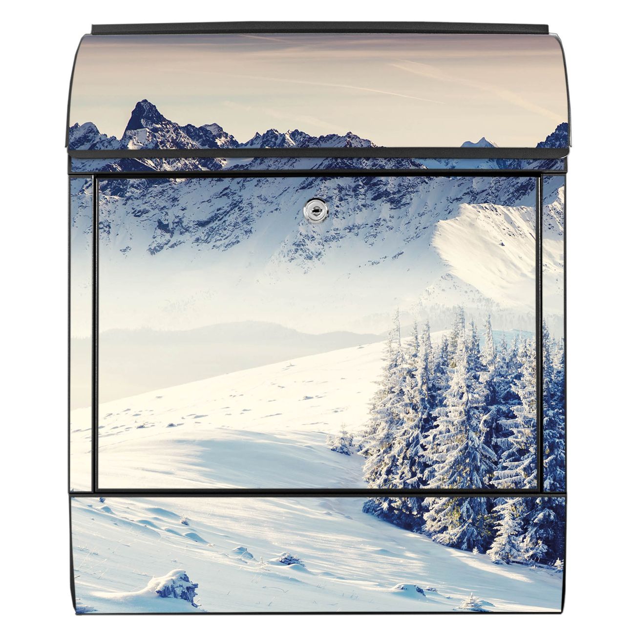 Großer Stahl Briefkasten Motiv Schneebedeckte Berge