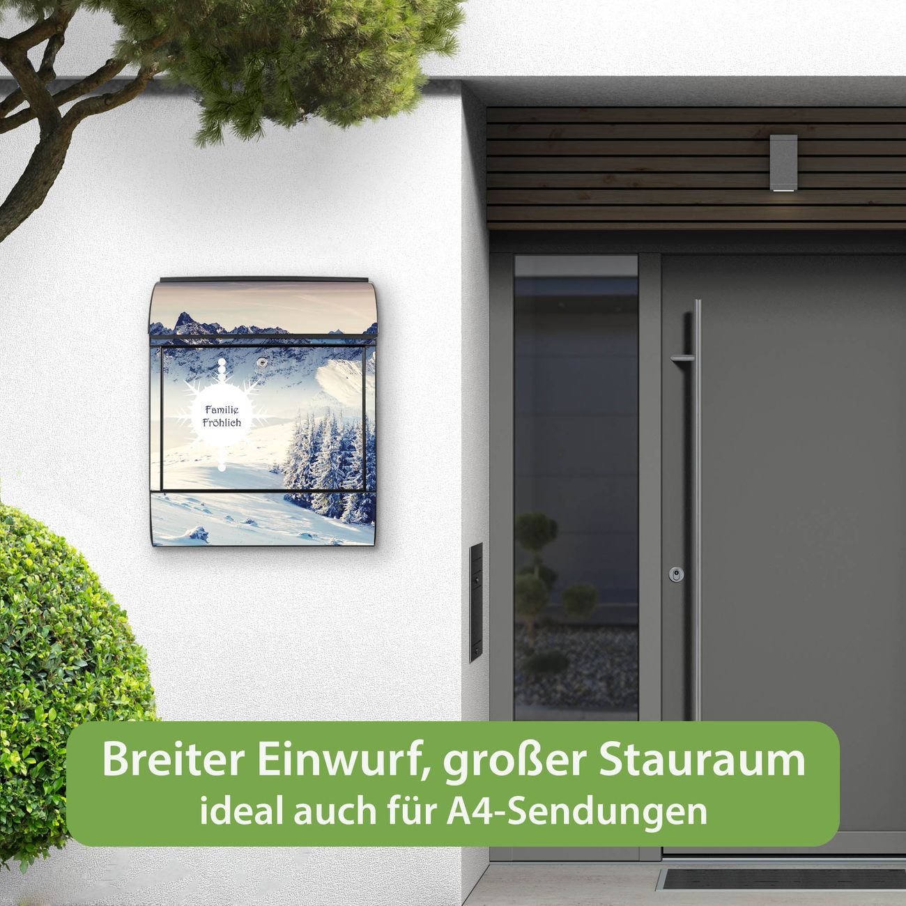 Großer Stahl Briefkasten Motiv Schneebedeckte Berge