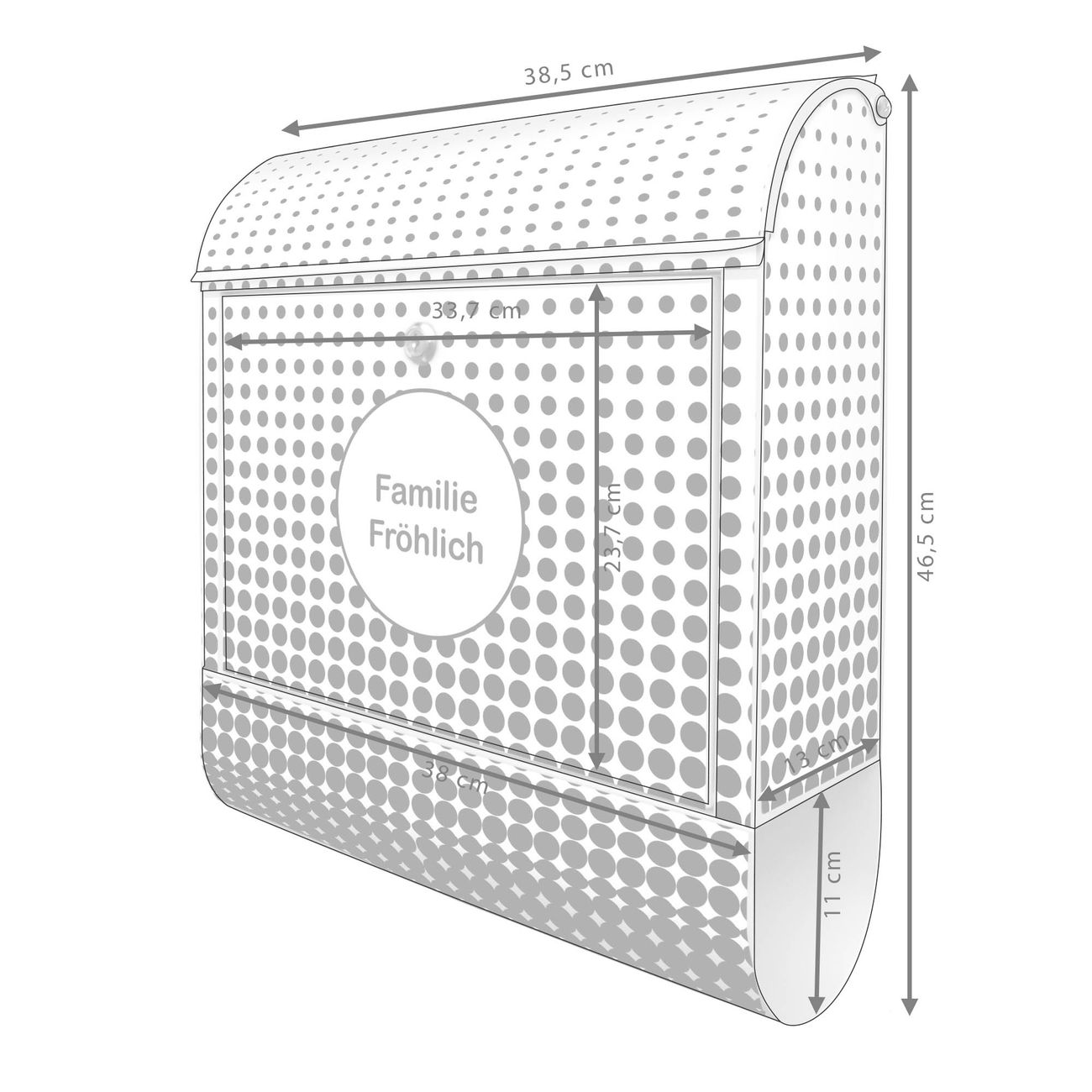 DESIGN: Der Postkasten mit Motiv Motiv Schwarz Weiß hat ein sehr ansprechendes und ausgefallenes Design, damit entlocken Sie Ihren Nachbarn und dem Postboten ein Lächeln. Heben Sie Sich von der tristen grauen Masse ab, ohne auf Funktionalität zu verzichten. DETAILS: Der Postkasten besteht aus pulverbeschichtetem Stahl. Er ist 38x46x12,5cm groß. Das Motiv besteht aus einer wetter- und UV-resistenten Folie, die mit einem Schutzlaminat überzogen ist, sodass der Briefkasten zusätzlich vor Kratzern geschützt ist. Der Briefkasten wird mit Montagematerial, zusätzlich zwei Schlüssel sowie einer Bohrschablone geliefert. NUTZEN: Sie können diesen Briefkasten sowohl als Wandbriefkasten montieren oder einen passenden Ständer kaufen und als Standbriefkasten einbetonieren. Die Größe bietet genügend Platz für Sendungen aller Art, der Einwurf fasst auch größere A4 Sendungen. BANJADO: Ihr Briefkasten wird in Sachsen in einer kleinen Manufaktur von Hand veredelt. Die Motivfolie ist lösungsmittelfrei und schutzlaminiert für einen langen Halt. Wir legen großen Wert auf die Verbindung von Funktionalität und Design. Sie erhalten Handarbeit aus Sachsen.