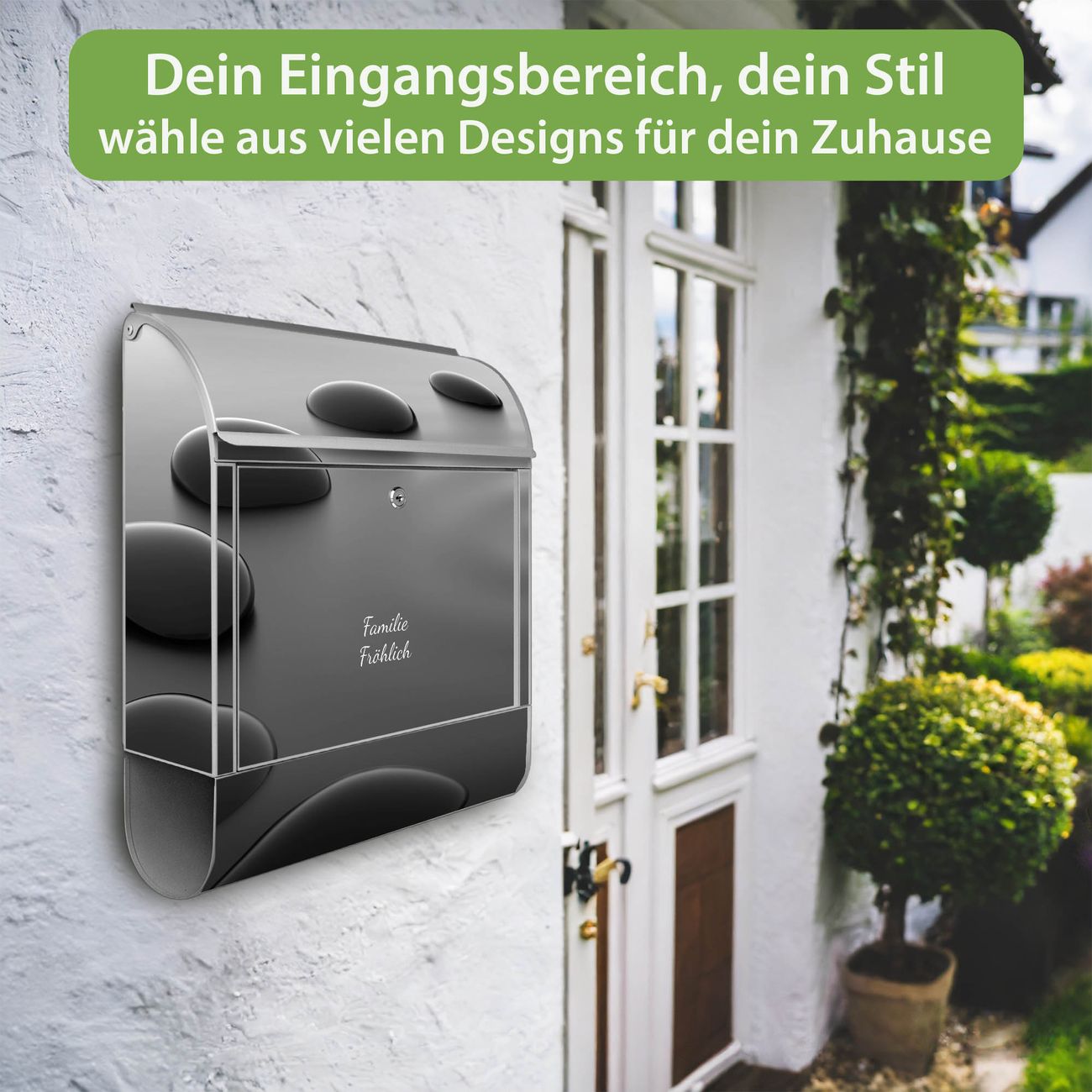 Großer Stahl Briefkasten Motiv Schwarze Steine