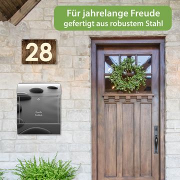 DESIGN: Der Postkasten mit Motiv Motiv Schwarze Steine hat ein sehr ansprechendes und ausgefallenes Design, damit entlocken Sie Ihren Nachbarn und dem Postboten ein Lächeln. Heben Sie Sich von der tristen grauen Masse ab, ohne auf Funktionalität zu verzichten. DETAILS: Der Postkasten besteht aus pulverbeschichtetem Stahl. Er ist 38x46x12,5cm groß. Das Motiv besteht aus einer wetter- und UV-resistenten Folie, die mit einem Schutzlaminat überzogen ist, sodass der Briefkasten zusätzlich vor Kratzern geschützt ist. Der Briefkasten wird mit Montagematerial, zusätzlich zwei Schlüssel sowie einer Bohrschablone geliefert. NUTZEN: Sie können diesen Briefkasten sowohl als Wandbriefkasten montieren oder einen passenden Ständer kaufen und als Standbriefkasten einbetonieren. Die Größe bietet genügend Platz für Sendungen aller Art, der Einwurf fasst auch größere A4 Sendungen. BANJADO: Ihr Briefkasten wird in Sachsen in einer kleinen Manufaktur von Hand veredelt. Die Motivfolie ist lösungsmittelfrei und schutzlaminiert für einen langen Halt. Wir legen großen Wert auf die Verbindung von Funktionalität und Design. Sie erhalten Handarbeit aus Sachsen.