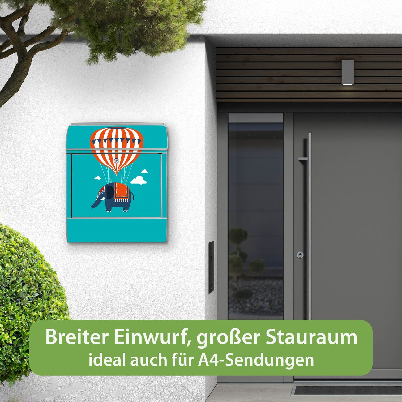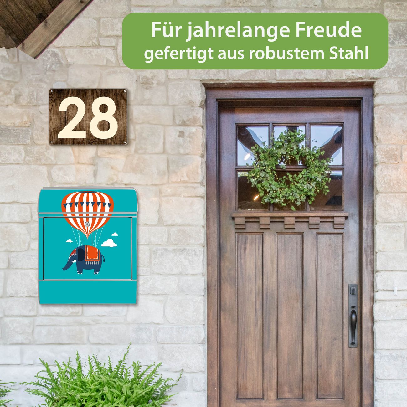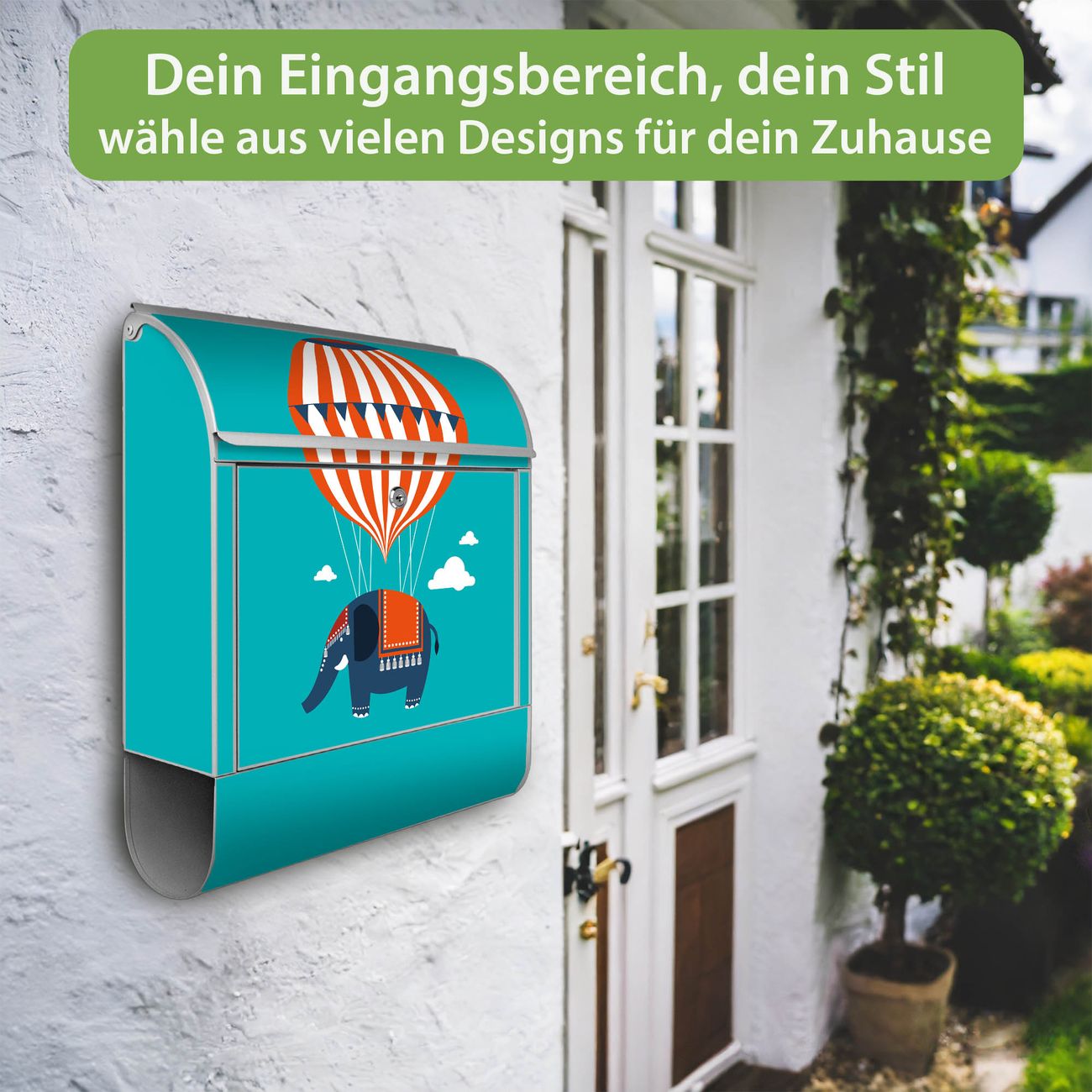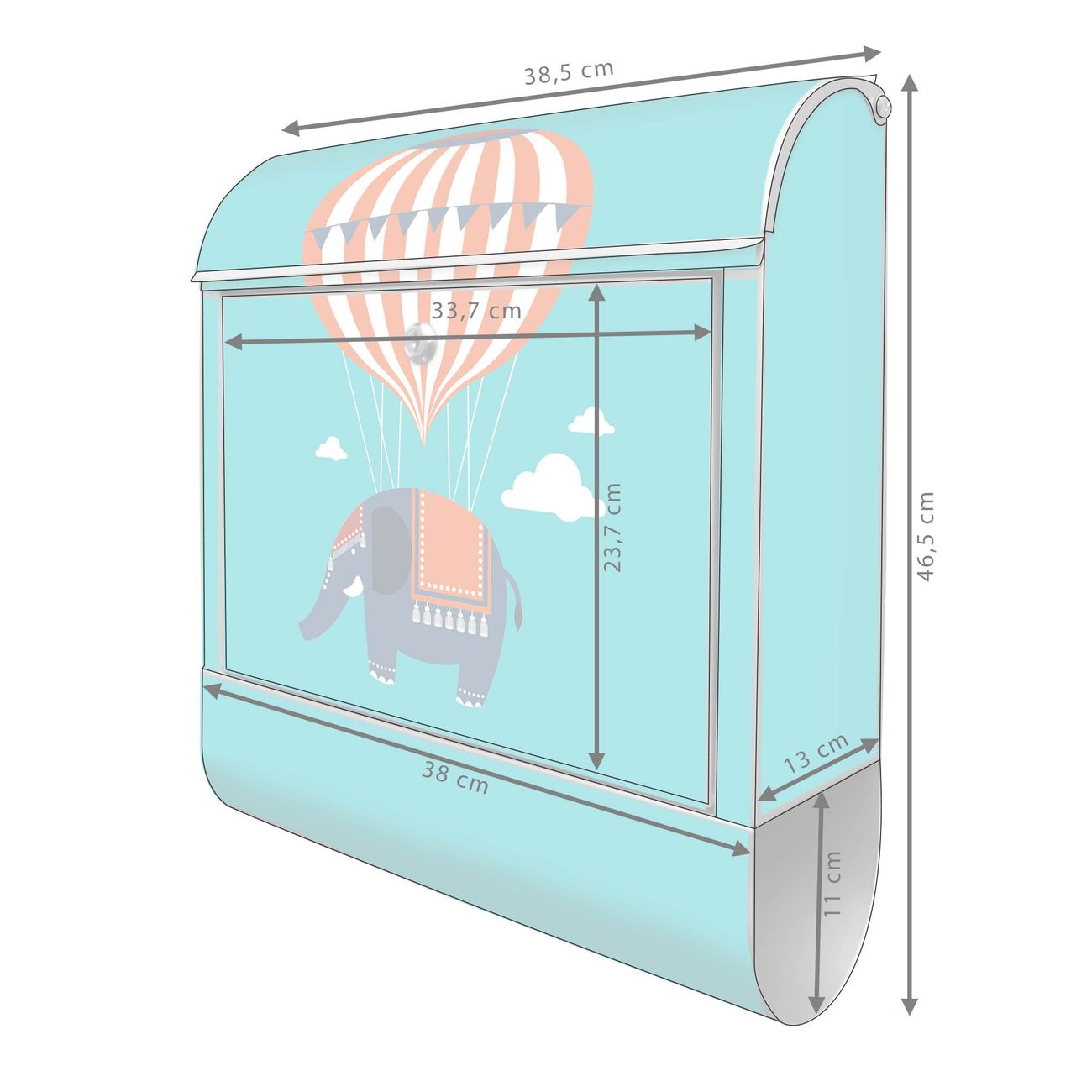DESIGN: Der Postkasten mit Motiv Motiv Schwerelos hat ein sehr ansprechendes und ausgefallenes Design, damit entlocken Sie Ihren Nachbarn und dem Postboten ein Lächeln. Heben Sie Sich von der tristen grauen Masse ab, ohne auf Funktionalität zu verzichten. DETAILS: Der Postkasten besteht aus pulverbeschichtetem Stahl. Er ist 38x46x12,5cm groß. Das Motiv besteht aus einer wetter- und UV-resistenten Folie, die mit einem Schutzlaminat überzogen ist, sodass der Briefkasten zusätzlich vor Kratzern geschützt ist. Der Briefkasten wird mit Montagematerial, zusätzlich zwei Schlüssel sowie einer Bohrschablone geliefert. NUTZEN: Sie können diesen Briefkasten sowohl als Wandbriefkasten montieren oder einen passenden Ständer kaufen und als Standbriefkasten einbetonieren. Die Größe bietet genügend Platz für Sendungen aller Art, der Einwurf fasst auch größere A4 Sendungen. BANJADO: Ihr Briefkasten wird in Sachsen in einer kleinen Manufaktur von Hand veredelt. Die Motivfolie ist lösungsmittelfrei und schutzlaminiert für einen langen Halt. Wir legen großen Wert auf die Verbindung von Funktionalität und Design. Sie erhalten Handarbeit aus Sachsen.