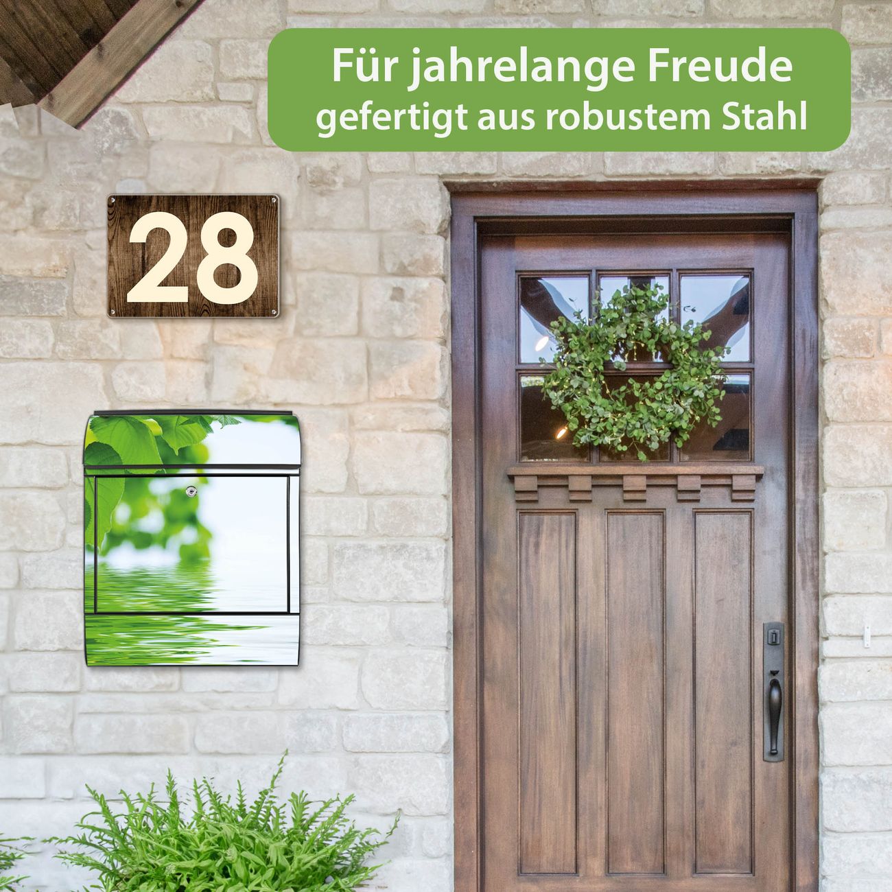 DESIGN: Der Postkasten mit Motiv Motiv Seichtes Wasser hat ein sehr ansprechendes und ausgefallenes Design, damit entlocken Sie Ihren Nachbarn und dem Postboten ein Lächeln. Heben Sie Sich von der tristen grauen Masse ab, ohne auf Funktionalität zu verzichten. DETAILS: Der Postkasten besteht aus pulverbeschichtetem Stahl. Er ist 38x46x12,5cm groß. Das Motiv besteht aus einer wetter- und UV-resistenten Folie, die mit einem Schutzlaminat überzogen ist, sodass der Briefkasten zusätzlich vor Kratzern geschützt ist. Der Briefkasten wird mit Montagematerial, zusätzlich zwei Schlüssel sowie einer Bohrschablone geliefert. NUTZEN: Sie können diesen Briefkasten sowohl als Wandbriefkasten montieren oder einen passenden Ständer kaufen und als Standbriefkasten einbetonieren. Die Größe bietet genügend Platz für Sendungen aller Art, der Einwurf fasst auch größere A4 Sendungen. BANJADO: Ihr Briefkasten wird in Sachsen in einer kleinen Manufaktur von Hand veredelt. Die Motivfolie ist lösungsmittelfrei und schutzlaminiert für einen langen Halt. Wir legen großen Wert auf die Verbindung von Funktionalität und Design. Sie erhalten Handarbeit aus Sachsen.
