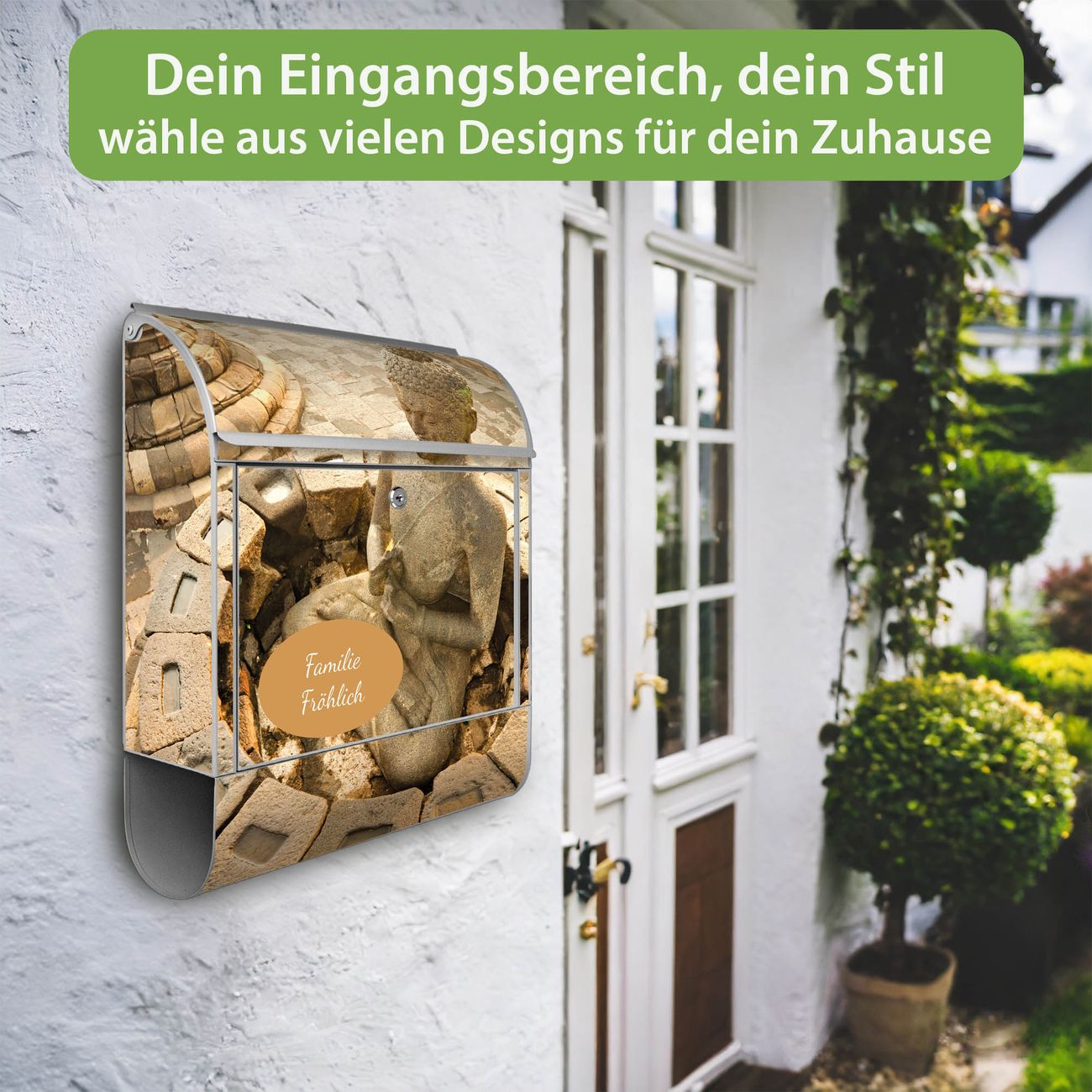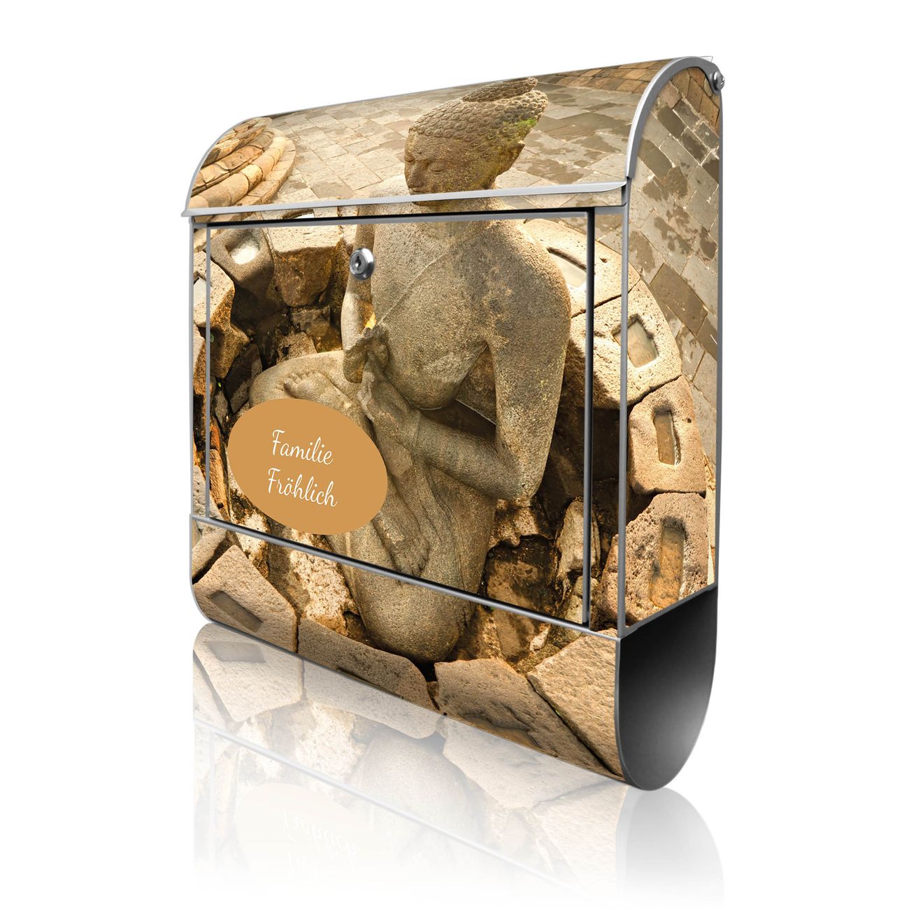 Großer Stahl Briefkasten Motiv Sitzender Buddha
