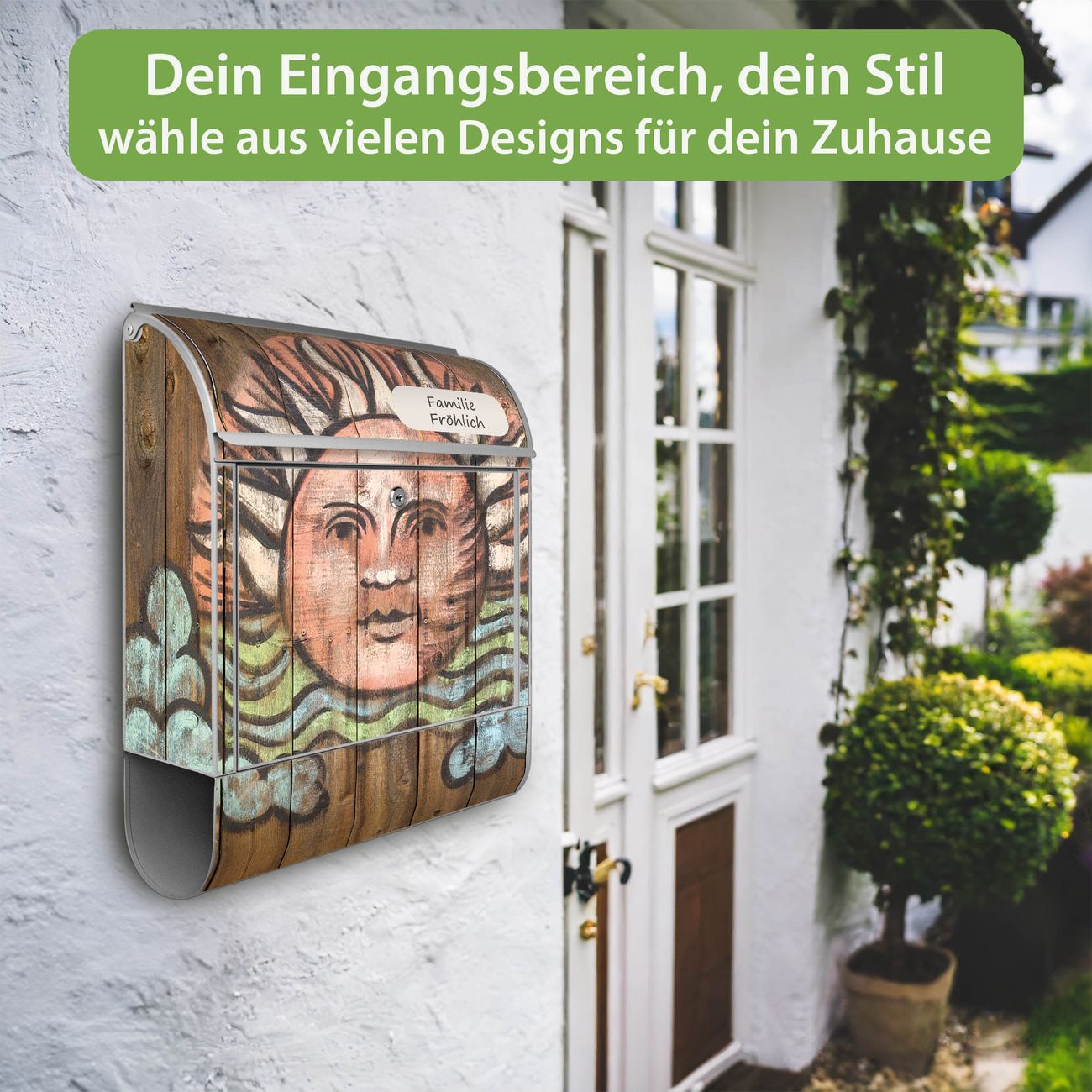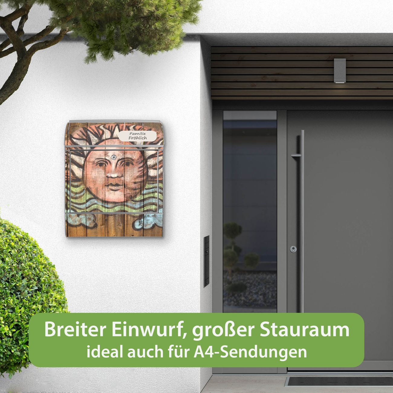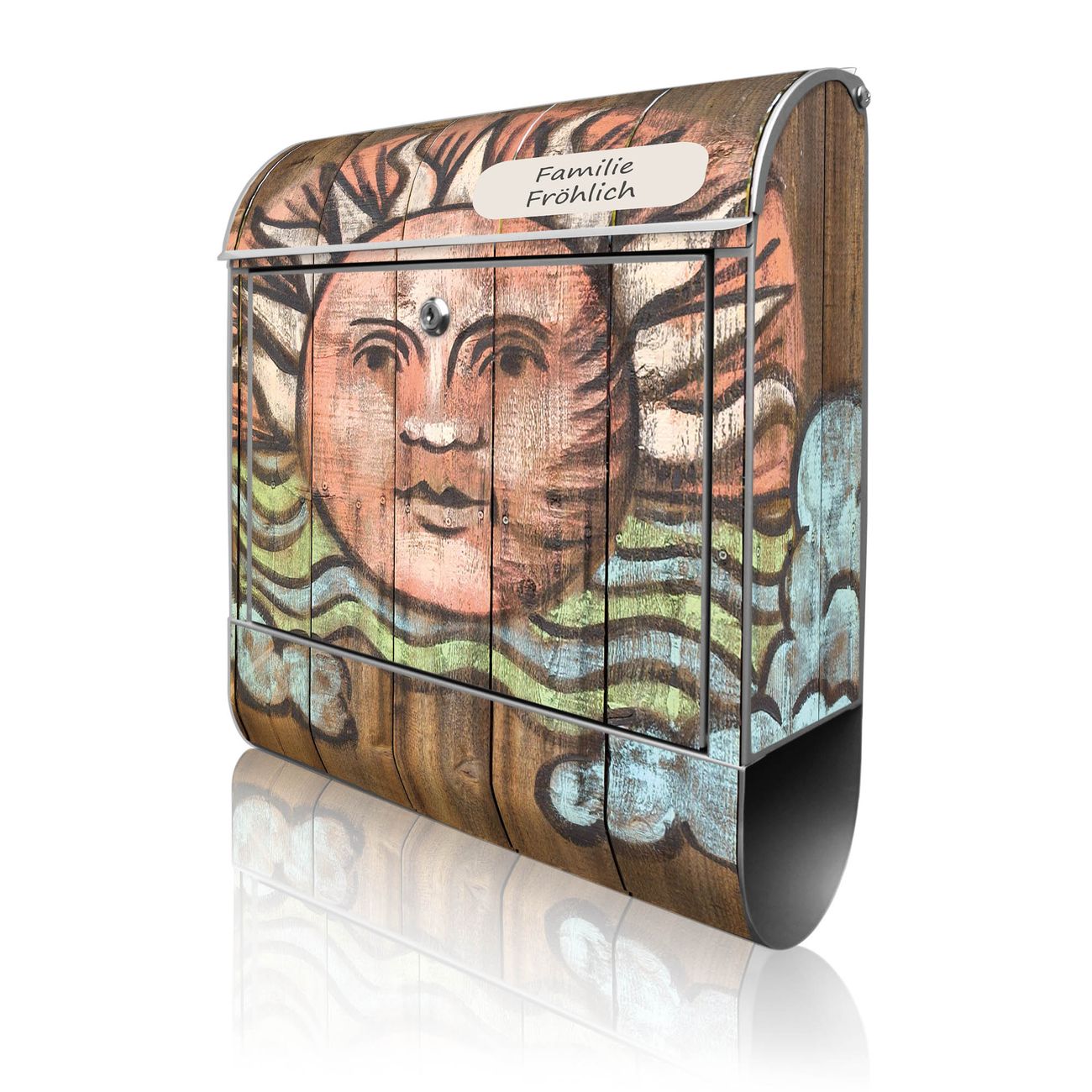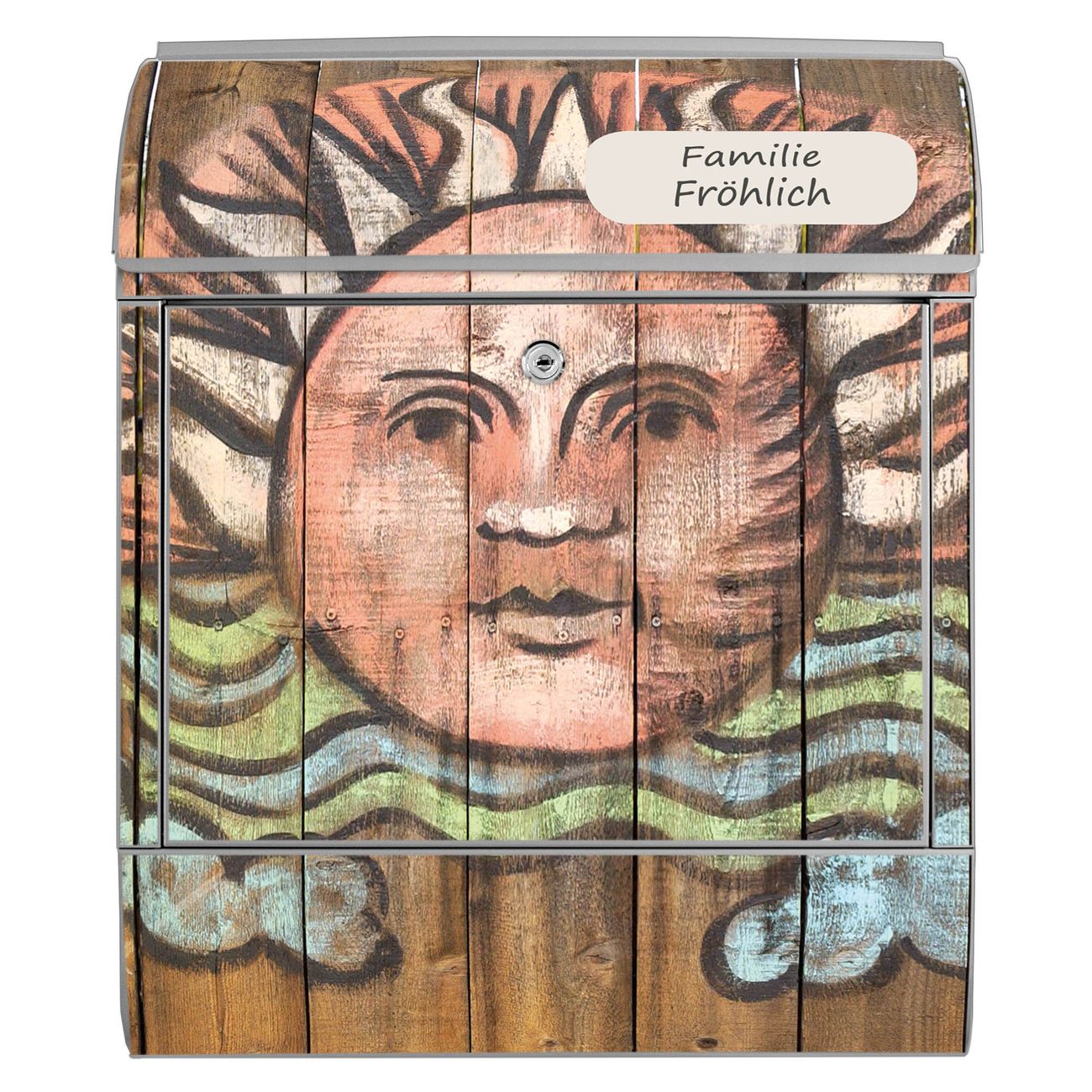 Großer Stahl Briefkasten Motiv Sonne