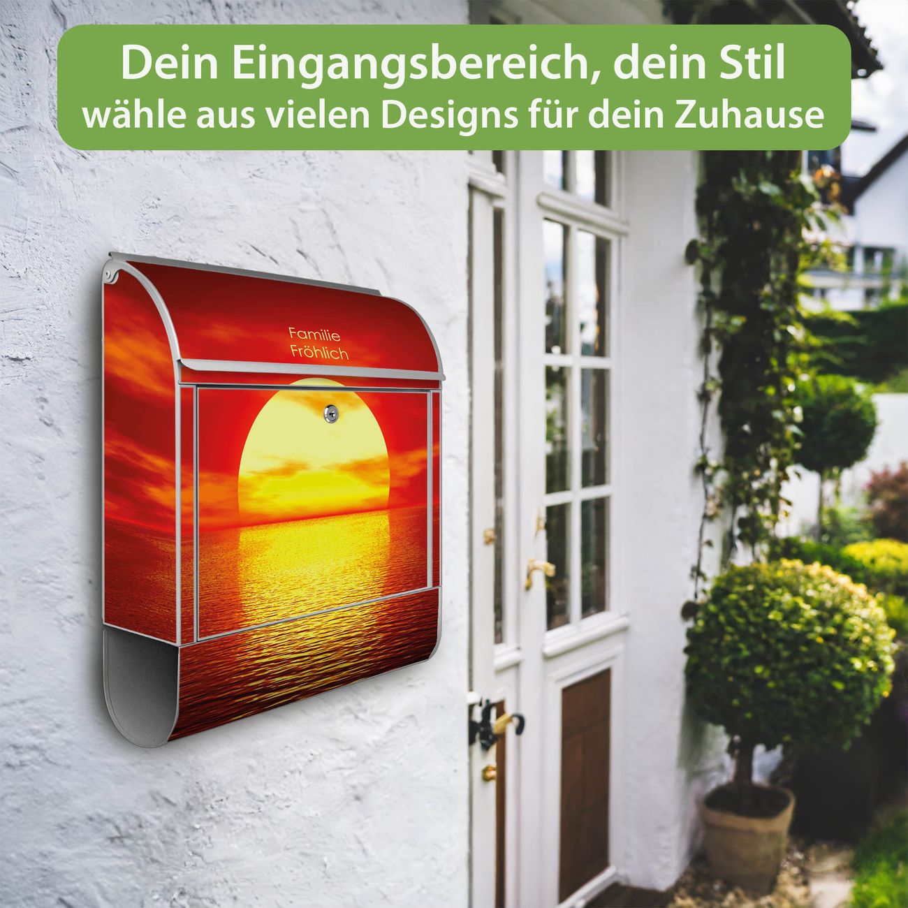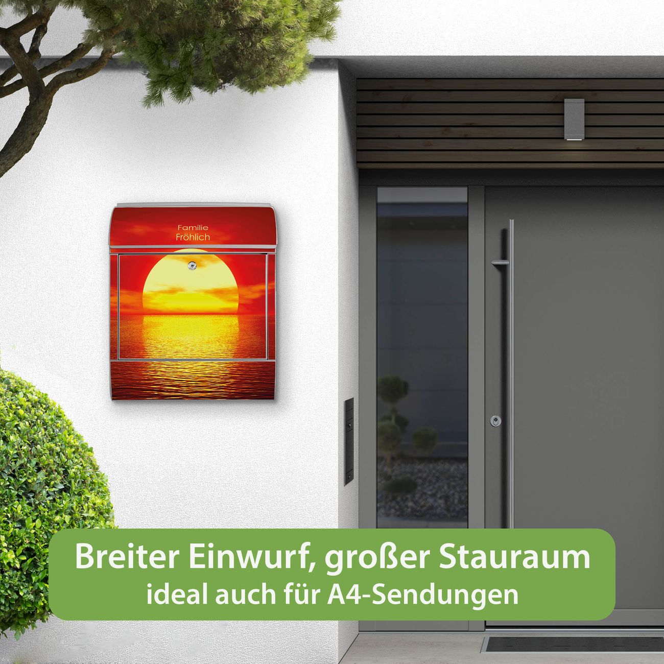 Großer Stahl Briefkasten Motiv Sonnenuntergang