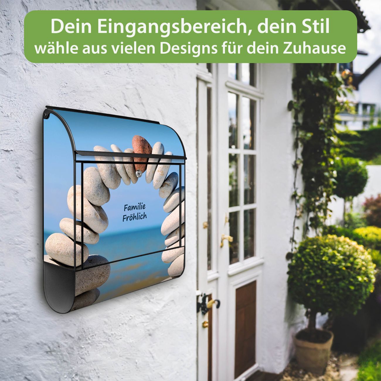 Großer Stahl Briefkasten Motiv Steine&Meer