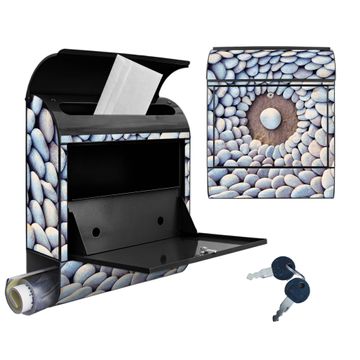 DESIGN: Der Postkasten mit Motiv Motiv Steinkreis hat ein sehr ansprechendes und ausgefallenes Design, damit entlocken Sie Ihren Nachbarn und dem Postboten ein Lächeln. Heben Sie Sich von der tristen grauen Masse ab, ohne auf Funktionalität zu verzichten. DETAILS: Der Postkasten besteht aus pulverbeschichtetem Stahl. Er ist 38x46x12,5cm groß. Das Motiv besteht aus einer wetter- und UV-resistenten Folie, die mit einem Schutzlaminat überzogen ist, sodass der Briefkasten zusätzlich vor Kratzern geschützt ist. Der Briefkasten wird mit Montagematerial, zusätzlich zwei Schlüssel sowie einer Bohrschablone geliefert. NUTZEN: Sie können diesen Briefkasten sowohl als Wandbriefkasten montieren oder einen passenden Ständer kaufen und als Standbriefkasten einbetonieren. Die Größe bietet genügend Platz für Sendungen aller Art, der Einwurf fasst auch größere A4 Sendungen. BANJADO: Ihr Briefkasten wird in Sachsen in einer kleinen Manufaktur von Hand veredelt. Die Motivfolie ist lösungsmittelfrei und schutzlaminiert für einen langen Halt. Wir legen großen Wert auf die Verbindung von Funktionalität und Design. Sie erhalten Handarbeit aus Sachsen.