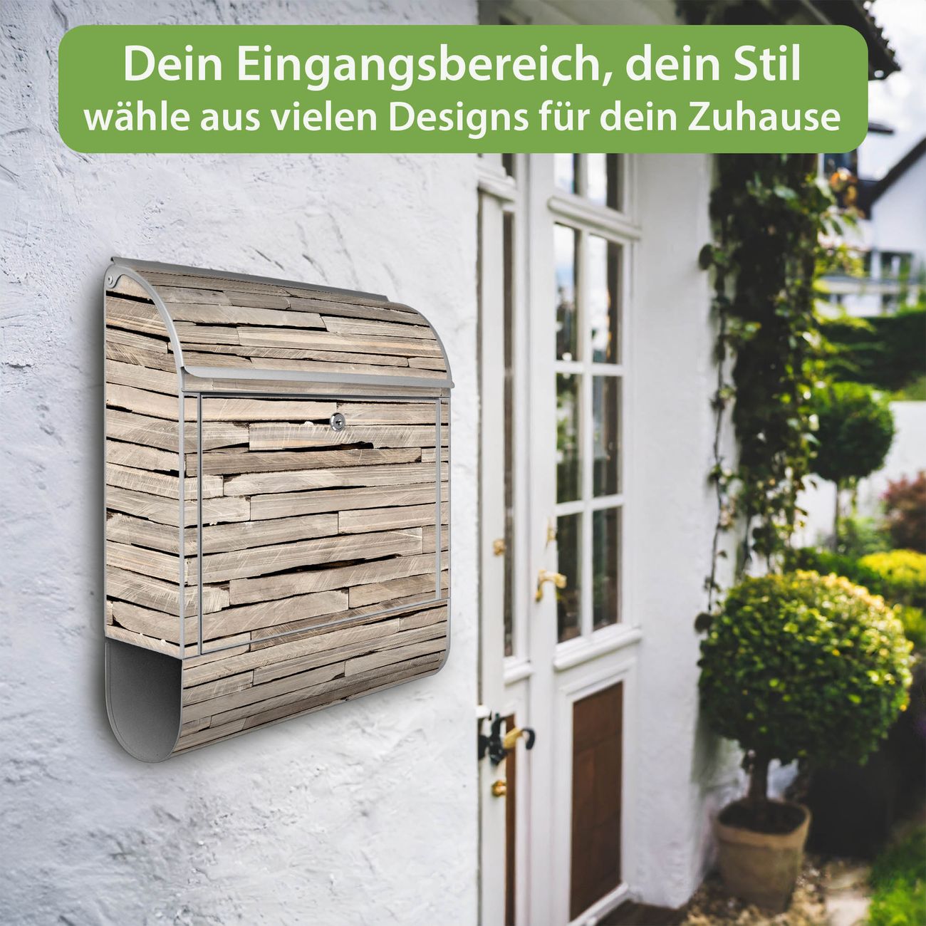 Großer Stahl Briefkasten Motiv Steinplatten