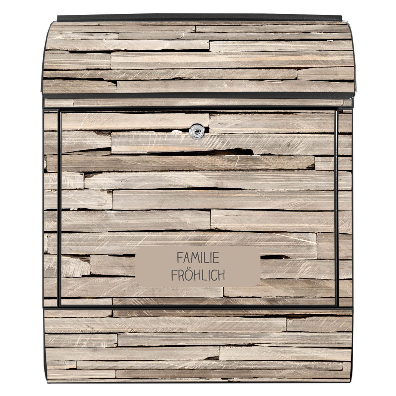 Der Vorschau-Text Familie Fröhlich wird durch Ihren persönlichen Wunschtext ersetzt. Die Schriftart und Farbe bleiben gleich wie in der Vorschau.