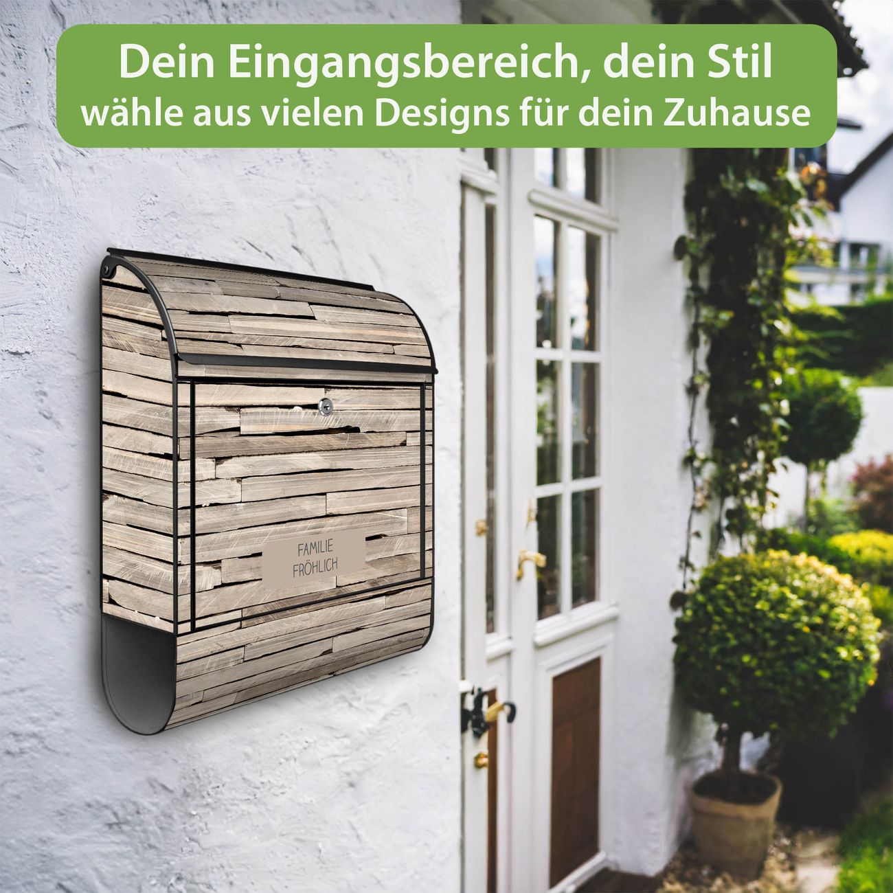 DESIGN: Der Postkasten mit Motiv Motiv Steinplatten hat ein sehr ansprechendes und ausgefallenes Design, damit entlocken Sie Ihren Nachbarn und dem Postboten ein Lächeln. Heben Sie Sich von der tristen grauen Masse ab, ohne auf Funktionalität zu verzichten. DETAILS: Der Postkasten besteht aus pulverbeschichtetem Stahl. Er ist 38x46x12,5cm groß. Das Motiv besteht aus einer wetter- und UV-resistenten Folie, die mit einem Schutzlaminat überzogen ist, sodass der Briefkasten zusätzlich vor Kratzern geschützt ist. Der Briefkasten wird mit Montagematerial, zusätzlich zwei Schlüssel sowie einer Bohrschablone geliefert. NUTZEN: Sie können diesen Briefkasten sowohl als Wandbriefkasten montieren oder einen passenden Ständer kaufen und als Standbriefkasten einbetonieren. Die Größe bietet genügend Platz für Sendungen aller Art, der Einwurf fasst auch größere A4 Sendungen. BANJADO: Ihr Briefkasten wird in Sachsen in einer kleinen Manufaktur von Hand veredelt. Die Motivfolie ist lösungsmittelfrei und schutzlaminiert für einen langen Halt. Wir legen großen Wert auf die Verbindung von Funktionalität und Design. Sie erhalten Handarbeit aus Sachsen.