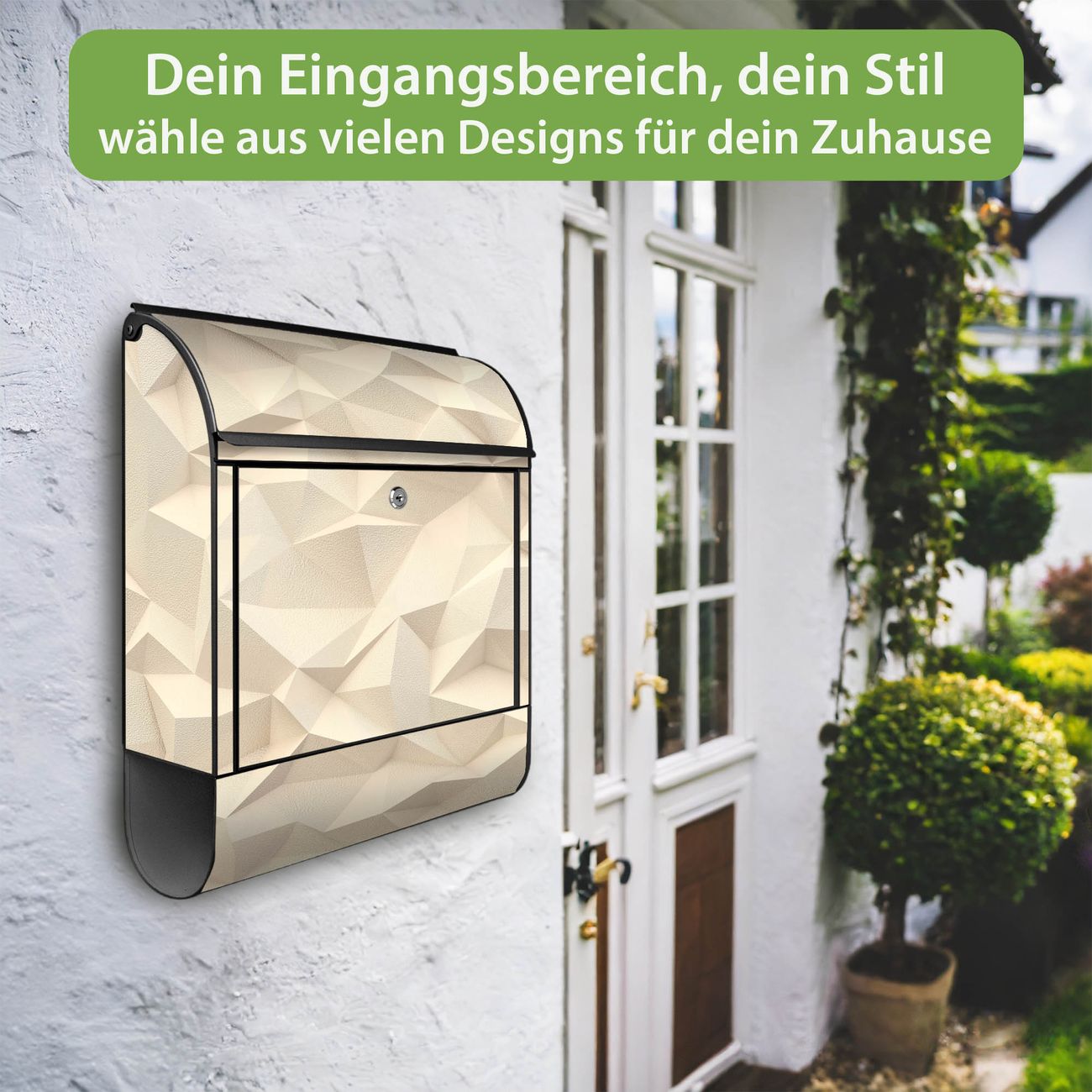 DESIGN: Der Postkasten mit Motiv Motiv Steinwand 2 hat ein sehr ansprechendes und ausgefallenes Design, damit entlocken Sie Ihren Nachbarn und dem Postboten ein Lächeln. Heben Sie Sich von der tristen grauen Masse ab, ohne auf Funktionalität zu verzichten. DETAILS: Der Postkasten besteht aus pulverbeschichtetem Stahl. Er ist 38x46x12,5cm groß. Das Motiv besteht aus einer wetter- und UV-resistenten Folie, die mit einem Schutzlaminat überzogen ist, sodass der Briefkasten zusätzlich vor Kratzern geschützt ist. Der Briefkasten wird mit Montagematerial, zusätzlich zwei Schlüssel sowie einer Bohrschablone geliefert. NUTZEN: Sie können diesen Briefkasten sowohl als Wandbriefkasten montieren oder einen passenden Ständer kaufen und als Standbriefkasten einbetonieren. Die Größe bietet genügend Platz für Sendungen aller Art, der Einwurf fasst auch größere A4 Sendungen. BANJADO: Ihr Briefkasten wird in Sachsen in einer kleinen Manufaktur von Hand veredelt. Die Motivfolie ist lösungsmittelfrei und schutzlaminiert für einen langen Halt. Wir legen großen Wert auf die Verbindung von Funktionalität und Design. Sie erhalten Handarbeit aus Sachsen.