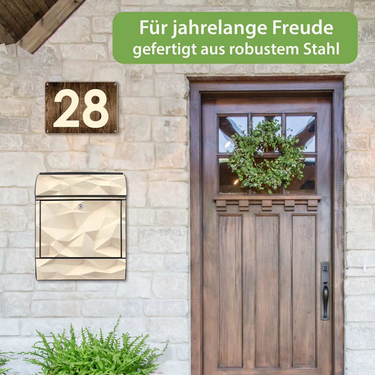 Großer Stahl Briefkasten Motiv Steinwand 2